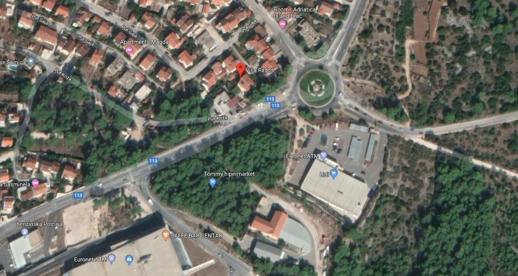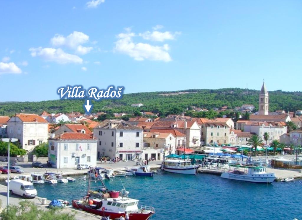 VILLA RADOŠ, 4 stele, este situată în partea de est a orașului Supetar, vizavi de centura verde. Este la doar câteva minute de mers pe jos de centru și plajă. Dispune in total de 4 apartamente: apartamente cu 2 etaje 4 camere pentru max. 6-8 persoane, 1 camera dubla pentru max. 2-4 persoane si 1 garsoniera pentru max. 2 persoane. Toate apartamentele noastre au camere mari, complet și modern echipate și permit astfel o vacanță relaxată. Fiecare apartament duplex are 3 dormitoare (2 triple si 1 dublu), apartamentul de la subsol are 1 camera tripla si living cu canapea, iar garsoniera are 1 camera dubla cu canapea. Fiecare apartament duplex are 2 băi, o bucătărie modernă (pâine de pâine, filtru de cafea, cuptor cu microunde, mașină de spălat vase...), un living (SAT-smart-TV, hi-fi, DVD, etc.), și o terasă mare și balcon., iar la parter o gradina mare cu diverse flori si citrice. Apartamentele mai mici au fiecare 1 baie și echipamente noi. Parcarea pentru 6 mașini este în fața intrării principale, iar chiar peste drum se află cele mai mari supermarketuri LIDL, TOMMY și KONZUM.