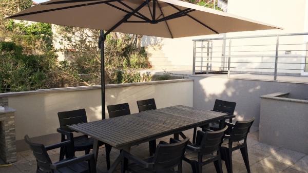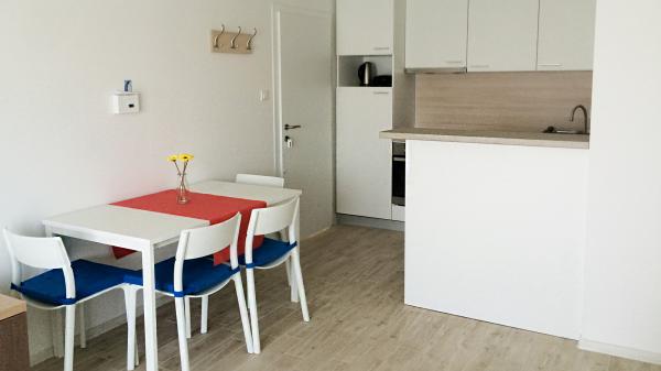 Aparthouse Penelope este o casă cu 10 apartamente. Casa se află într-un loc liniștit, numit Supetarska Draga, la numai 5 km de orașul vechi Rab (5-10 minute cu masina). Un loc ideal pentru familii care doresc să petreacă o vacanță relaxantă lângă mare. În fața apartamentului se află o terasă însorită mare (180m2), cu vedere la mare și insule. În fața apartamentului (10m) este prima plajă! Fiecare apartament are o cameră, bucătărie și toaletă. Acesta este dotat cu TV și aer condiționat. Gratar în aer liber este disponibil pentru toți oaspeții noștri, precum și o mașină de spălat (la dispoziție). Lângă casă (100m) există o parcare publică, iar restaurantele și cafenelele sunt situate la 30 de metri de apartamente. În casa noastră vă veți bucura de o terasă mare echipată și de vedere la mare, iar atunci când doriți să vă reîmprospătați, câțiva pași și vă aflați deja în mare!