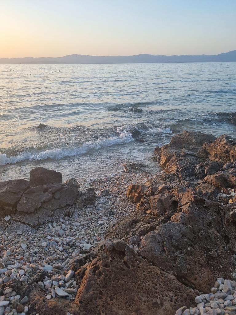 Apartament frumos cu vedere la mare. Distanta fata de mare 20m. In centru.Frumoasa plaja cu pietris potrivita copiilor cu umbra naturala. In apropiere (20m) loc de joaca, cafenele, restaurante, magazine.