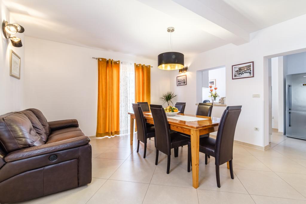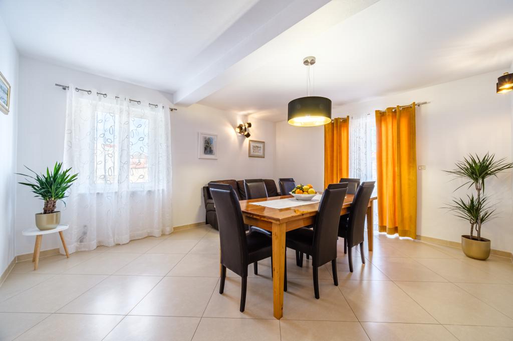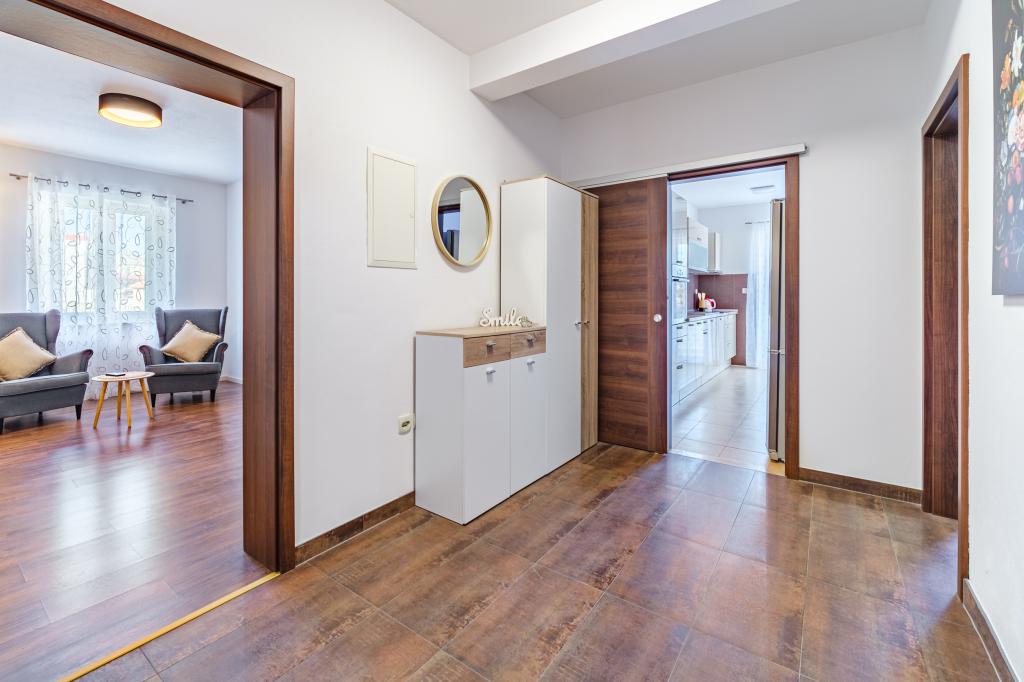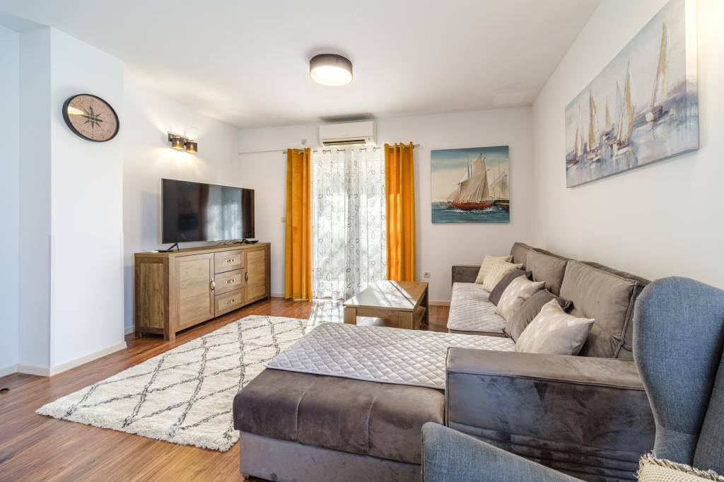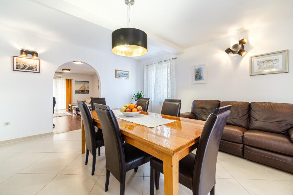 Apartament complet utilat si modern intr-o casa de lux intr-o zona linistita din Sutivan, situat chiar in centrul orasului, al doilea rand la mare. Unitatea se află la 2 minute de mers pe jos de prima plajă și este situată chiar în centrul orașului. Facilitatea ofera servicii de cazare intr-un singur apartament. Apartamentul ofera cazare pentru 6 persoane, cu inca doua pe pat suplimentar daca este necesar. Apartamentul dispune de loc de parcare in garaj. Facilitatea oferă servicii de grătar cu o zonă de luat masa special echipată, precum și un bar și chiuvetă. Apartamentul are doua terase, dintre care una are o suprafata de 20 m2 cu vedere la mare, iar cealalta in partea de sud de 8,5 m2. Proprietatea oferă o spălătorie. Apartamentul are 3 dormitoare, 2 bai si o toaleta suplimentara. Livingul și sufrageria sunt un spațiu de 50 m2.