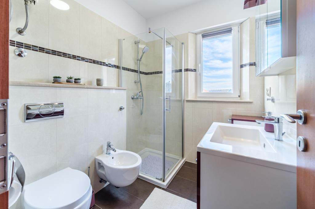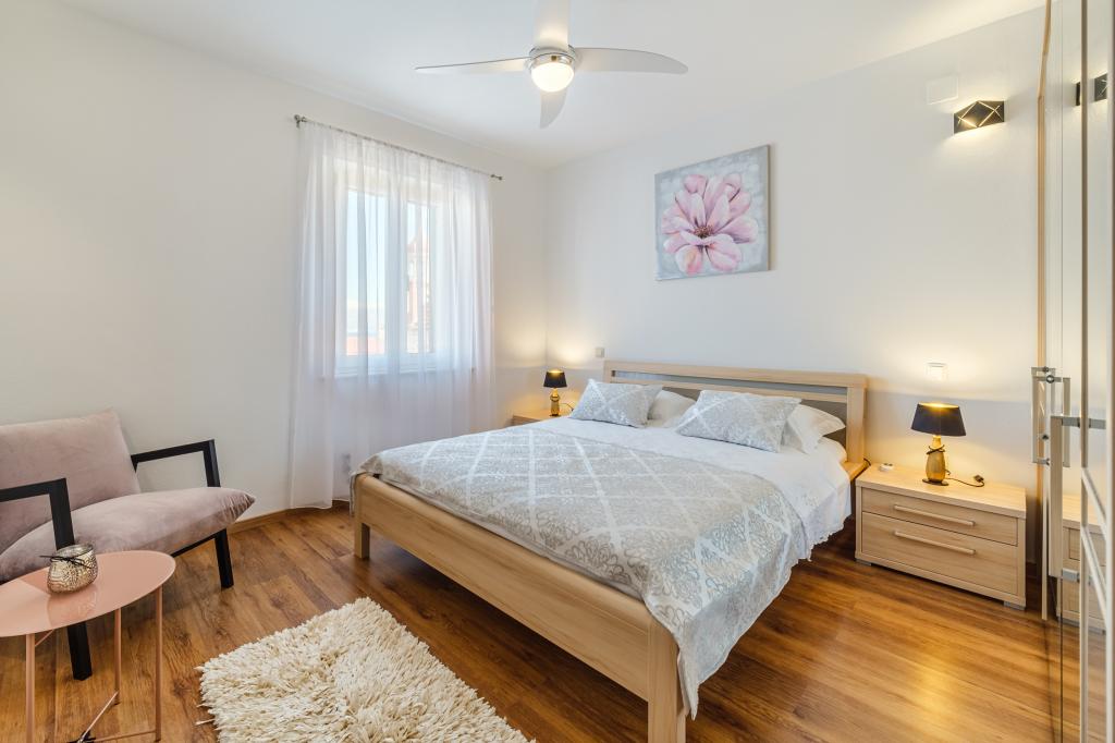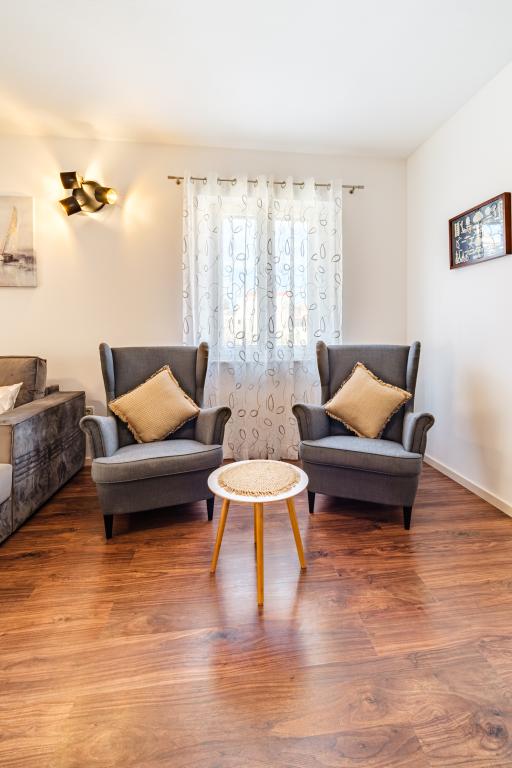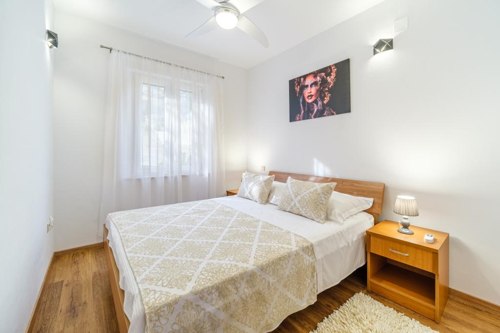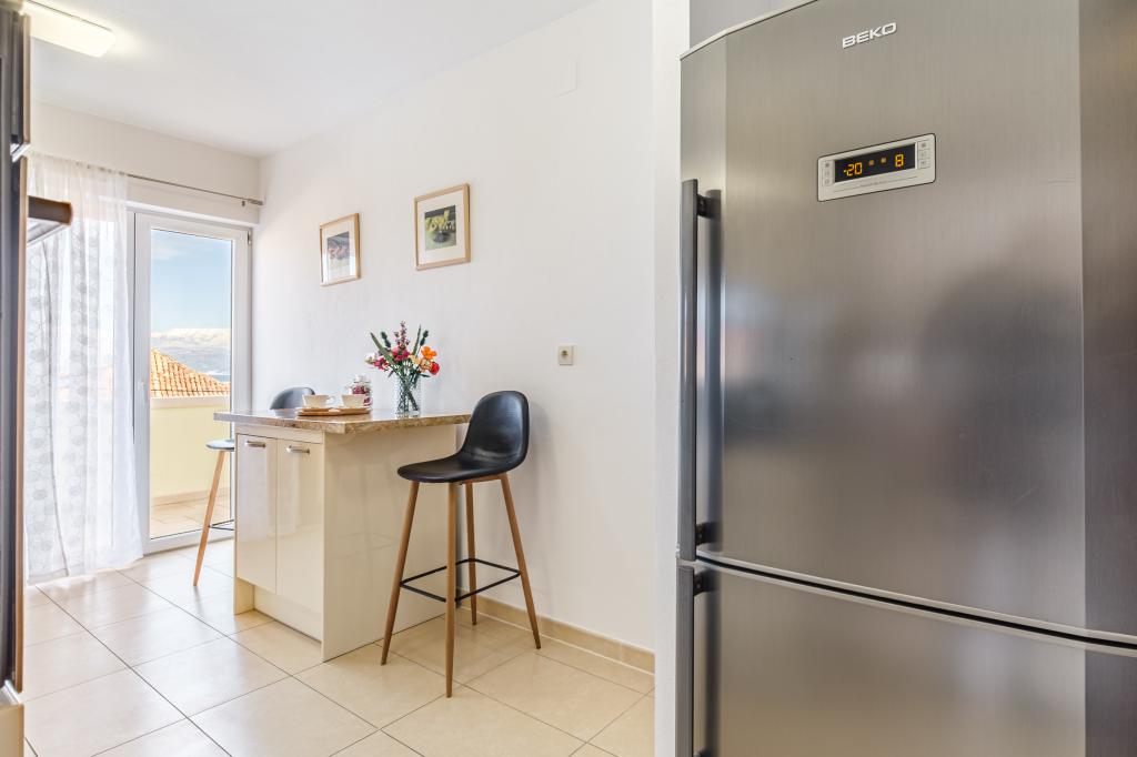 Apartament complet utilat si modern intr-o casa de lux intr-o zona linistita din Sutivan, situat chiar in centrul orasului, al doilea rand la mare. Unitatea se află la 2 minute de mers pe jos de prima plajă și este situată chiar în centrul orașului. Facilitatea ofera servicii de cazare intr-un singur apartament. Apartamentul ofera cazare pentru 6 persoane, cu inca doua pe pat suplimentar daca este necesar. Apartamentul dispune de loc de parcare in garaj. Facilitatea oferă servicii de grătar cu o zonă de luat masa special echipată, precum și un bar și chiuvetă. Apartamentul are doua terase, dintre care una are o suprafata de 20 m2 cu vedere la mare, iar cealalta in partea de sud de 8,5 m2. Proprietatea oferă o spălătorie. Apartamentul are 3 dormitoare, 2 bai si o toaleta suplimentara. Livingul și sufrageria sunt un spațiu de 50 m2.