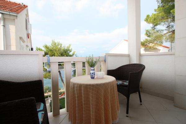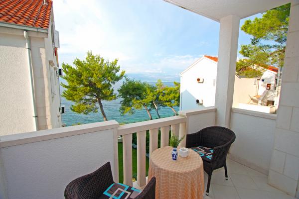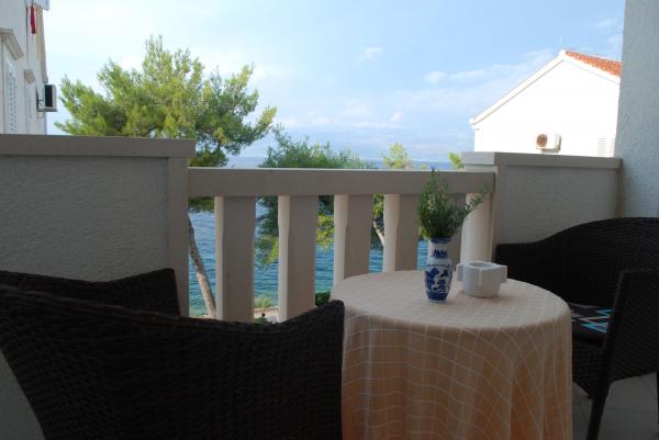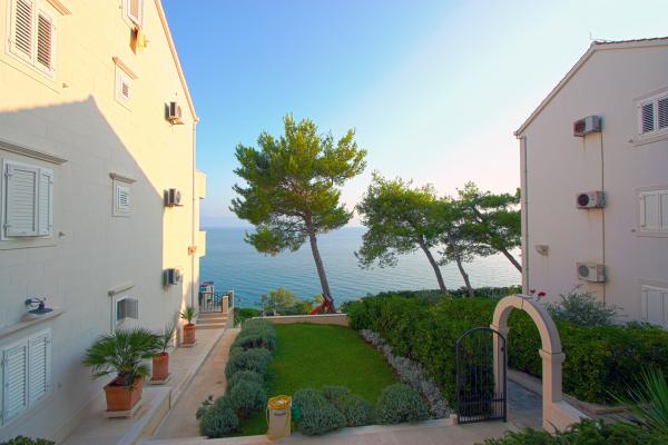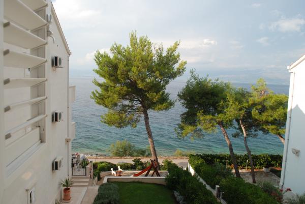 Apartamentul Vila Marina, recent renovat, este situat lângă mare. Are două dormitoare (duble și triple), un living, o bucătărie complet utilată (mașină de spălat vase, plită ceramică, cuptor și ustensile) și băi (mașină de spălat, uscător de păr) și seif. Terasa oferă o vedere frumoasă la mare și Split. Apartamentul este complet echipat (aer condiționat, TV) și are parcare privată. În fața casei se află o grădină cu facilități pentru copii.
