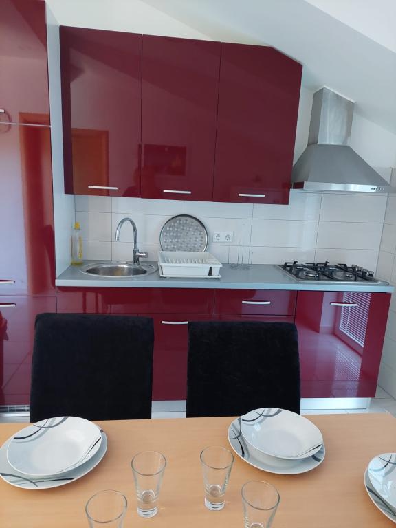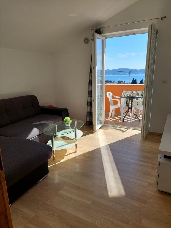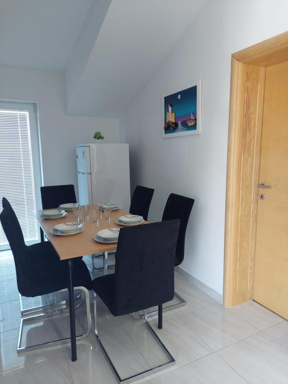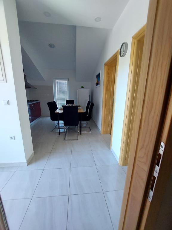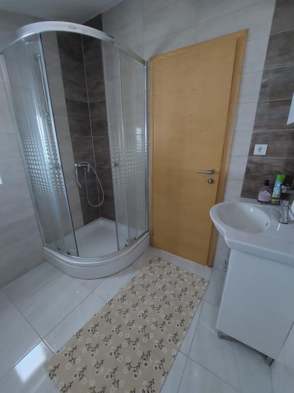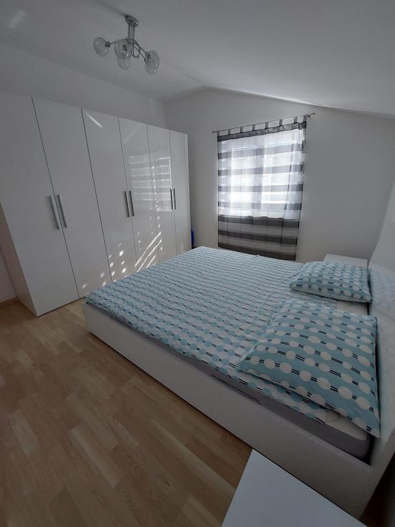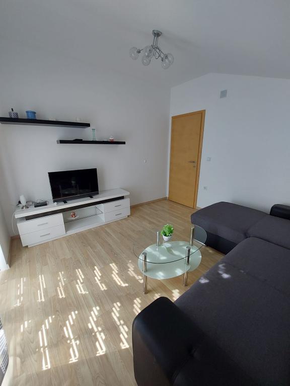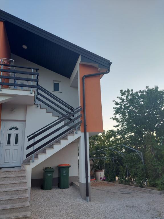 Apartamentul este nou construit, suprafata 45 m2, plus balcon si terasa 10 m2, situat la etajul doi, are intrare separata, este compus din bucatarie cu sufragerie, baie, dormitor si living. Apartamentul are un balcon cu vedere la mare și o terasă mare de la bucătărie, de asemenea, cu vedere la mare. Este nevoie de aproximativ 10 minute de mers pe jos până la plajă și puteți obține convenabil un bilet de parcare săptămânal pentru parcarea în centru și pe plajă. Parcarea privată este oferită în curte, precum și utilizarea unui grătar și a unui leagăn pentru copii. Lidl, Kaufland, Plodine, Konzum, restaurante și o piață sunt la 1 km.