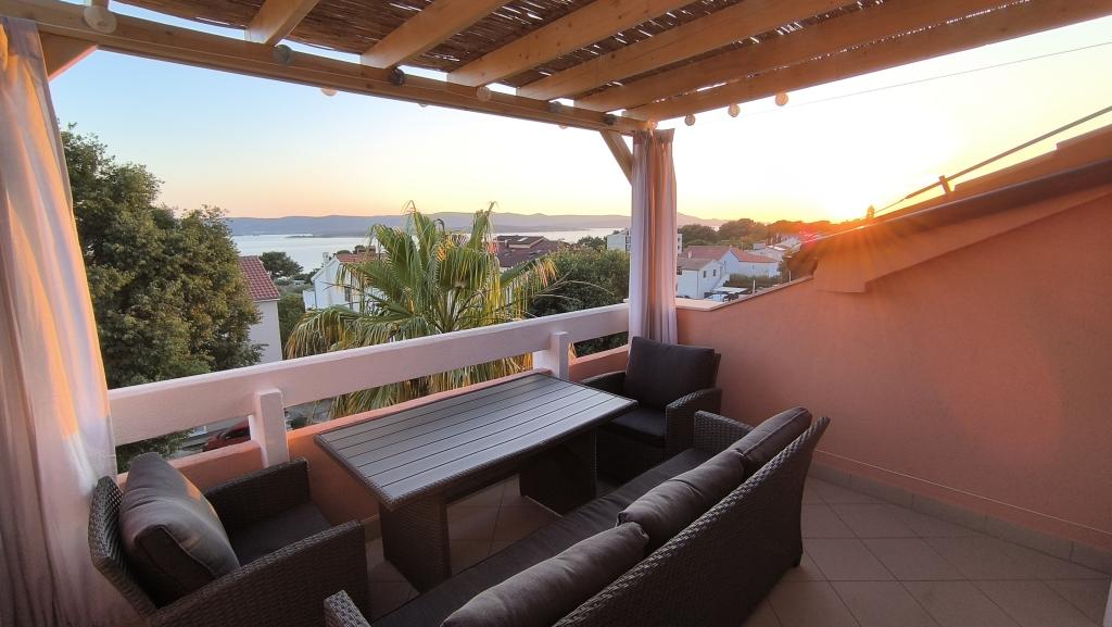 Apartament Maja cu o vedere frumoasă la mare și insule este situat într-o locație liniștită în apropiere de centrul orașului și la numai 200 de metri de plaja principală. Se afla intr-un bloc de locuinte la ultimul etaj, fara lift. Apartamentul este format din două dormitoare, un living spațios, o bucătărie, o baie și o terasă cu vedere la insulele din apropiere, la mare, la portul de agrement și la orașul Biograd. Parcarea este posibilă în fața clădirii sau într-o parcare publică aflată la doar 50 de metri.