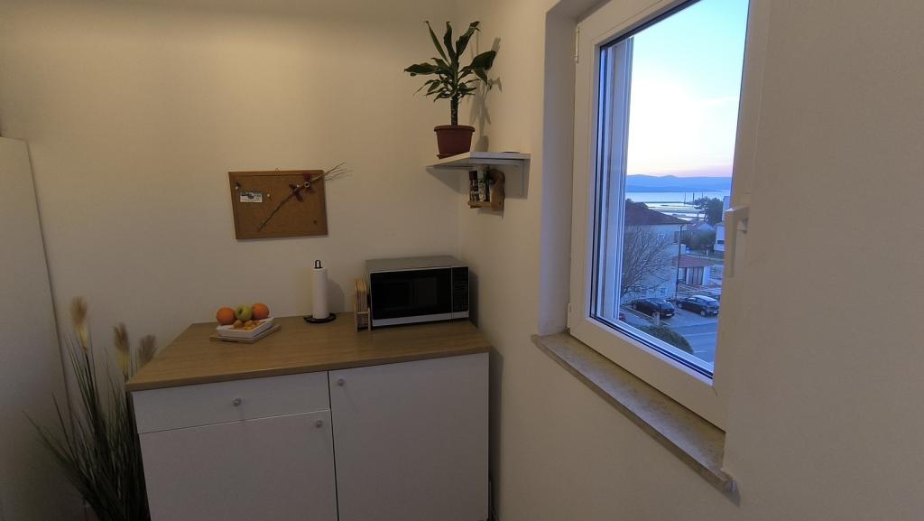 Apartament frumos decorat și utilat, în bucătărie friteuză cu aer cald, prăjitor de pâine, aparat de cafea, cuptor cu microunde. Totul curat și ordonat, am fost întâmpinați cu prosoape și produse de igienă minime. Terasă frumoasă cu o vedere frumoasă la mare, centrul orașului și Biograd. Locație excelentă, aproape de plajă, aproape de centru, magazine mai mari la 5 minute cu mașina. Recomand cu căldură.