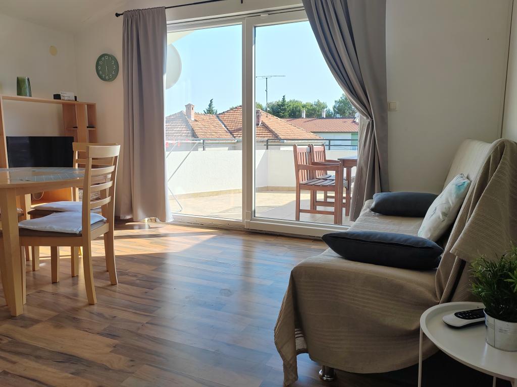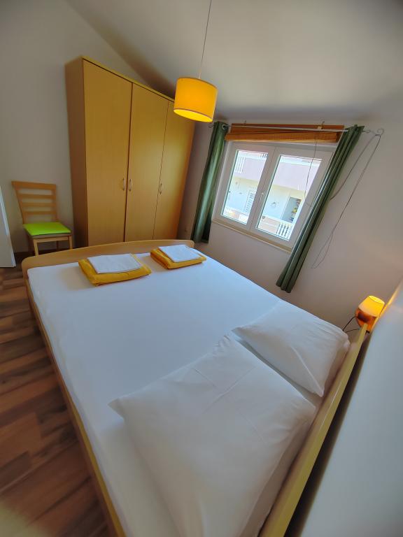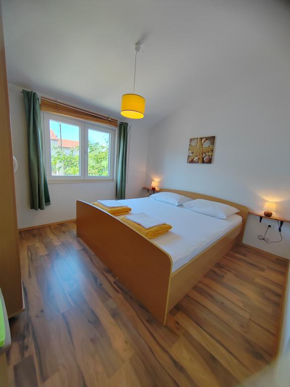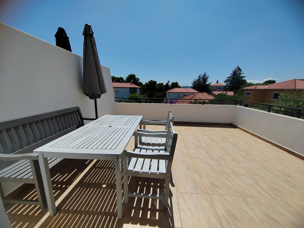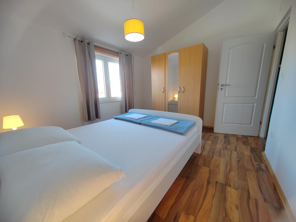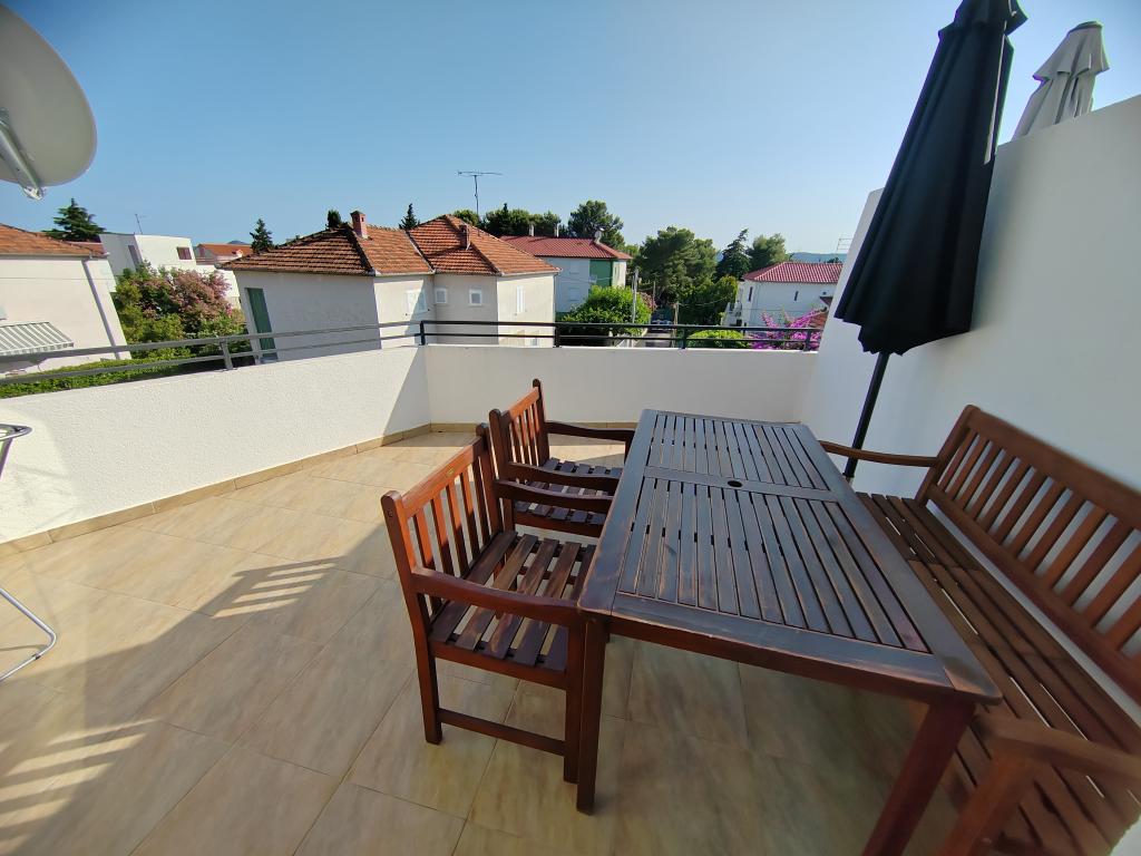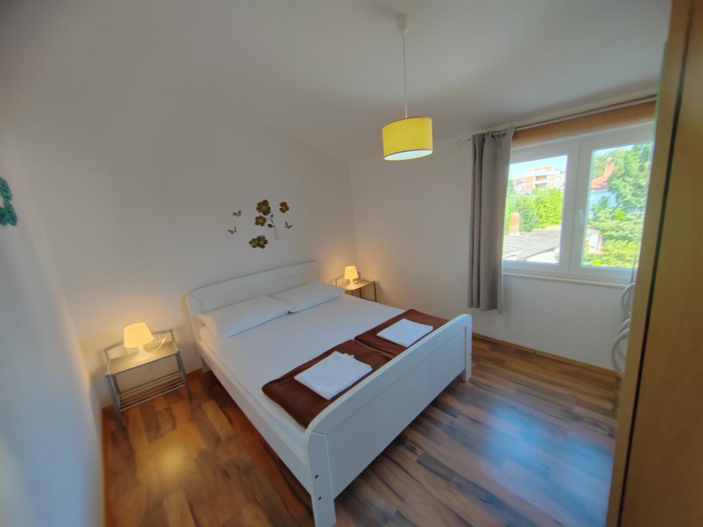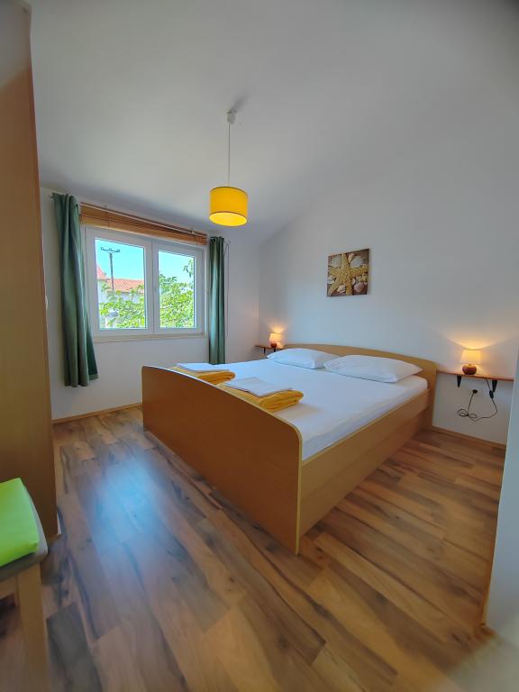 Aproape de centru și de plajă (150 m). Două apartamente sunt situate într-o casă de familie (la primul etaj), care se află la 150 m de plajă și de centrul orașului. Fiecare apartament are două dormitoare, o baie, o mașină de spălat, aer condiționat, o bucătărie cu zonă de luat masa și o canapea, o terasă mare (20m2). Totul este inclus în preț. Există un grătar în grădină. Parcarea este situată în fața casei, la umbră. Suprafața apartamentului este de 70 m2.