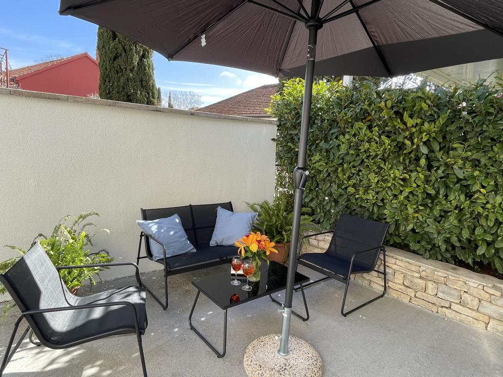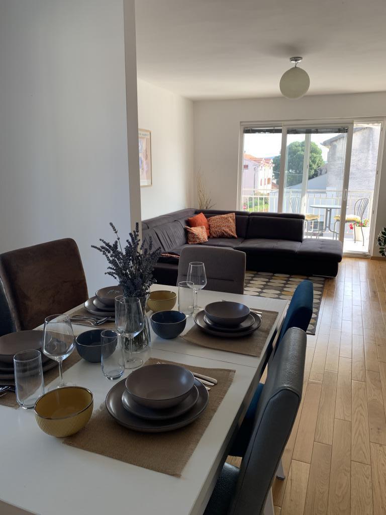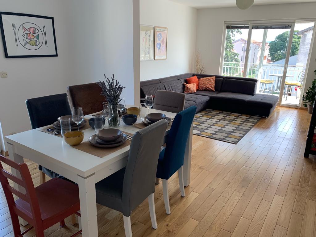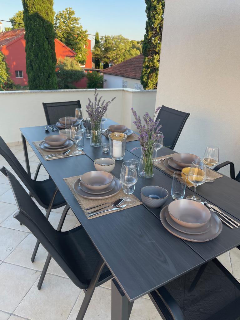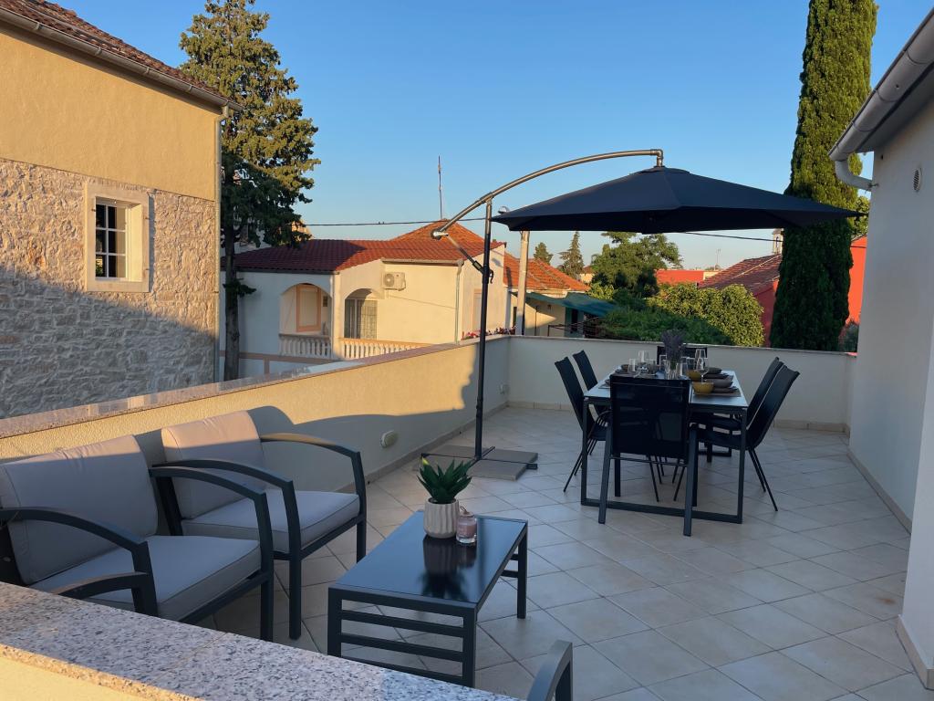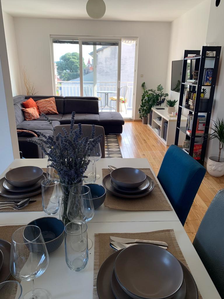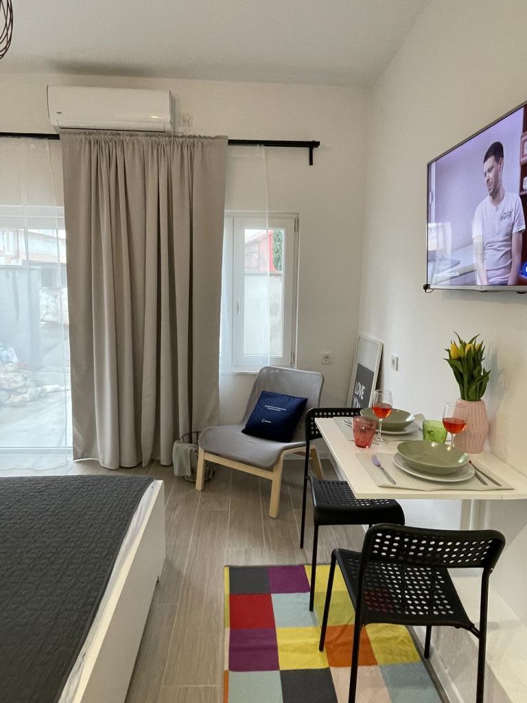 O garsonieră complet utilată, cu terasă, este situată la parterul unei case familiale din centrul orașului Sveti Filip i Jakov. Apartamentul cu trei dormitoare, complet utilat, cu o terasa mare cu mobilier de gradina este situat la primul etaj al casei. Apartamentele sunt situate la 5 minute de mers pe jos de cea mai apropiata plaja (poti alege pietris, nisip sau beton), restaurante, magazine, posta, facilitati sportive, cafe-baruri... Parcarea este asigurata in fata casei si este inclusa. in pret. De asemenea, oaspeții au la dispoziție un grătar...