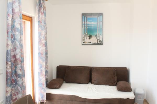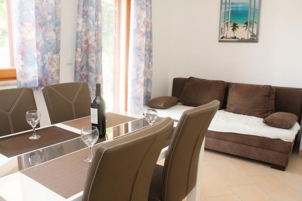 În apartamentul pentru două persoane am rămas între 13.7-17.7.2019. Comunicarea în timpul procesului de negociere a fost foarte rapidă, bună și în cele din urmă reușită. Aș dori să-i laud pe gazdele care erau mereu în largul lor și foarte prietenoase. Apartamentul este foarte bine echipat, dar dacă avem nevoie de ceva, gentlemanul și doamna s-au asigurat de ea (deschizătorul de conserve). Apartamentul este complet nou, foarte curat, paturi afumate, prosoape curate, saltea excelentă (într-o singură bucată). Aș vrea, de asemenea, să fiarbă pentru apă fără vapori. Apartamentul are, de asemenea, un loc de parcare, situat pe o parte ușor înălțată a străzii Filip Jakova, iar din sat și plajă se află la o plimbare de 10 minute pe deal. Pentru fiecare recomandare și pentru toată lauda.
