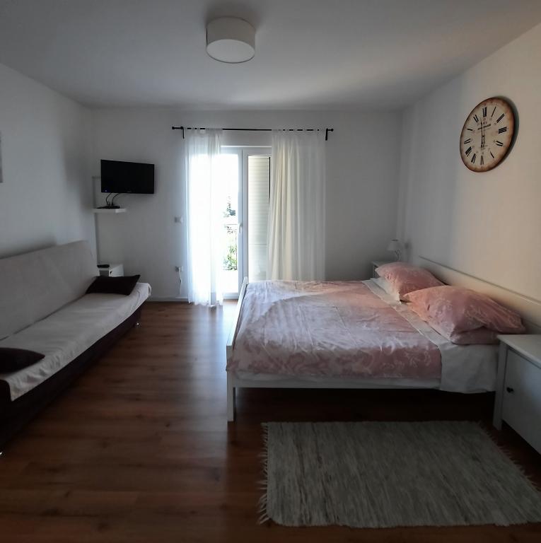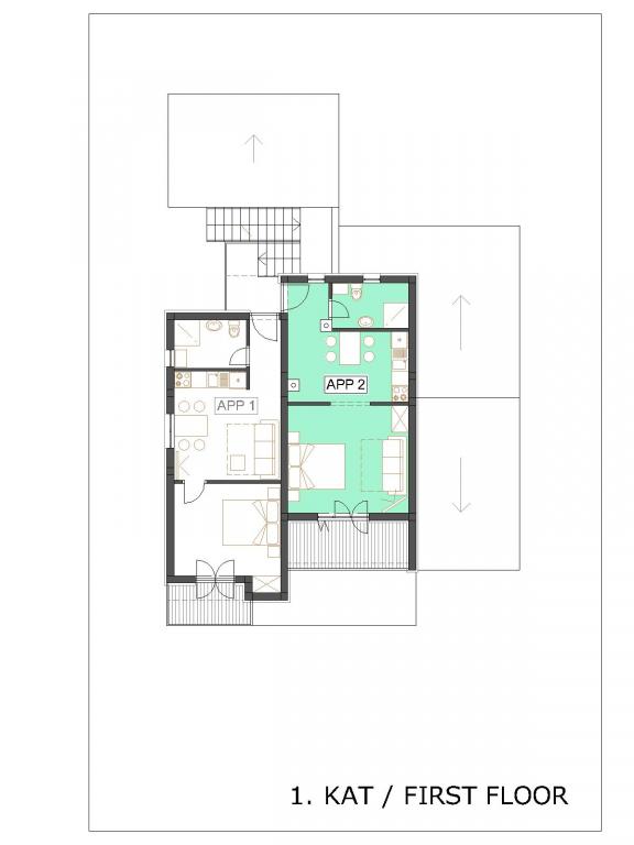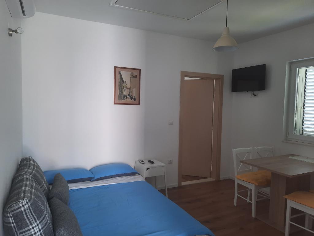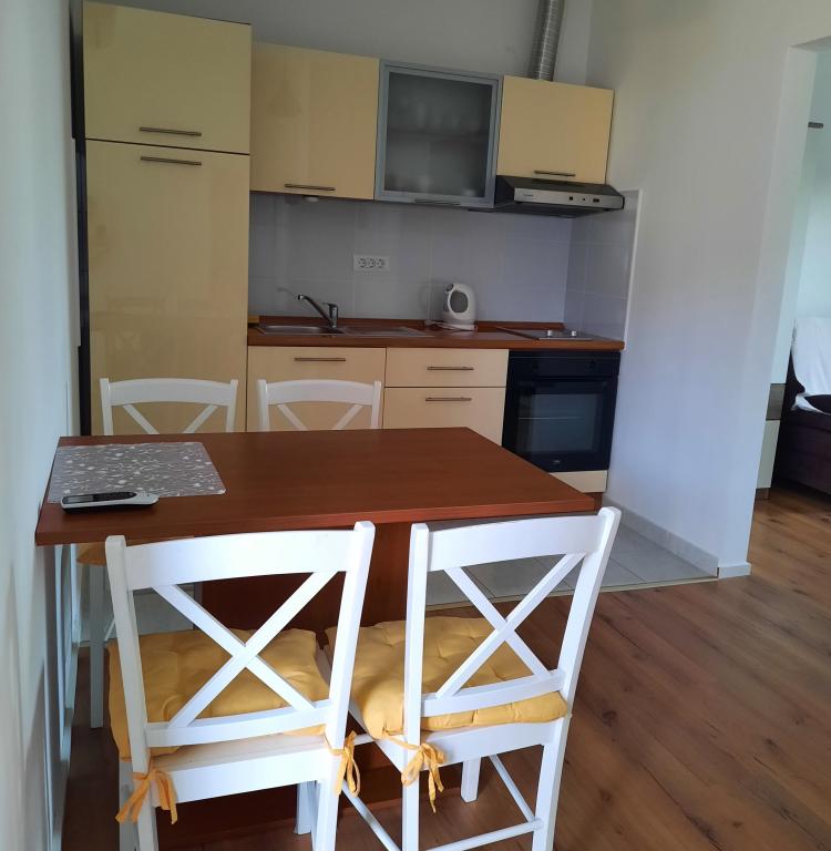 Un apartament cu un dormitor (APP 1) și un studio mare (APP 2) cu 4 *, ambele de 38 m2, terasă cu vedere la mare, la etajul 1 al unei case de familie. Într-o zonă liniștită a orașului, aproape de plaje cu nisip și pietriș la 100 m distanță. Echipat complet. Cazare ideală, confortabilă pentru două persoane sau un cuplu cu copii.