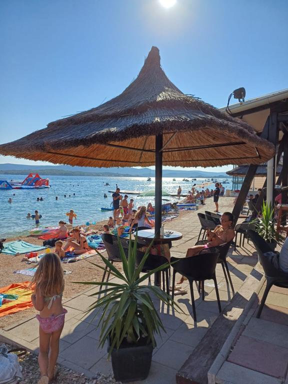 Apartamentele Obala sunt situate de-a lungul coastei de vest a Sveti Filip i Jakov. Unitățile de cazare sunt bine dotate cu electrocasnice, confortabile și spațioase unde fiecare are intrare separată, terase spațioase și parcare gratuită. De asemenea, sunt disponibile un grătar în aer liber și un duș. Este nevoie de jumătate de minut până la plaja cu nisip și pietriș și la 5 minute de mers pe jos până în centru. Plaja este bogată în conținut turistic; de la catering la închirierea de umbrele și șezlonguri, masaje și recreere sportivă, cum ar fi parcul acvatic și volei pe plajă, precum și surfing și închiriere de caiace.
