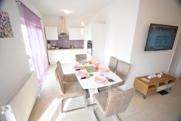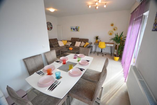 Apartamentul are mobilier nou, curat, ordonat și o terasă imensă. Toate facilitățile includ o bucătărie. Aproape de plajă, într-o locație liniștită. Paula și familia ei sunt foarte frumoase. Mulțumim că ne vom întoarce anul viitor! Familia Hutvágner din Ungaria