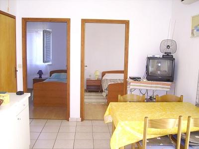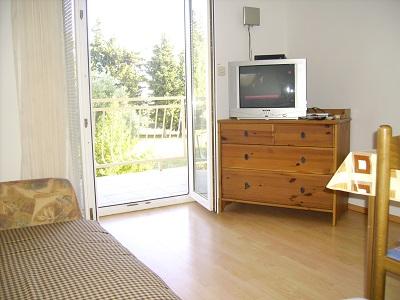 Apartamentul se afla intr-o cladire mai veche, bine intretinuta, este foarte spatios si amenajat practic, exista un frigider imens, vase multe si uscator pe balcon, si aer conditionat functional. Balconul are vedere la mare si este foarte aproape de plaja de nisip, max 100 metri. Doamna casei este de mare ajutor, ne-a cazat chiar la 5 dimineata! Apartamentul este inconjurat de o gradina bine intretinuta si liniste deplina. Singurul lucru pe care l-as adauga este o umbrela de soare sau o copertina pentru balcoanele sudice pentru a putea fi folosite mai bine, in rest totul este absolut perfect.