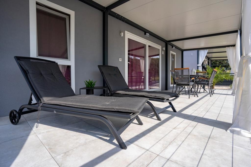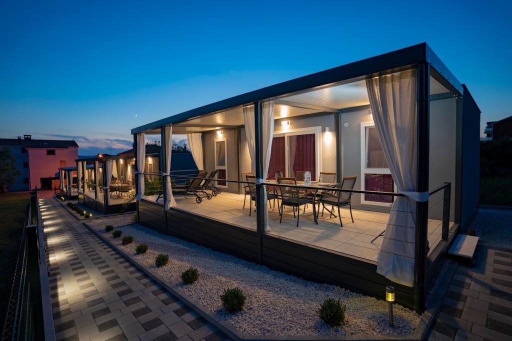 Casele mobile sunt situate în apropierea plajei cu nisip, la 200 m, de centrul 400 m și într-un mediu liniștit. Televizor mobilat luxos, Wi-Fi, două dormitoare, două băi. Bucătărie complet utilată, cu mașină de spălat vase și living. 40 m2 suprafață totală. Aer condiționat .. Terasă acoperită în aer liber de 27 m2 cu mobilier de vară. Parcare.