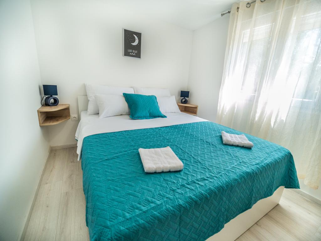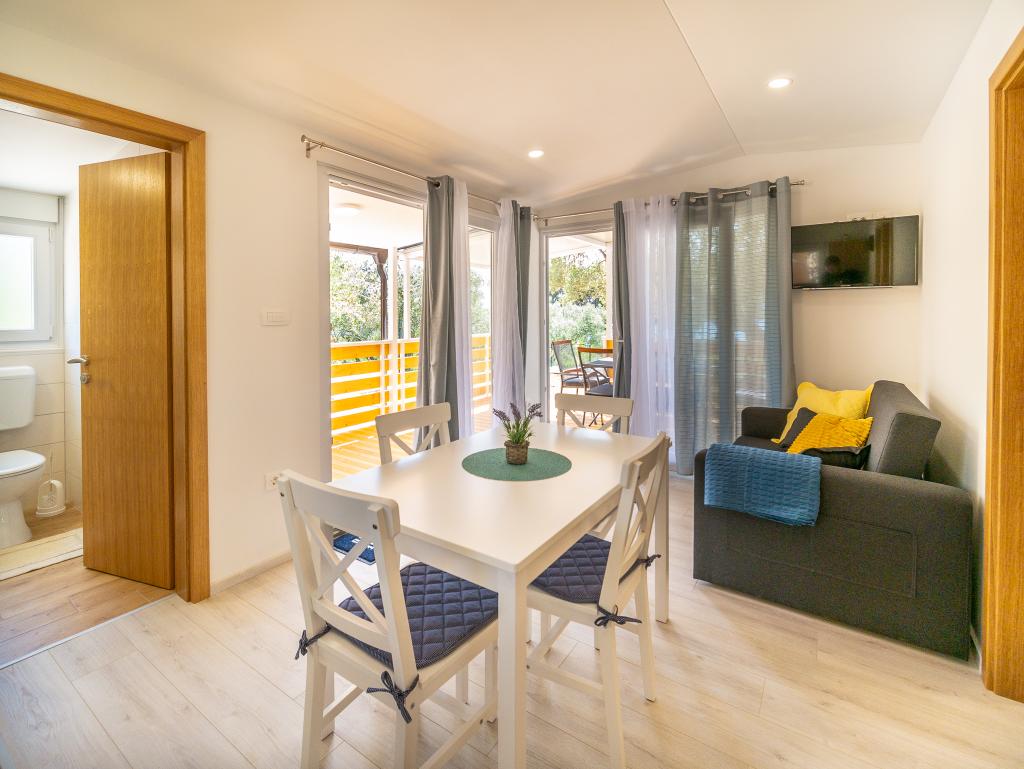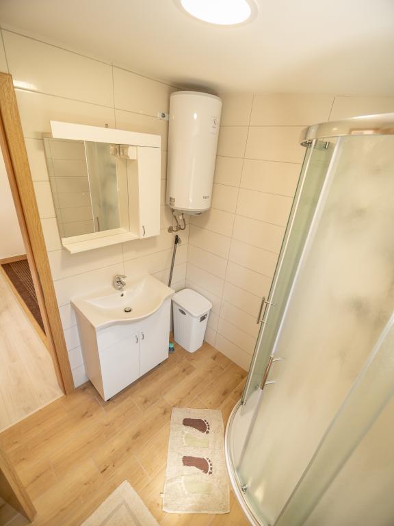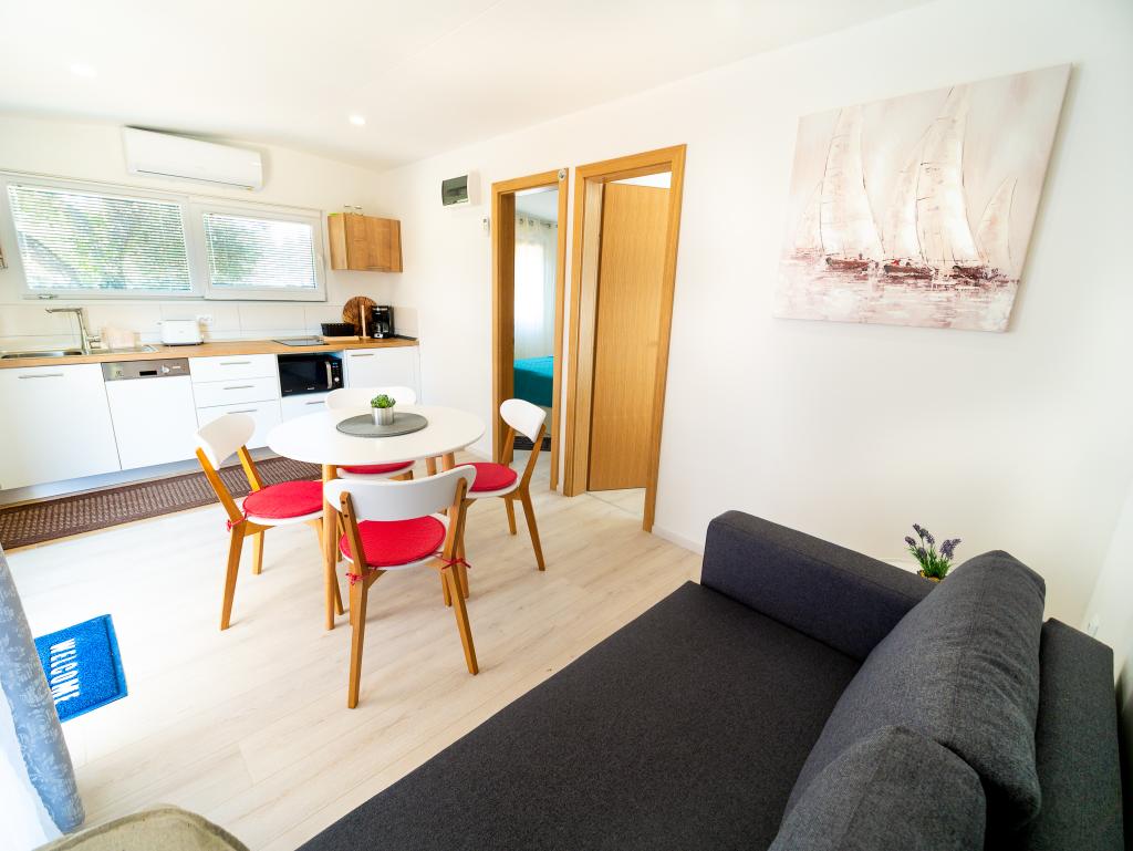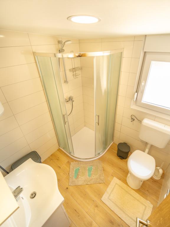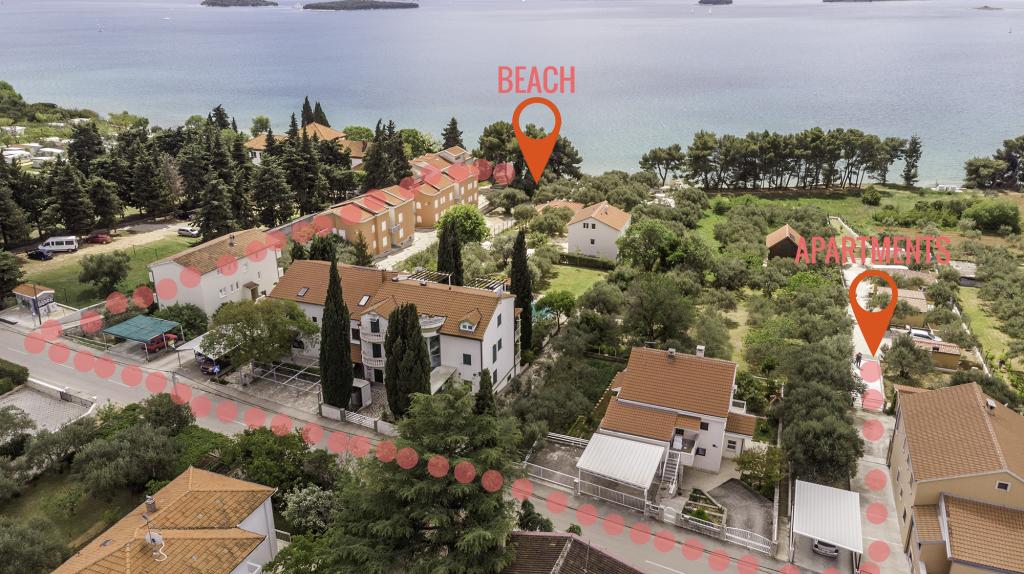 Apartament nou construit intr-o zona frumoasa si linistita in Sv. Filip și Jakov sunt primul rând la mare, plaje cu nisip la aproximativ 50 de metri distanță, iar aceeași țesătură are plaje cu pietriș. Apartamentul este legat de casa familiei, imobilul dispune de gradina proprie si parcare. Centrul orașului se află la 5 minute de mers pe jos, precum și facilitățile necesare precum magazin, oficiu poștal, teren de sport și medic. Nou in 2019 sunt 3 case prefabricate la rand pentru 4 persoane, 40 m2 cu terasa, facilitati foarte utilate, aer conditionat, 2 dormitoare cu pat 160x200, living, bucatarie, baie, TV, satelit, W-fi, si plasa de protectie. pe geamuri (plasa de tantari). Intimitate separată a fiecărei clădiri cu grătar și parcare. Proprietatea dispune de o toaleta suplimentara cu dus. O mașină de spălat și uscător pot fi folosite la un cost suplimentar. La sosire se solicită un depozit de 100 EUR, în caz de daune, care va fi rambursat la plecare.