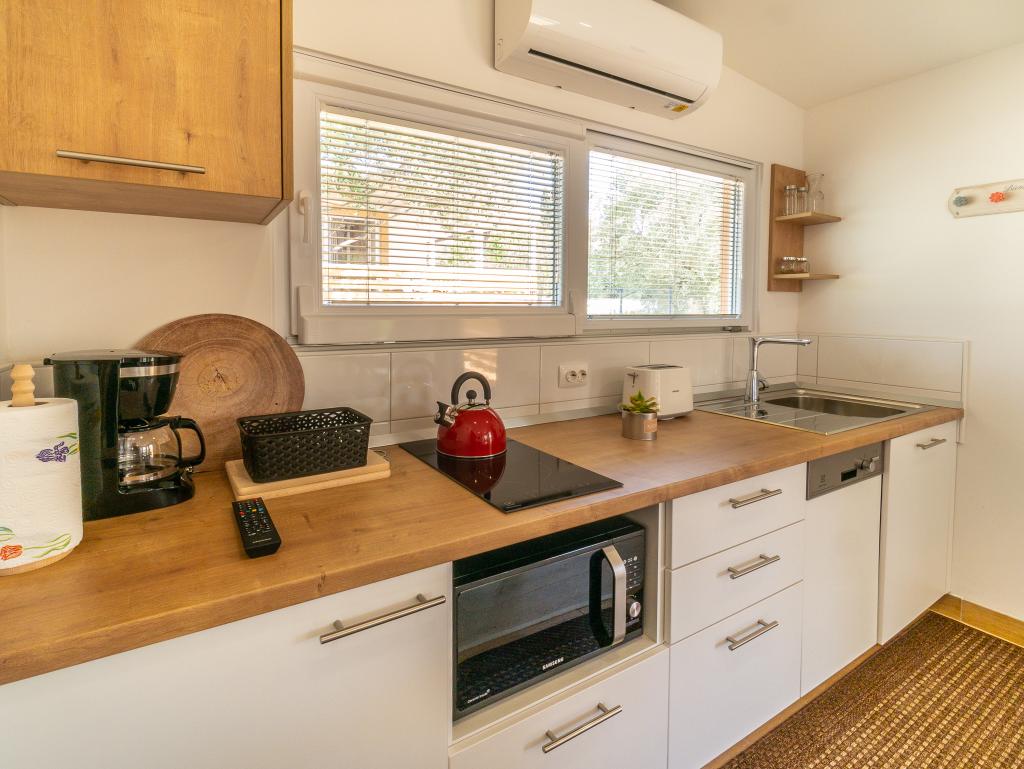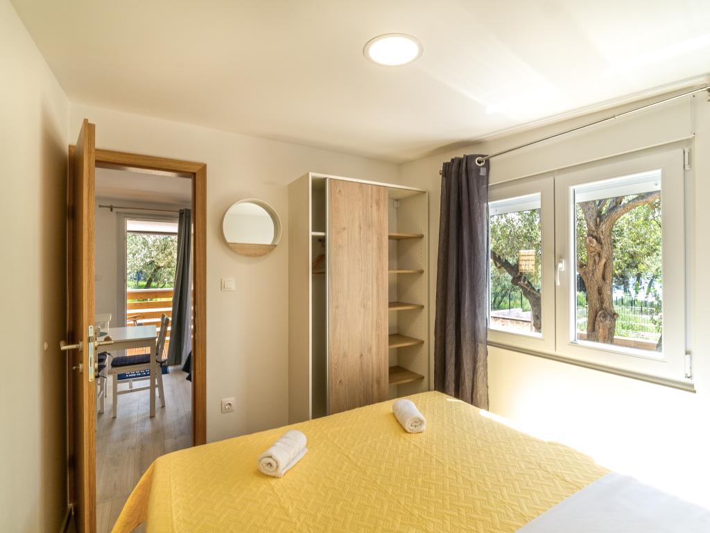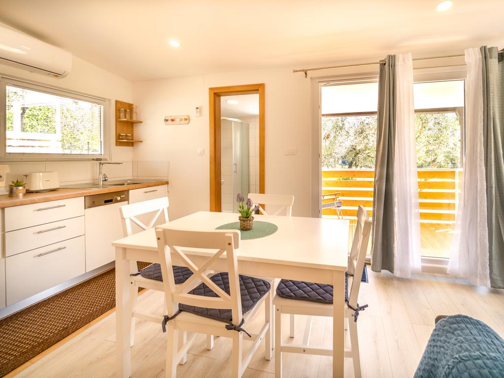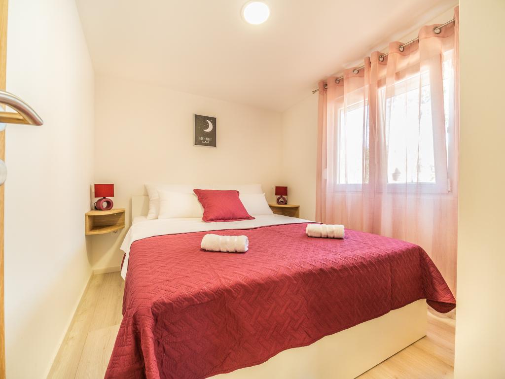 Apartament nou construit intr-o zona frumoasa si linistita in Sv. Filip și Jakov sunt primul rând la mare, plaje cu nisip la aproximativ 50 de metri distanță, iar aceeași țesătură are plaje cu pietriș. Apartamentul este legat de casa familiei, imobilul dispune de gradina proprie si parcare. Centrul orașului se află la 5 minute de mers pe jos, precum și facilitățile necesare precum magazin, oficiu poștal, teren de sport și medic. Nou in 2019 sunt 3 case prefabricate la rand pentru 4 persoane, 40 m2 cu terasa, facilitati foarte utilate, aer conditionat, 2 dormitoare cu pat 160x200, living, bucatarie, baie, TV, satelit, W-fi, si plasa de protectie. pe geamuri (plasa de tantari). Intimitate separată a fiecărei clădiri cu grătar și parcare. Proprietatea dispune de o toaleta suplimentara cu dus. O mașină de spălat și uscător pot fi folosite la un cost suplimentar. La sosire se solicită un depozit de 100 EUR, în caz de daune, care va fi rambursat la plecare.