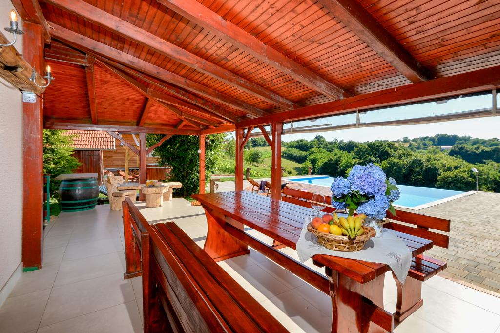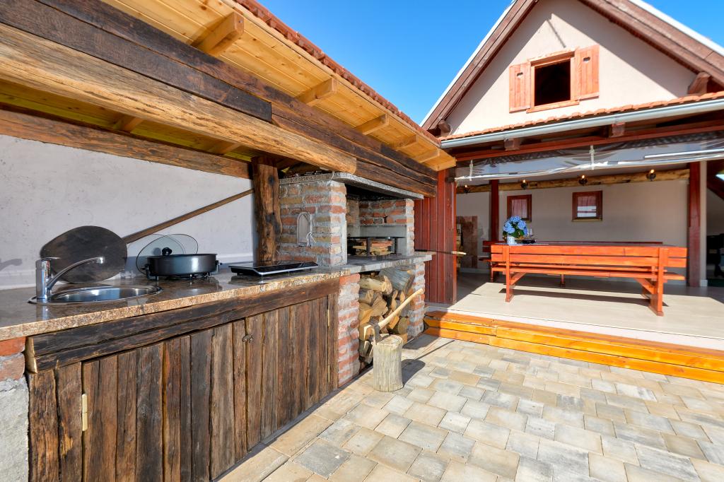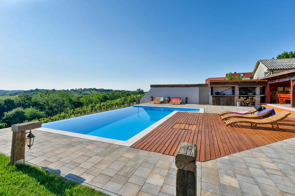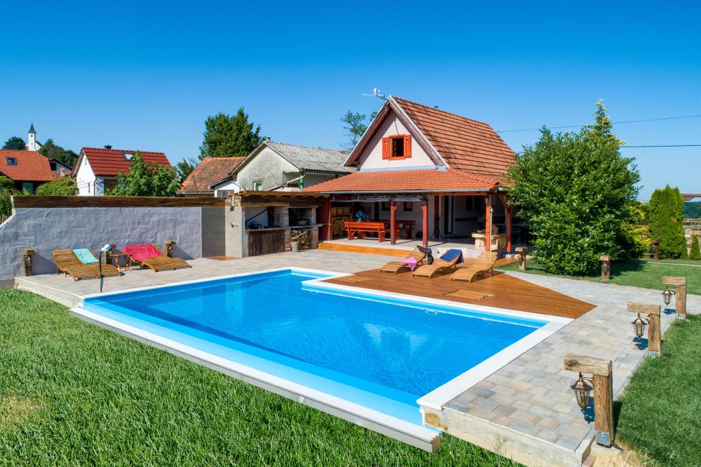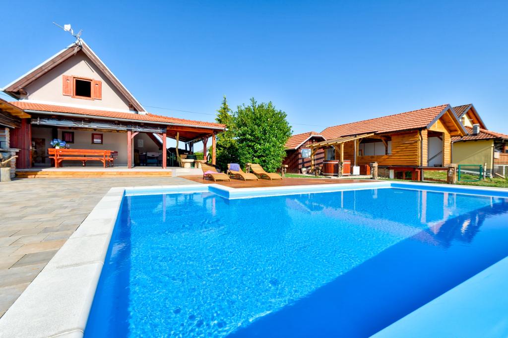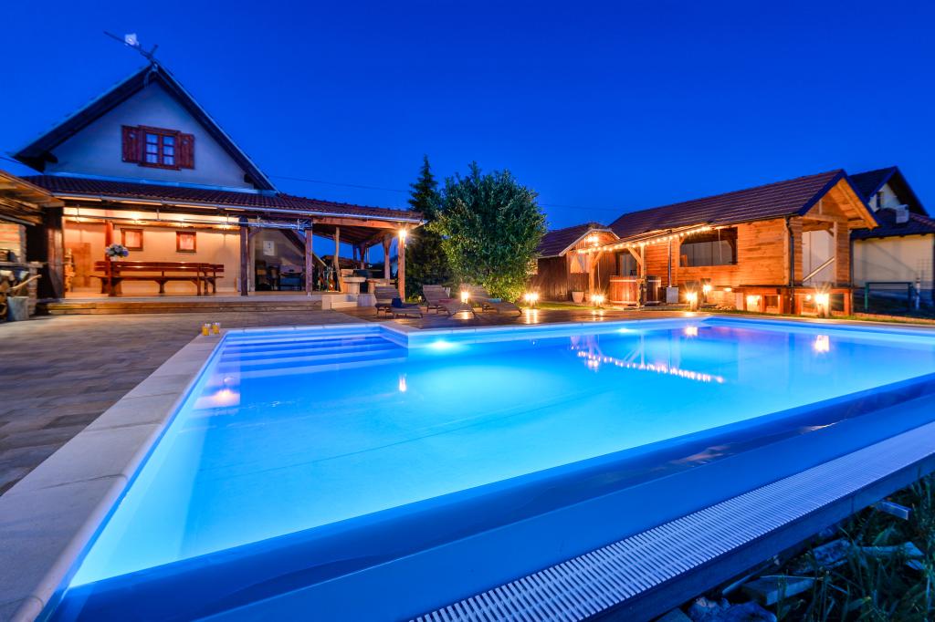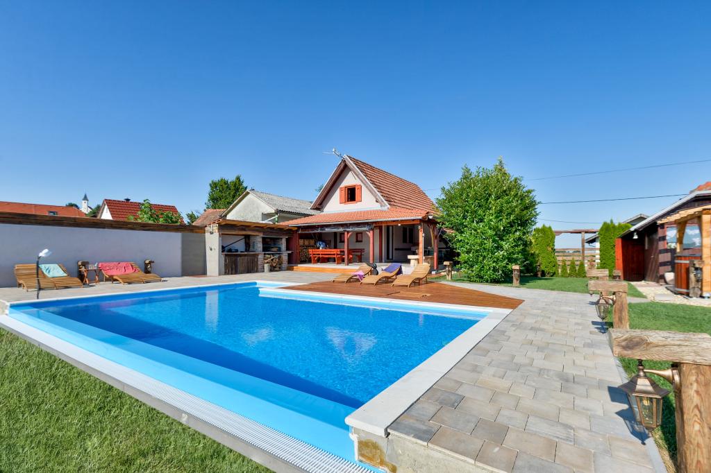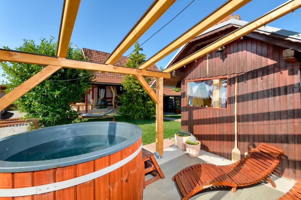 O vacanță ideală din viața de zi cu zi aglomerată.Casa de vacanță Holiday Home Dika din Kapelščak este formată din două case, una lângă alta. Putem găzdui până la opt persoane în patru dormitoare, cu trei paturi duble mari și două paturi separate. Două bucătării în interior și una în exterior fac posibilă pregătirea mâncărurilor fine. Oferim un grătar mare în aer liber pe o terasă spațioasă gata pentru întâlnirile de familie. Sauna completează șederea în casă, iar în curtea decorată fermecător este o piscină cu jacuzzi cu apă încălzită. Există, de asemenea, o piscină infinită cu o vedere minunată asupra naturii. Vara vă puteți sărbători lângă șemineul în aer liber, iar iarna vă puteți încălzi ardând în soba cu potasiu sau pur și simplu porniți termostatul și porniți încălzirea. La subsolul casei veți găsi sticle de vinuri atent alese de la vinificatorii din Međimurje, cu posibilitatea de a gusta o picătură divină a climei noastre. Alaturi de casa se afla o curte, o livada si o padure. O plimbare plăcută prin natura frumoasă a Međimurje de sus vă va duce la LifeClass Terme Sveti Martin în 25 de minute.