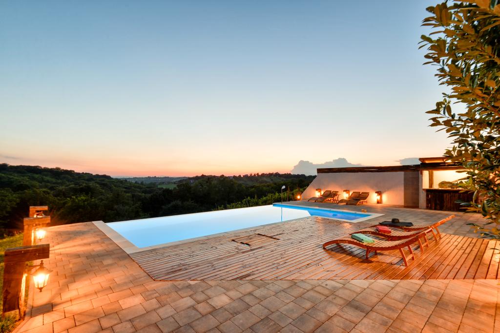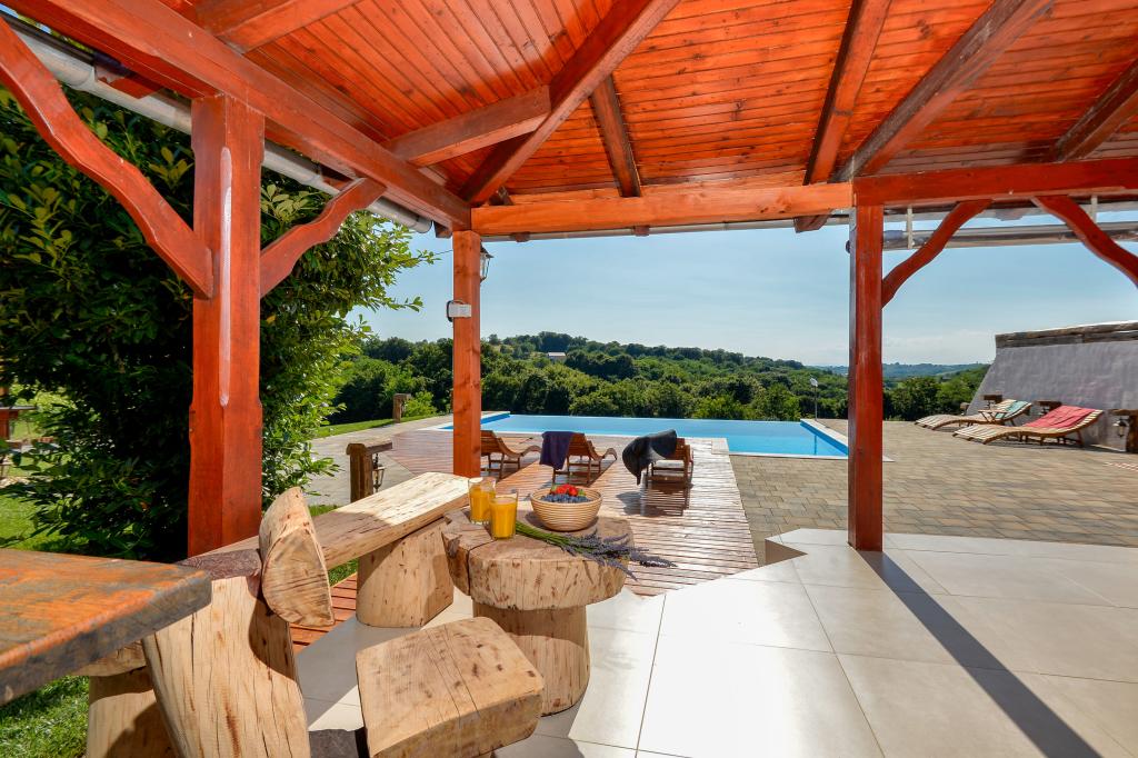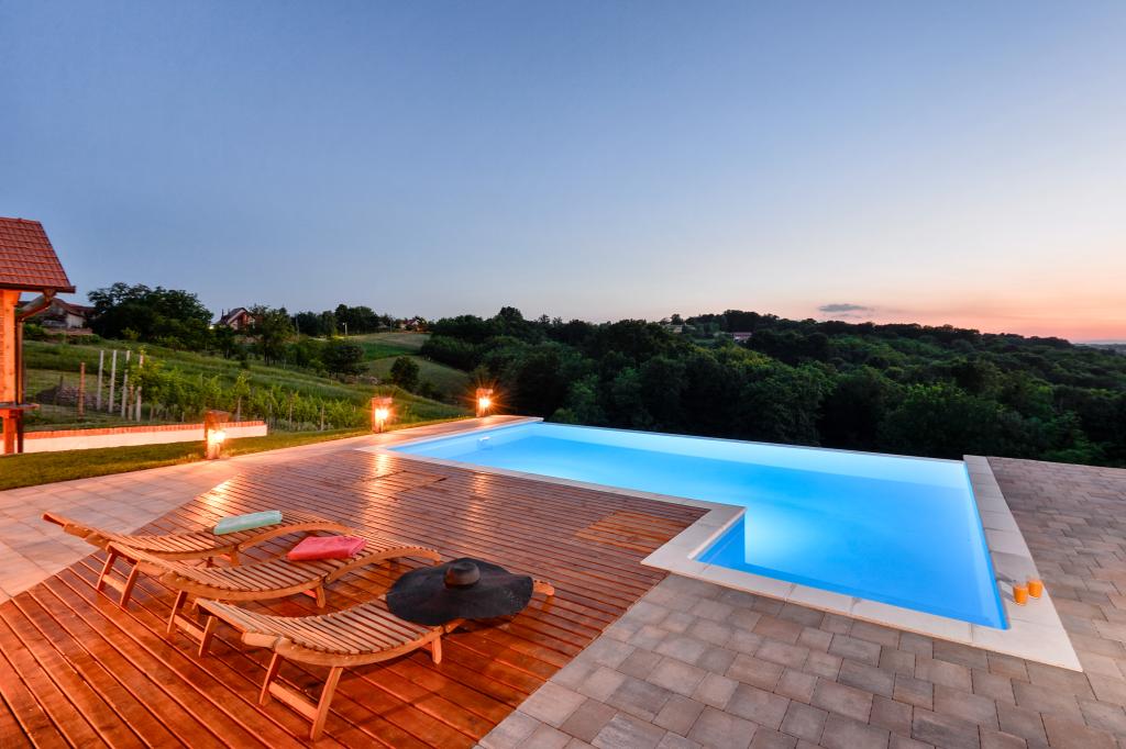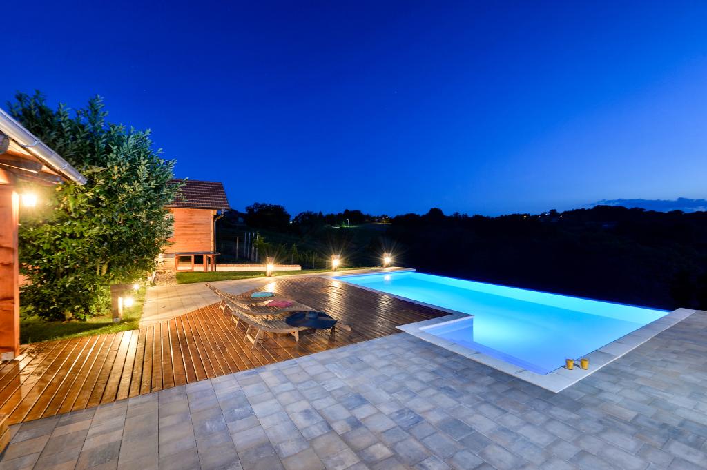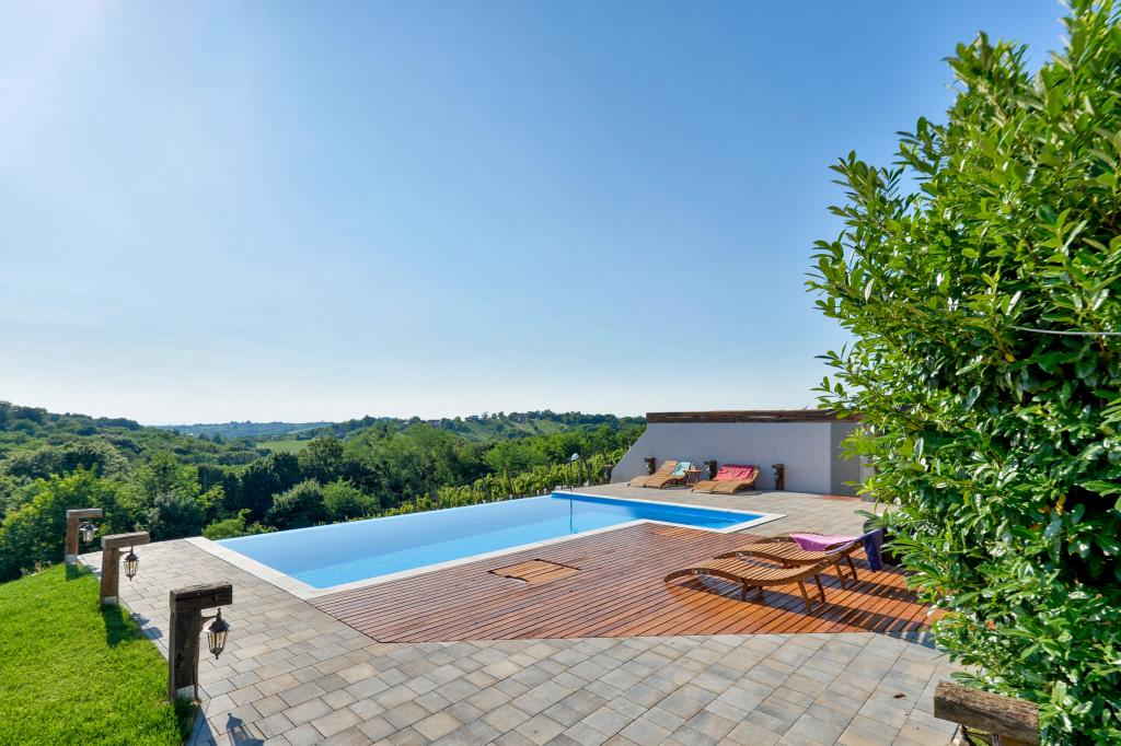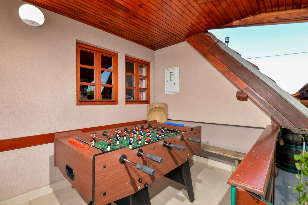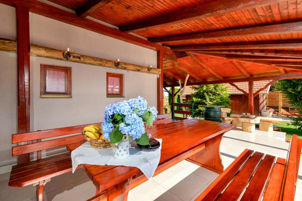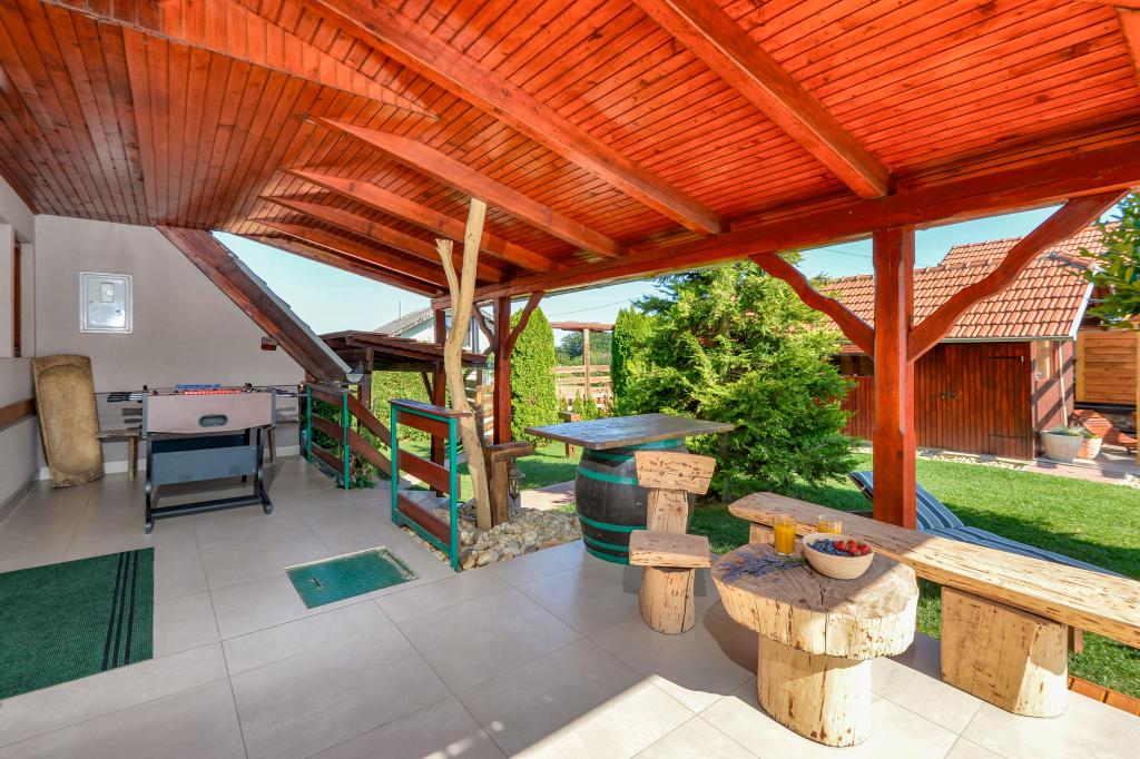 O vacanță ideală din viața de zi cu zi aglomerată.Casa de vacanță Holiday Home Dika din Kapelščak este formată din două case, una lângă alta. Putem găzdui până la opt persoane în patru dormitoare, cu trei paturi duble mari și două paturi separate. Două bucătării în interior și una în exterior fac posibilă pregătirea mâncărurilor fine. Oferim un grătar mare în aer liber pe o terasă spațioasă gata pentru întâlnirile de familie. Sauna completează șederea în casă, iar în curtea decorată fermecător este o piscină cu jacuzzi cu apă încălzită. Există, de asemenea, o piscină infinită cu o vedere minunată asupra naturii. Vara vă puteți sărbători lângă șemineul în aer liber, iar iarna vă puteți încălzi ardând în soba cu potasiu sau pur și simplu porniți termostatul și porniți încălzirea. La subsolul casei veți găsi sticle de vinuri atent alese de la vinificatorii din Međimurje, cu posibilitatea de a gusta o picătură divină a climei noastre. Alaturi de casa se afla o curte, o livada si o padure. O plimbare plăcută prin natura frumoasă a Međimurje de sus vă va duce la LifeClass Terme Sveti Martin în 25 de minute.