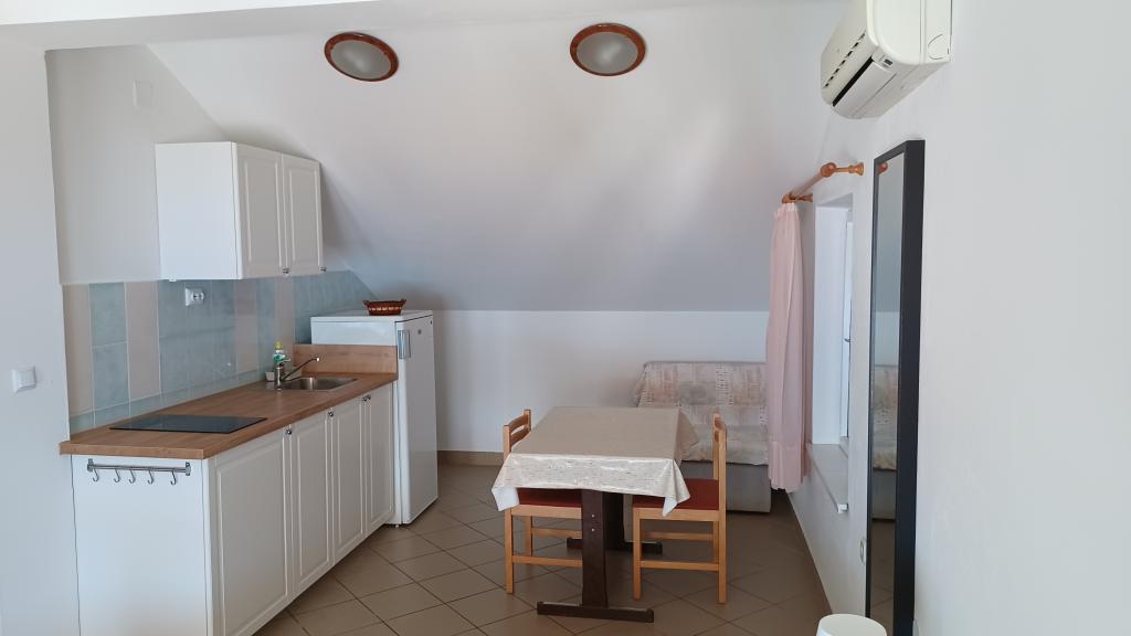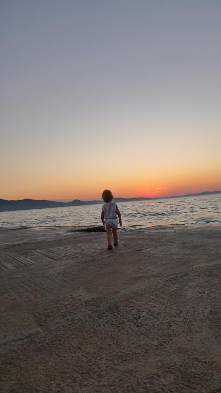 Casă de familie, la două minute de mers pe jos până la mare. O destinație turistică foarte frumoasă și liniștită. Apartamentul la mansarda (S2+1) este format dintr-o camera mare cu un pat dublu, o canapea extensibila si un televizor. Include o bucătărie cu zonă de luat masa. Are o baie mare cu duș și bideu. Suprafata este de 26 mp. Terasa mare (25m2) oferă vedere la insula Pašman și Ugljan. Garsoniera (S2) este formată dintr-o cameră mare care include o bucătărie mică și o baie. Are un pat dublu și un televizor. Are o terasă mare cu vedere la mare și la insula Pašman. Garsoniera are 20m2 iar terasa este de 14m2. Apartamentul cu un dormitor (A2) este format dintr-un dormitor cu un pat dublu și un televizor, o bucătărie cu zonă de luat masa și o baie mare. Apartamentul are o terasa mai mica si este pozitionat in laterala casei. Apartamentul are 25m2, iar terasa este de 3m2. Gătitul se face pe bază de electricitate. Se oferă lenjerie de pat. Pentru fiecare oaspete este oferit un loc de parcare. Gratarul este comun. Mai multe parcuri naționale și parcuri naturale sunt în apropiere, ideale pentru o excursie de o zi.