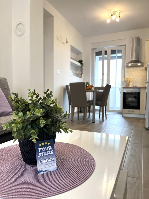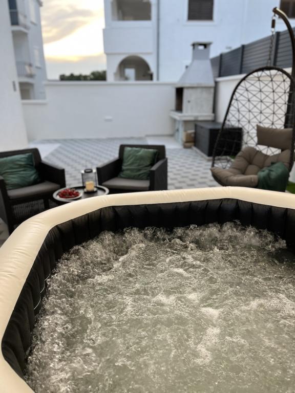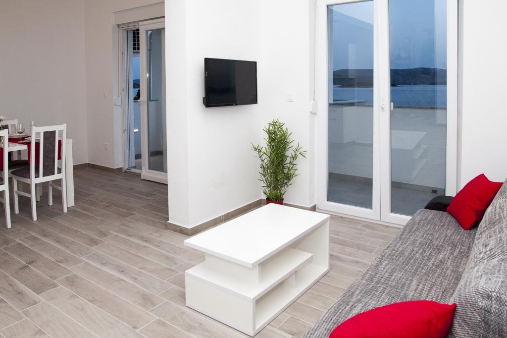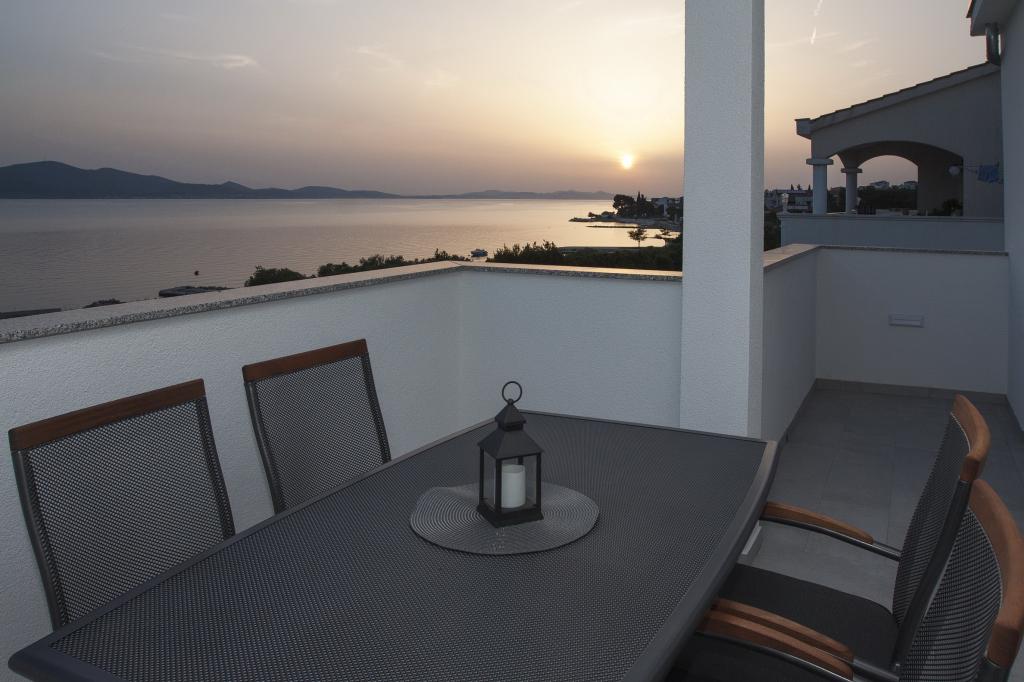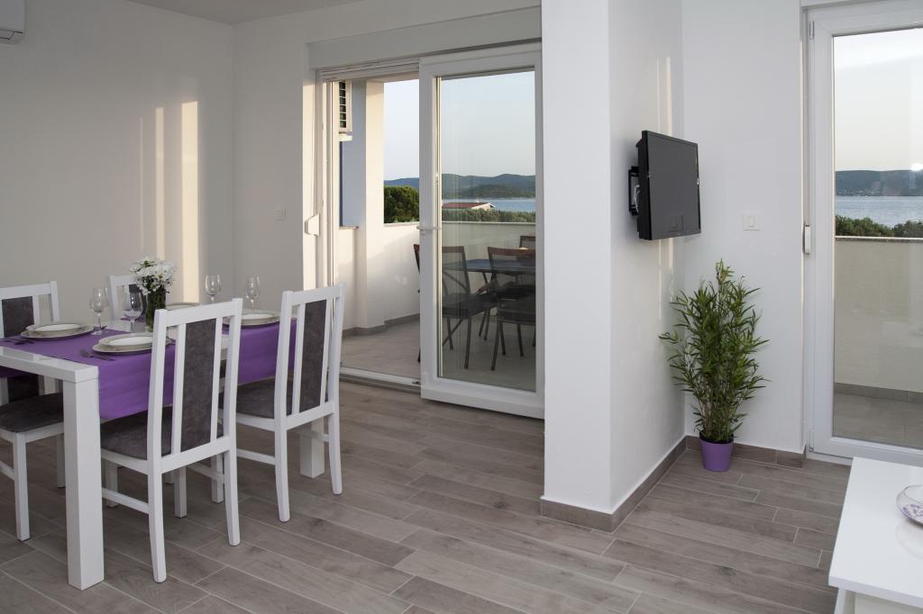 Noile apartamente de lux Four Stars sunt situate în Sveti Petar na moru, între Biograd na moru și Zadar. Apartamentele sunt situate pe primul rând la mare, la 40 de metri de plaja cu pietriș. Toate apartamentele sunt dotate cu aer condiționat și izolate fonic. Există plase de țânțari la fiecare fereastră și ușă de balcon. Ușa de intrare a apartamentului este ignifugă și antiefracție, TV LCD cu ecran plat cu programe prin satelit, WI-FI gratuit. De pe balcon vă puteți bucura de o priveliște minunată asupra mării și a insulei iubirii - Galešnjak. Oferta include parcare privată gratuită, și un grătar în spatele casei, precum și o piscină cu hidromasaj cu jacuzzi care oferă conținut complet facilității noastre. Pe scurt, apartamentele Four Stars vă oferă vacanța perfectă și evadarea din viața aglomerată. Dacă sunteți în căutarea distracției cu adrenalină, aveți la dispoziție distracția Dalmaland Fun & Water Park din Biograd na moru (11 km). În apropiere se află orașul Zadar (17 km), care este plin de conținut istoric. Ei bine, decizia depinde de tine și te așteptăm cu nerăbdare :)