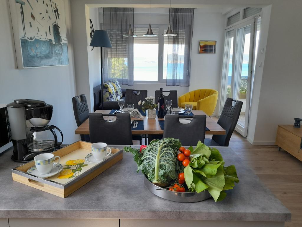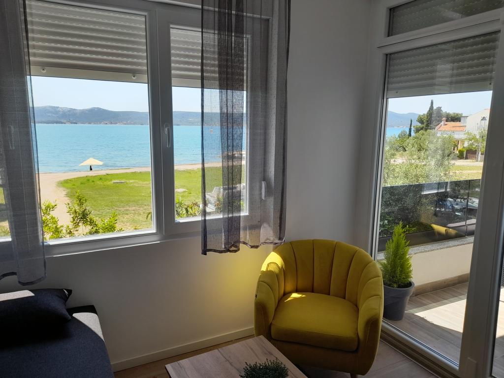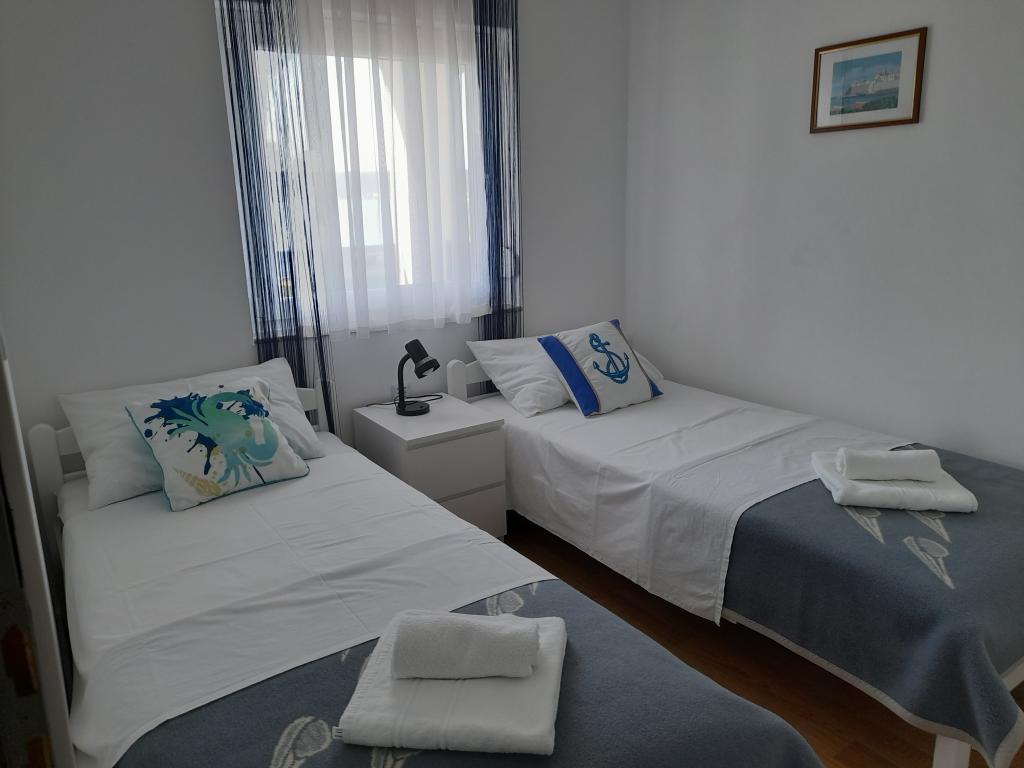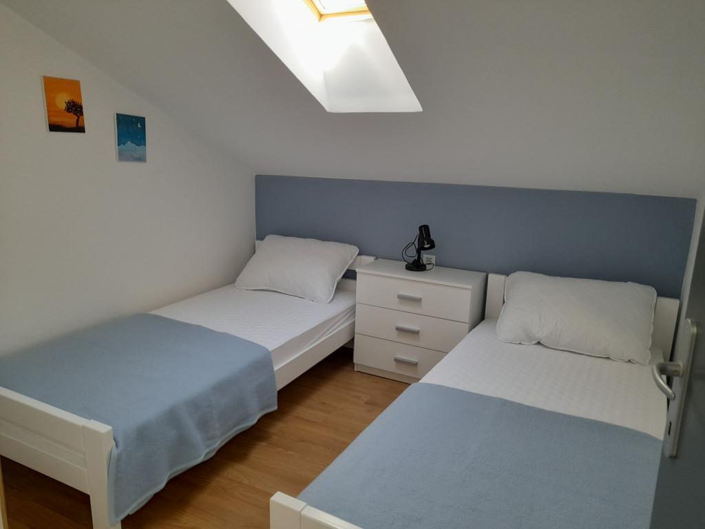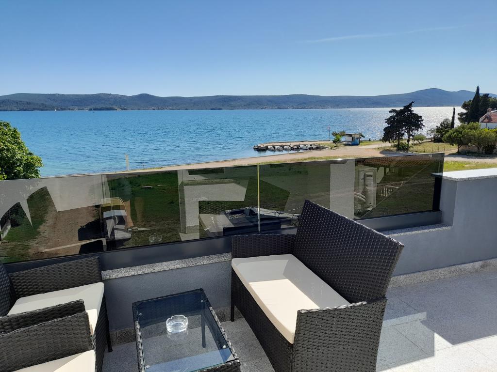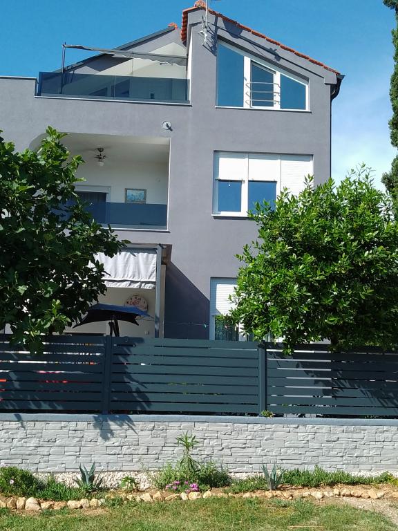 Închiriez două apartamente decorate modern și complet echipate, cu aer condiționat, cu o vedere frumoasă la mare, care este la doar 60 m distanță. 1 (4****) este situat la primul etaj, dispune de doua dormitoare, o baie cu masina de spalat rufe, o bucatarie dotata cu toate electrocasnicele (masina de spalat vase, cuptor cu microunde, toaster...), o sufragerie cu tragere. pat și o terasă cu o vedere frumoasă asupra insulei Pašman. App 2 se afla la mansarda, are doua dormitoare, o bucatarie cu living, o baie si o terasa cu vedere la mare. Este dotat exact la fel ca App 1. Parcarea pentru mașini este asigurată în curte sau în fața curții.