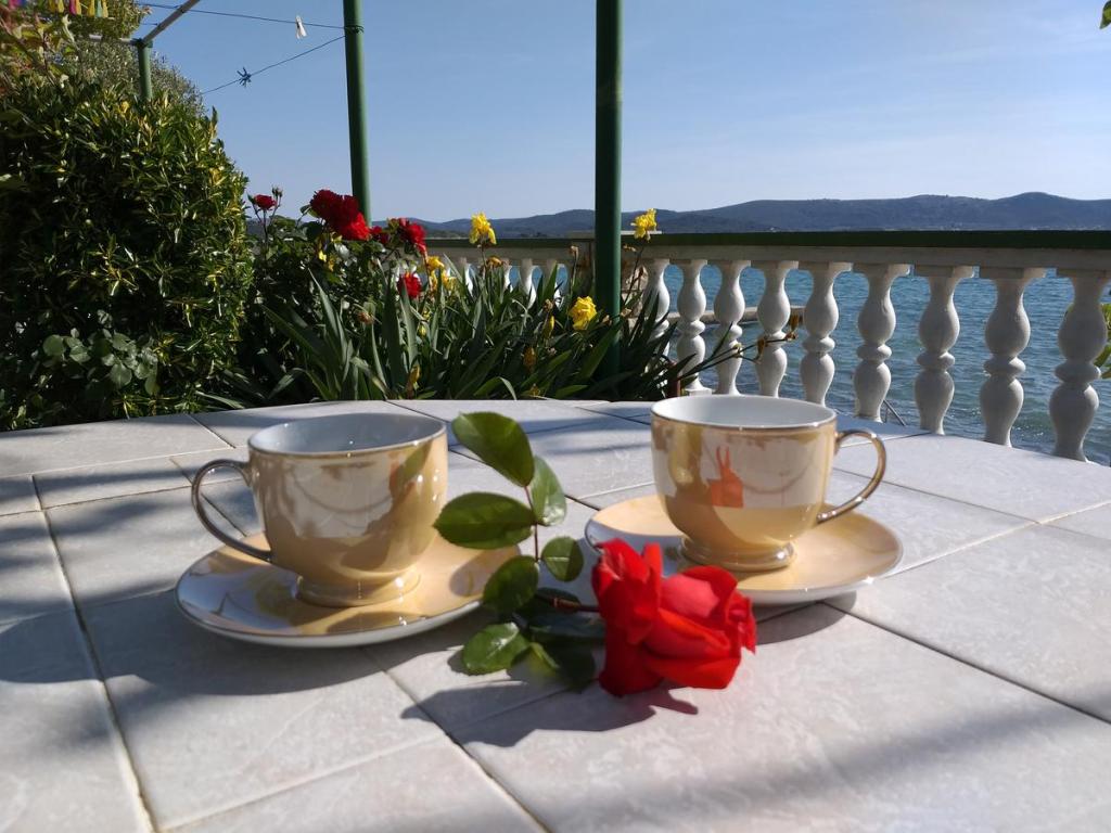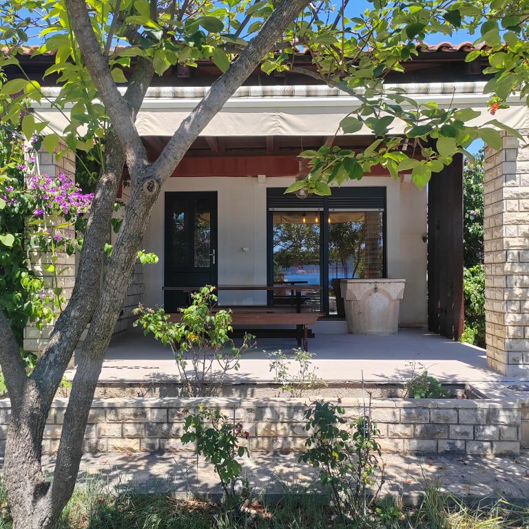 Casă fermecătoare complet utilată, cu patru dormitoare și două terase în mijlocul unei grădini private din care poți coborî oricând direct la mare și la plajă. Locația perfectă pentru o vacanță relaxantă, plajă în intimitate, grătar lângă mare și bucurie de bucuriile mării. Casa a fost parțial renovată anul acesta.