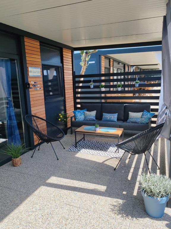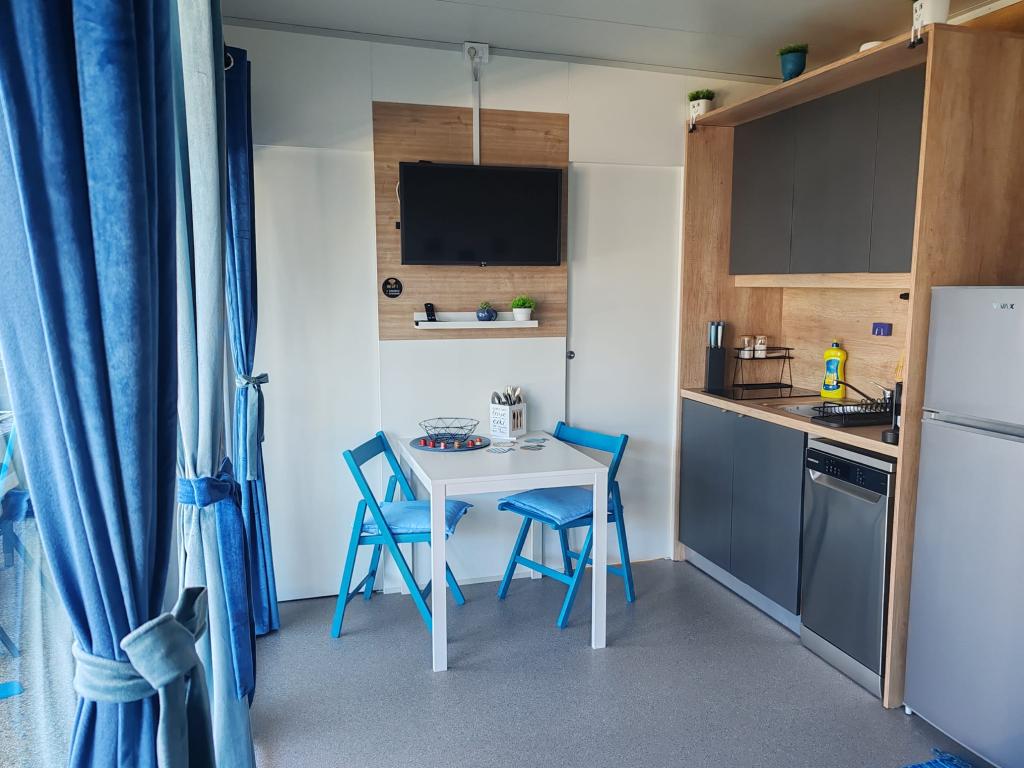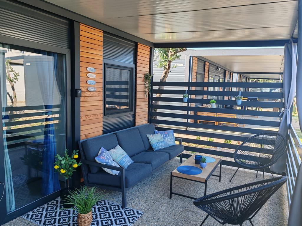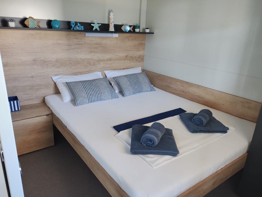 Noua casă mobilă complet utilată este situată în tabăra recent renovată Tamaris. Casa este complet utilata cu toate facilitatile pentru o vacanta placuta. Avantajul casei este apropierea de frumoasa plaja, la doar 15 metri distanta. Descrierea casei: -2 dormitoare cu paturi duble (140x200 si 160x200) si lenjerie de pat -bucatarie cu living (masa extensibila, canapea extensibila) -baie (prosoape si uscator de par) -terasa mare spatioasa (masa + 6 scaune, mobilier si scaune pentru sezut, gratar pe gaz cu arzator suplimentar pentru gatit)