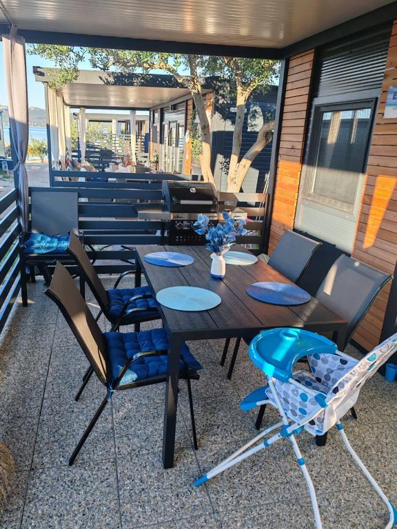 Poziționarea excelentă a casei mobile EMMI lângă plaja cu nisip și pietriș (20 de metri), ideală pentru copii, chiar și pentru cei mai puțin curajoși înotători. Proprietarii sunt amabili și le-au oferit oaspeților tot ce au nevoie pentru o vacanță (șezlonguri, umbrelă, sup, grătar pe gaz și mobilier confortabil pe terasa casei, tot ce ai nevoie). Oricine este interesat de o vacanță în familie, fără zgomot și stres, ar trebui să rezerve imediat, nu veți da greș. Familia mea se întoarce și sper să stau mai mult de 7 zile anul viitor.