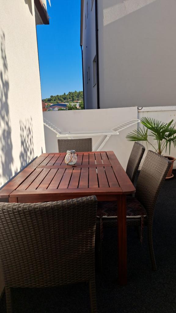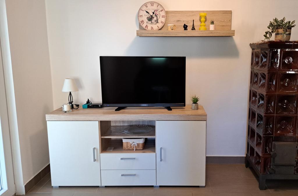 Apartamentele \Aneta\ sunt situate chiar la intrarea în Tisno. Două apartamente sunt situate la etajul 1, în timp ce al treilea apartament este situat la parter. Apartamentele au balcoane, iar apartamentul de la parter are o terasă spațioasă. Apartamentele sunt dotate cu o bucătărie cu cuptor, aragaz, frigider și fierbător. Apartamentele au TV prin satelit, WIFI, iar fiecare apartament are aer condiționat separat. Locuri de parcare sunt oferite în fața casei, iar un loc de acostare pentru bărci este disponibil la cerere.