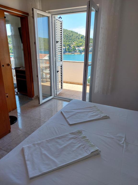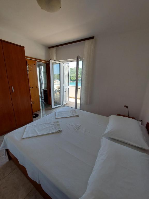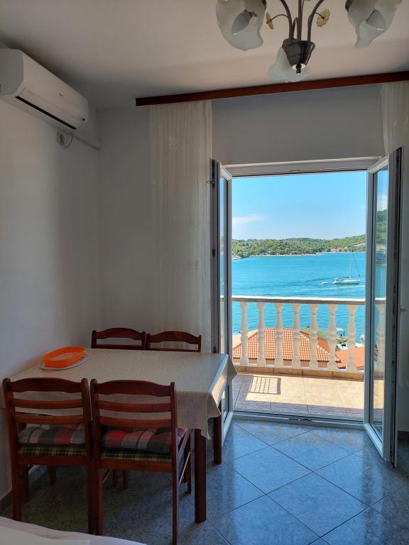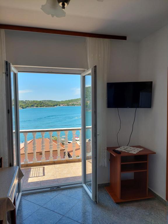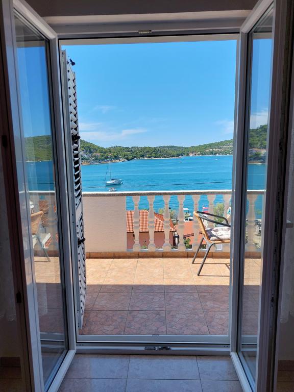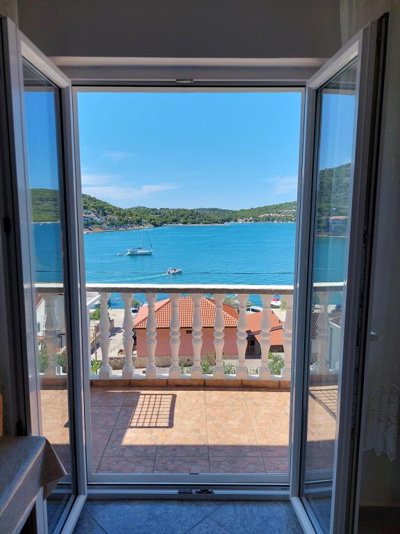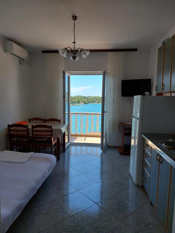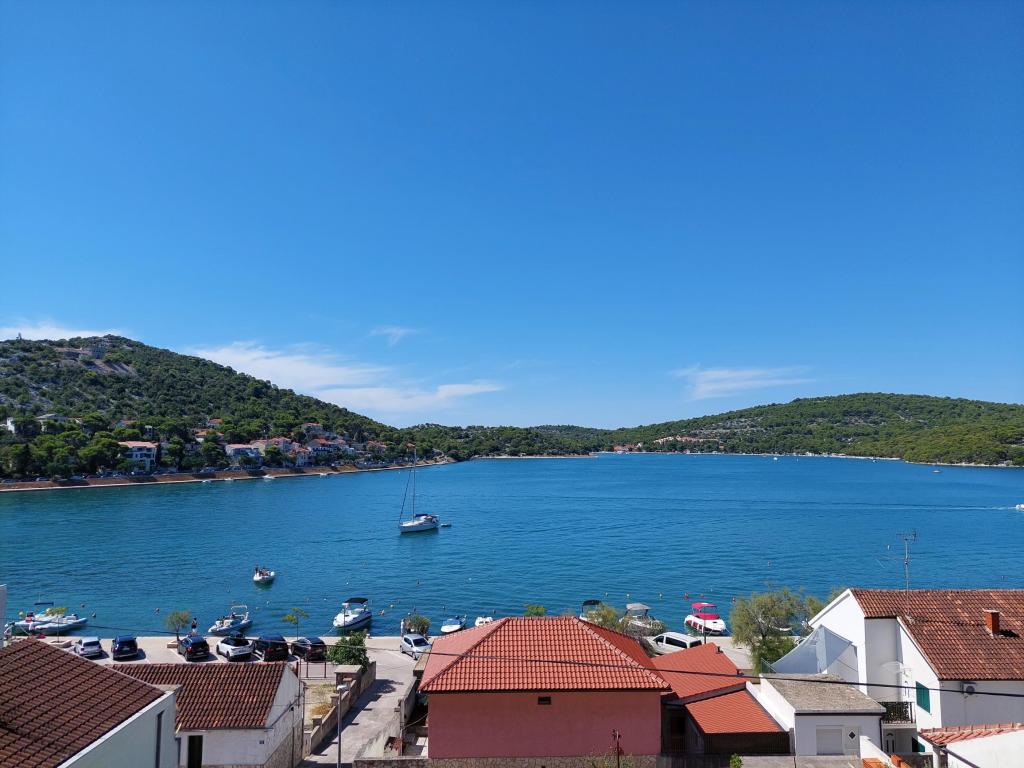Apartamente frumoase cu vedere la mare în Tisno! Bucurați-vă de o vacanță relaxantă în apartamentele noastre moderne și confortabile, la numai 50 de metri de Marea Adriatică. Fiecare apartament oferă: o terasă spațioasă cu vedere, o bucătărie complet utilată, un living cu TV, Wi-Fi gratuit, aer condiționat și o baie privată. Oferim si un acostare gratuit pentru ambarcatiuni, pe mal chiar sub apartament. Tisno este un loc pitoresc, cu o gamă largă de restaurante, cafenele și magazine. Există, de asemenea, numeroase parcuri naționale și insule în apropiere pe care le puteți explora. Rezervă-ți șederea la noi și bucură-te de o vacanță de neuitat pe Marea Adriatică!
