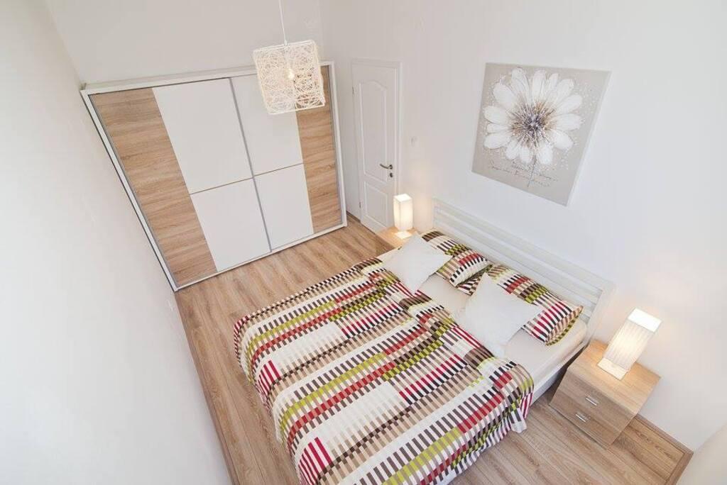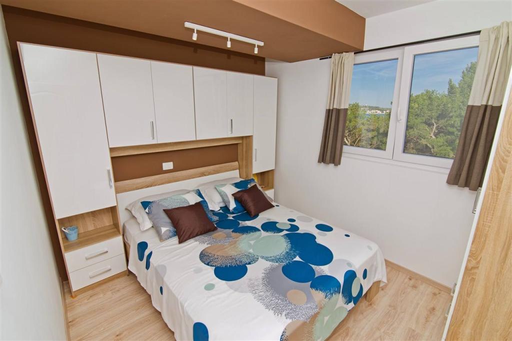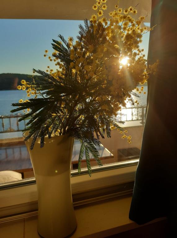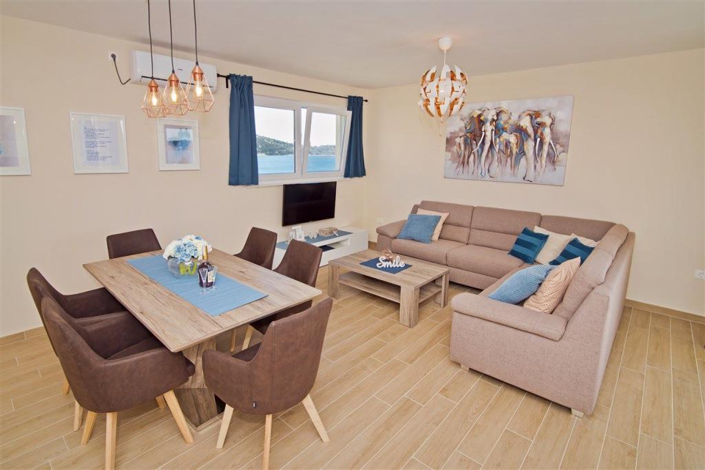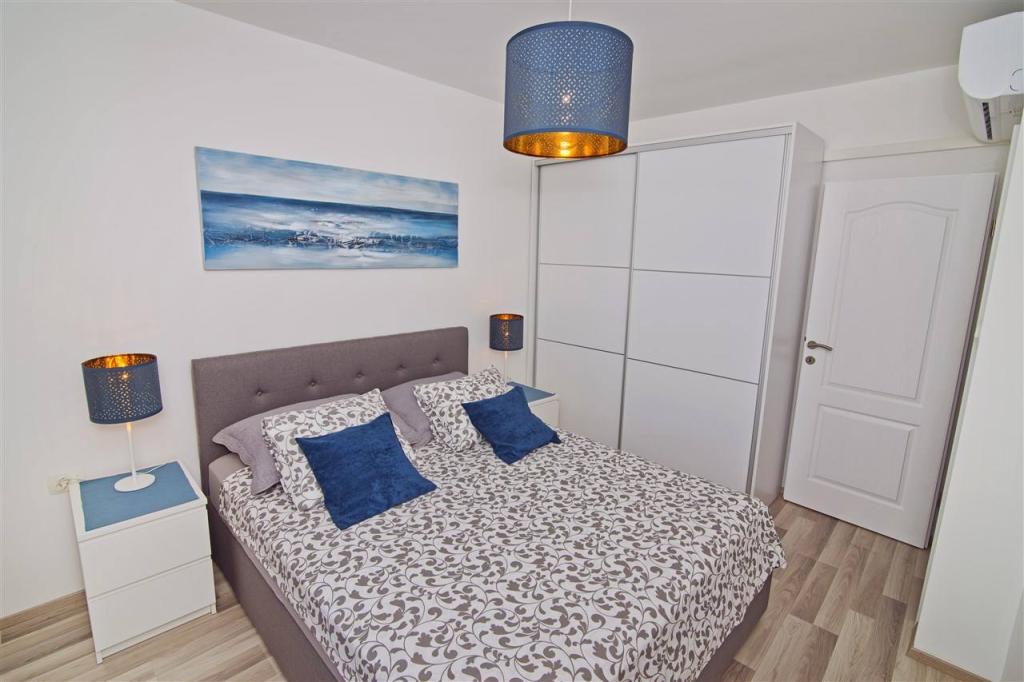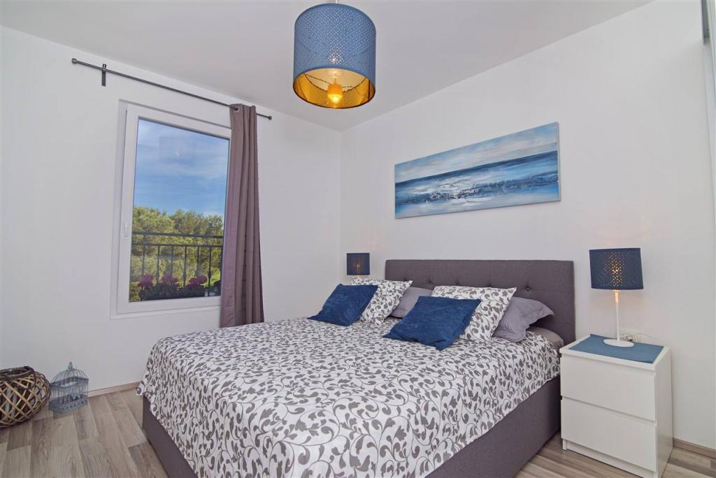 Ne aflăm pe partea continentală a podului, chiar lângă plaja Jazine. Facilitatea noastra contine 2 apartamente, fiecare cu 3 dormitoare, complet echipate cu o priveliste minunata la mare. Acestea conțin toate echipamentele necesare, precum și lenjerie de pat și prosoape. Apartamentele sunt dotate cu aer condiționat, parcare gratuită și Wi-Fi. Pe lângă apartament, este posibilă asigurarea unui acostare pentru o barcă pe o geamandură, fără taxă suplimentară.În fața apartamentului există o mică faldă pentru înot, potrivită pentru copiii mai mici, în timp ce plaja principală a Jazinei este o 5 minute de mers pe jos. Apartamentele sunt situate intr-un cartier linistit, fara zgomot, si sunt potrivite pentru o vacanta in familie.