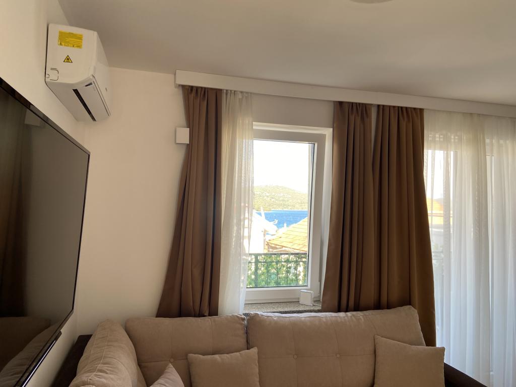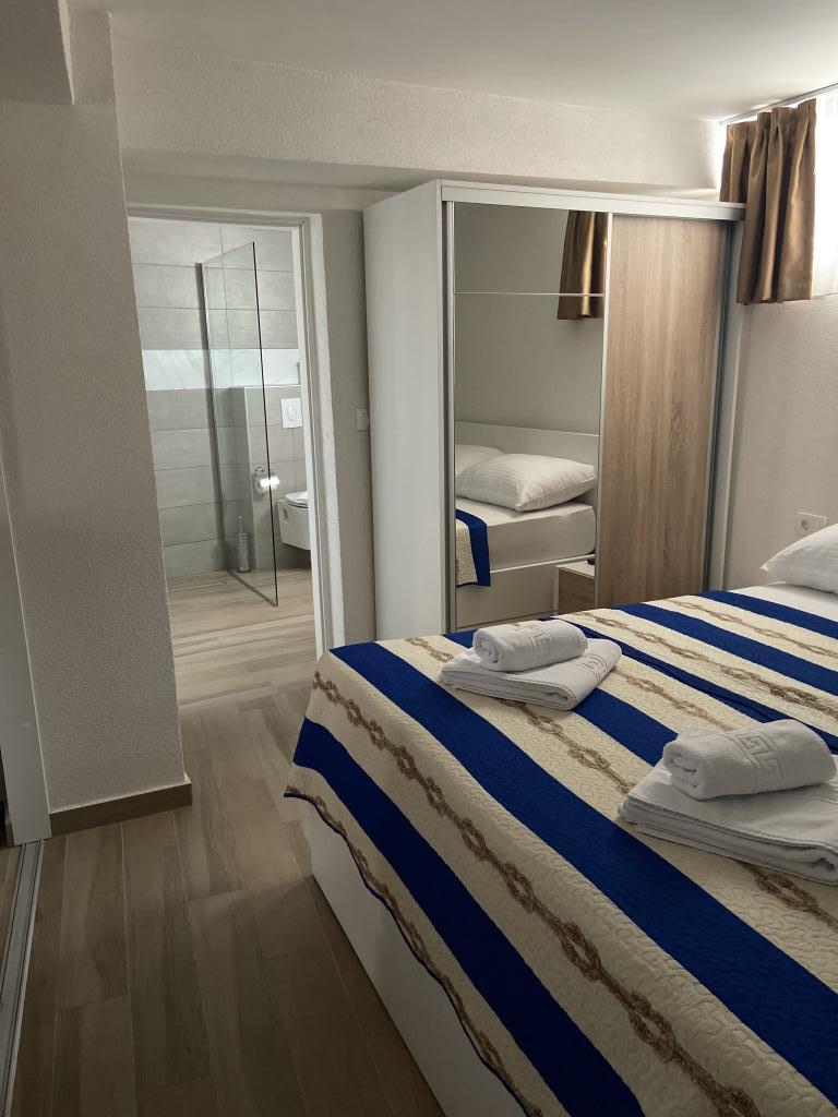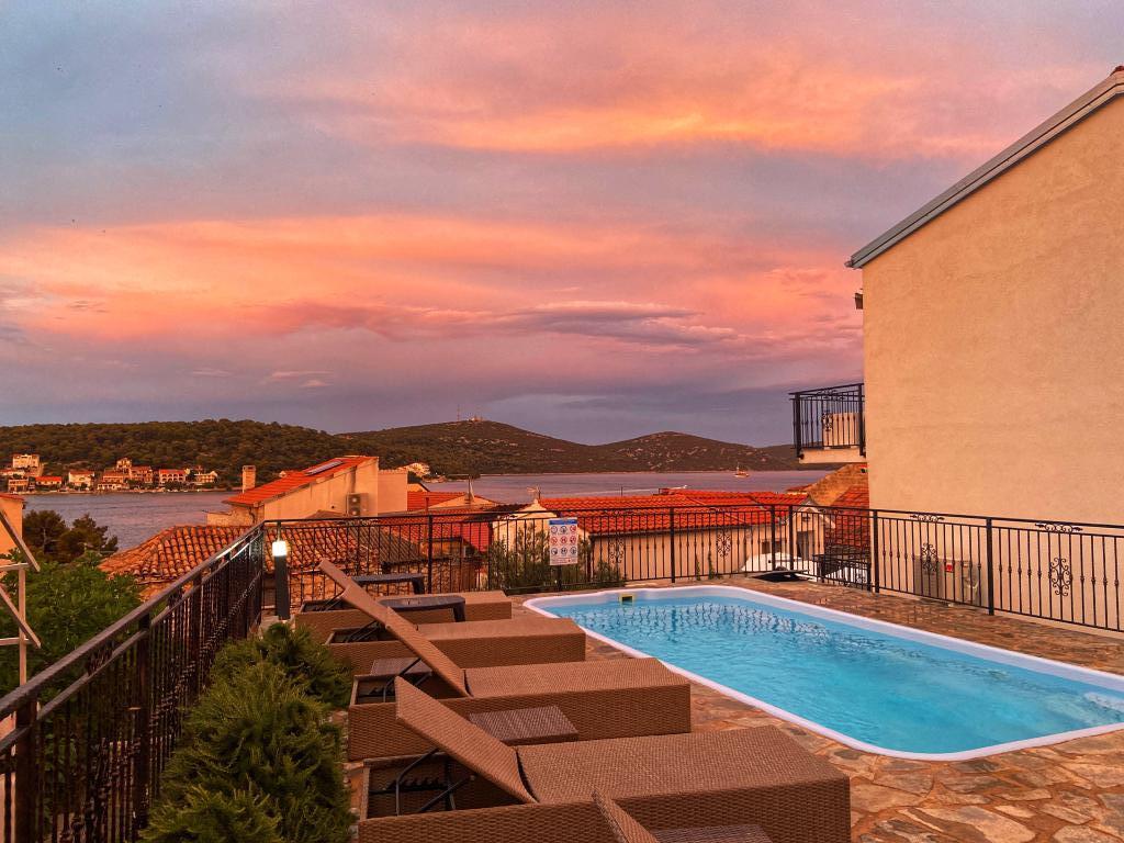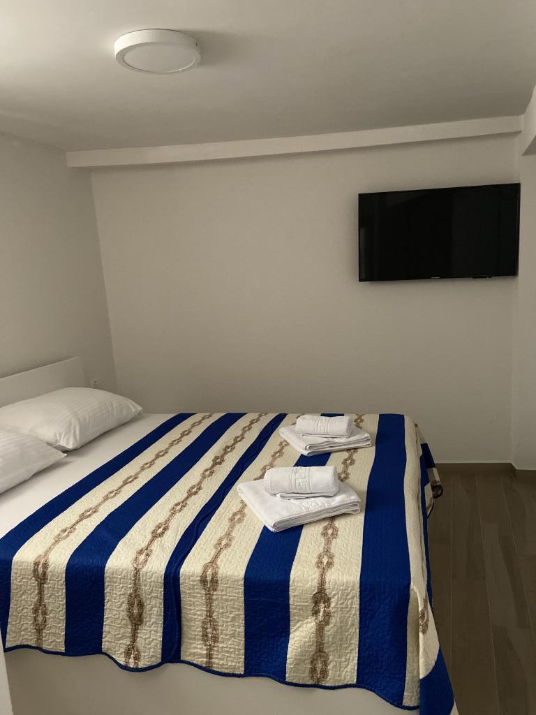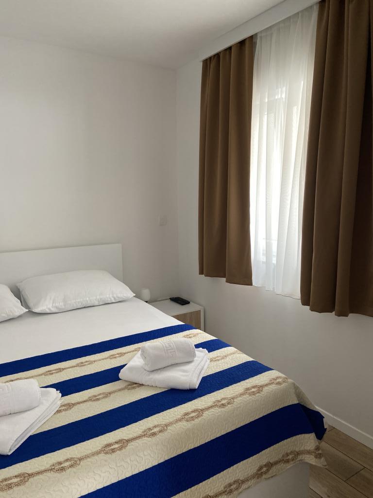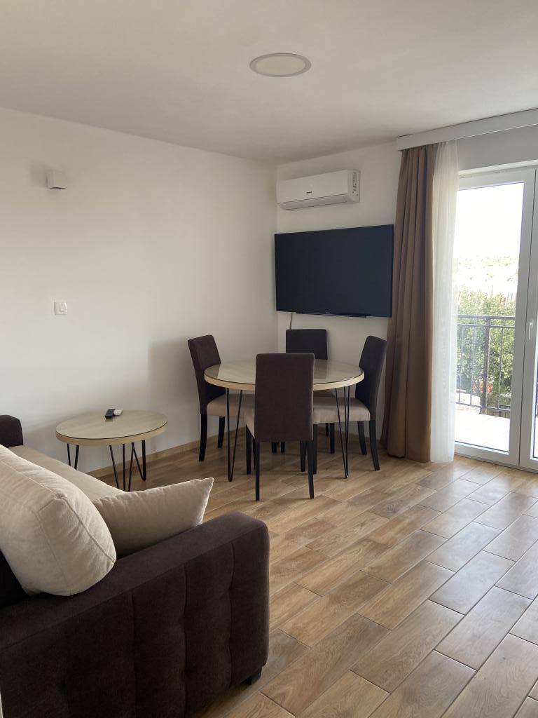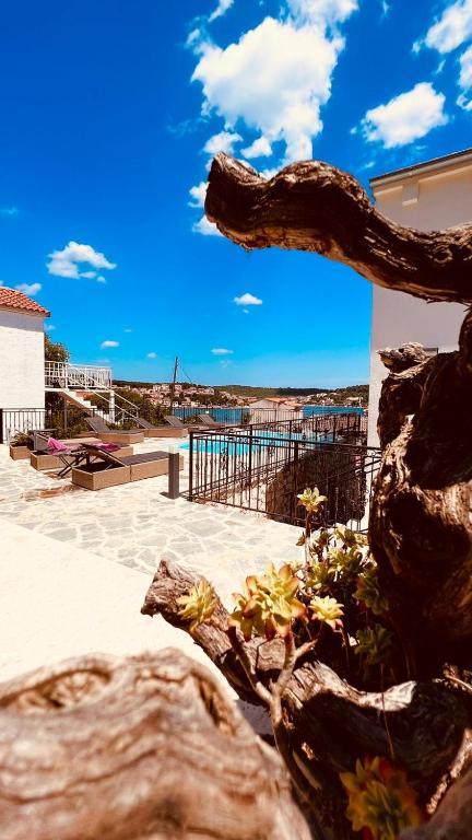 Stațiunea Tisno este situată în partea insulă a orașului, în imediata vecinătate a mării și a plajelor, precum și a drumurilor forestiere și poteci care duc spre locurile din jur, din care există o vedere unică a Parcului Național Kornate. Lângă Stațiune, există o potecă de piatră care duce la frumoasa biserică veche de piatră a Maicii Domnului din Karavaj. Stațiunea are patru stele, ceea ce o diferențiază de majoritatea celorlalte unități de cazare chiar de la început și asigură astfel lux și intimitate oaspeților săi. Oferă 6 apartamente separate, câte 2 la fiecare etaj. Fiecare apartament poate găzdui 4 persoane (un dormitor cu pat dublu, și două dormitoare suplimentare cu cele mai moderne saltele din spumă cu memorie) și are un dormitor, baie, bucătărie și living. Apartamentele sunt dotate cu echipamente audio si TV noi si moderne, WiFi, mobilier si aer conditionat. Fiecare dintre apartamente are acces la un balcon și acces la o terasă comună la parter. Zona exterioară a Stațiunii oferă un grătar, o bucătărie comună în aer liber, o piscină și dușuri.