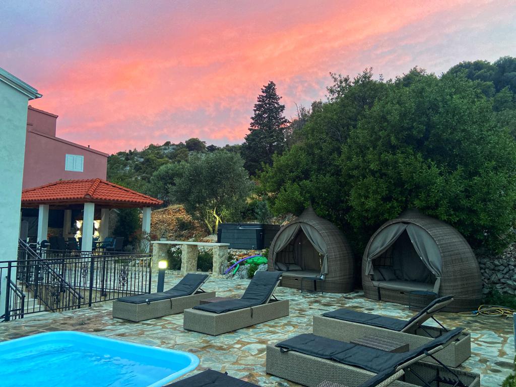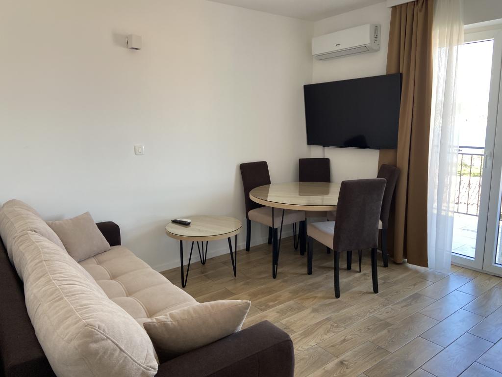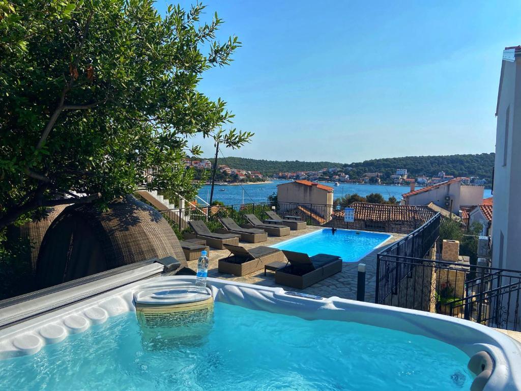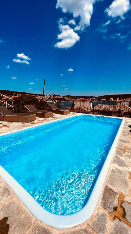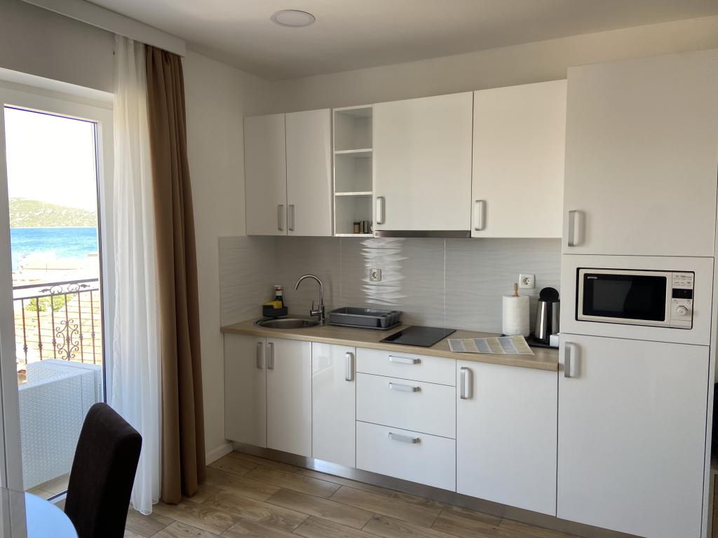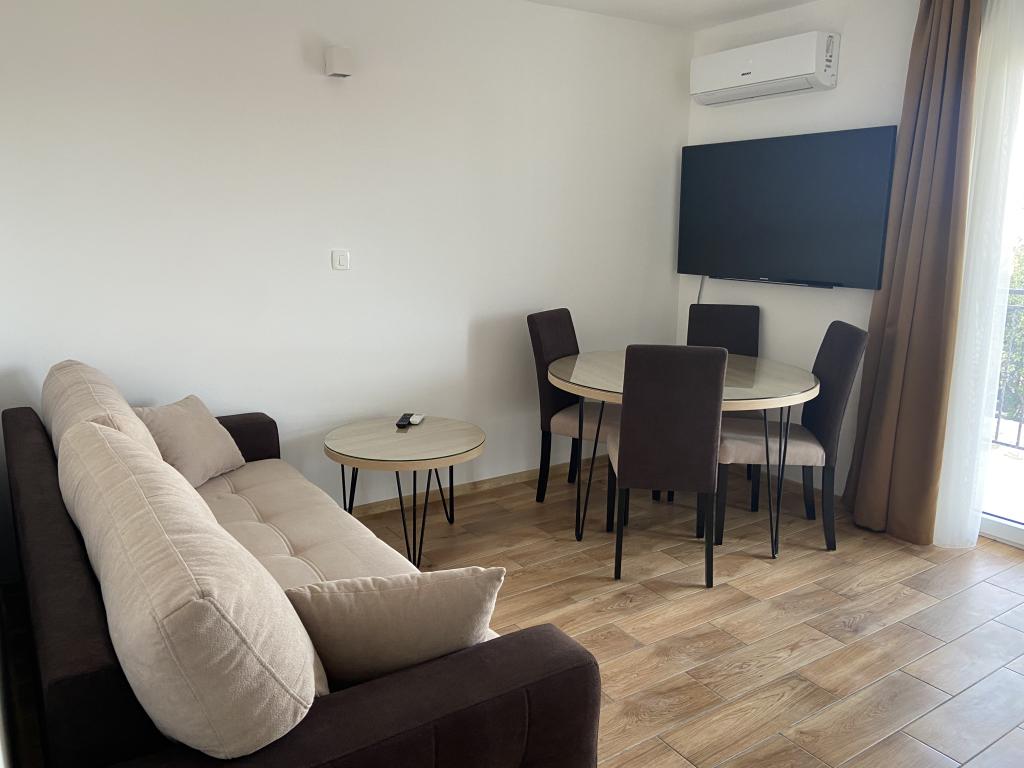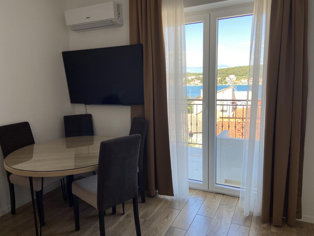 Stațiunea Tisno este situată în partea insulă a orașului, în imediata vecinătate a mării și a plajelor, precum și a drumurilor forestiere și poteci care duc spre locurile din jur, din care există o vedere unică a Parcului Național Kornate. Lângă Stațiune, există o potecă de piatră care duce la frumoasa biserică veche de piatră a Maicii Domnului din Karavaj. Stațiunea are patru stele, ceea ce o diferențiază de majoritatea celorlalte unități de cazare chiar de la început și asigură astfel lux și intimitate oaspeților săi. Oferă 6 apartamente separate, câte 2 la fiecare etaj. Fiecare apartament poate găzdui 4 persoane (un dormitor cu pat dublu, și două dormitoare suplimentare cu cele mai moderne saltele din spumă cu memorie) și are un dormitor, baie, bucătărie și living. Apartamentele sunt dotate cu echipamente audio si TV noi si moderne, WiFi, mobilier si aer conditionat. Fiecare dintre apartamente are acces la un balcon și acces la o terasă comună la parter. Zona exterioară a Stațiunii oferă un grătar, o bucătărie comună în aer liber, o piscină și dușuri.