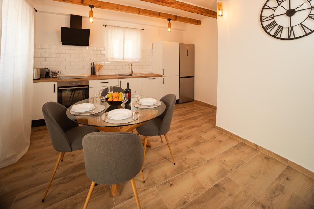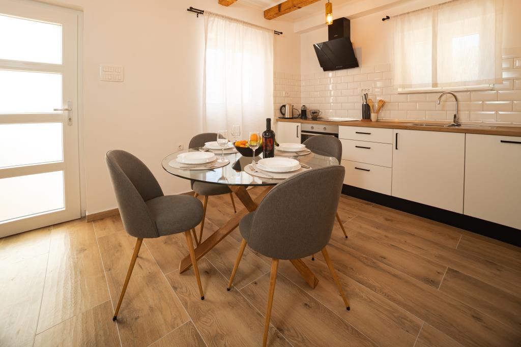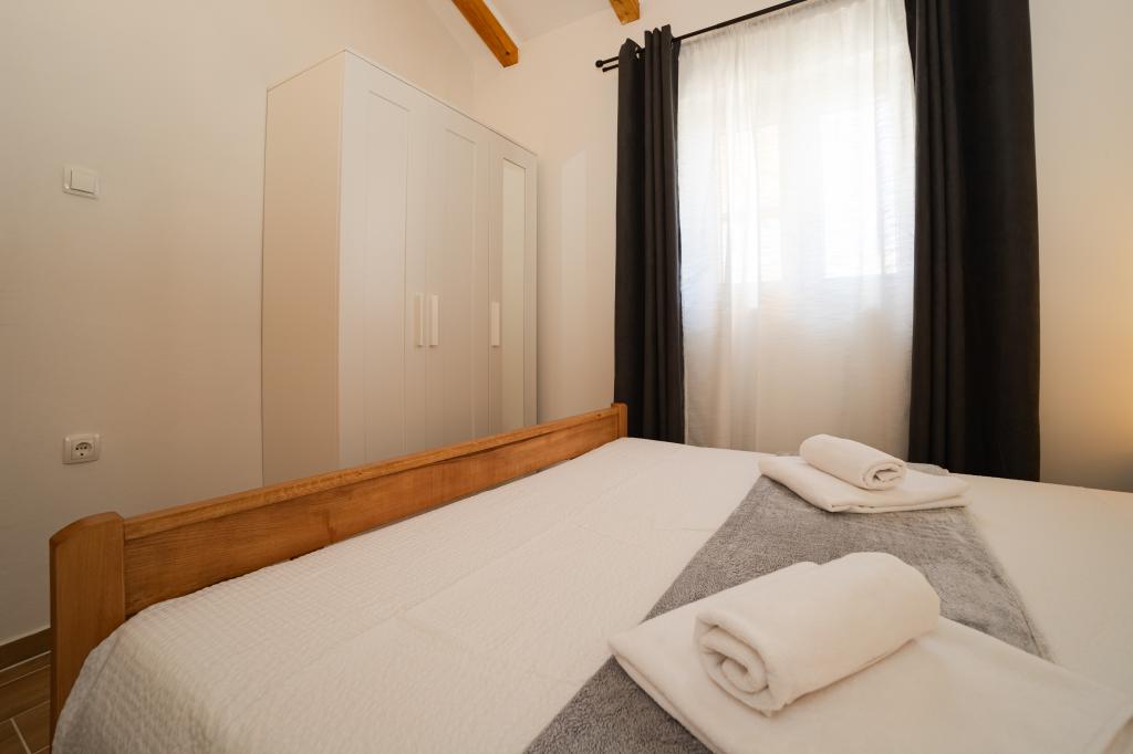 Casă renovată în centrul orașului, la un pas de mare și plajă, cu două etaje. La parter se află o bucătărie complet utilată, living și toaletă, la primul etaj sunt două dormitoare și o baie. Parter și primul etaj sunt dotate cu aer condiționat. Grădină mare în cazul în care aveți biciclete, canoe etc., există spațiu pentru depozitarea acestora și parcare privată (potrivită și pentru vehicule mai mari). Terasă împrejmuită (pentru siguranța copiilor și a animalelor de companie) cu grătar pe gaz. Casa este situată de-a lungul drumului principal din oraș. Posibilitatea de a organiza un loc de acostare pentru bărci. POSIBILITATEA DE ÎNCHIRIERE LUNARĂ ÎN PRE-SEZON ȘI POST-SEZON, PENTRU MAI MULTE INFORMAȚII CONTACTAȚI-NE.