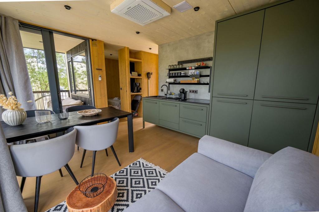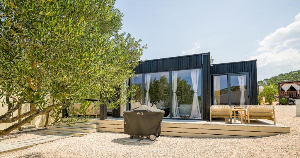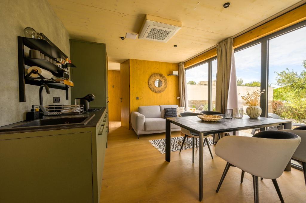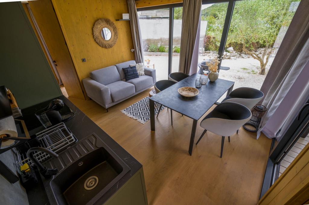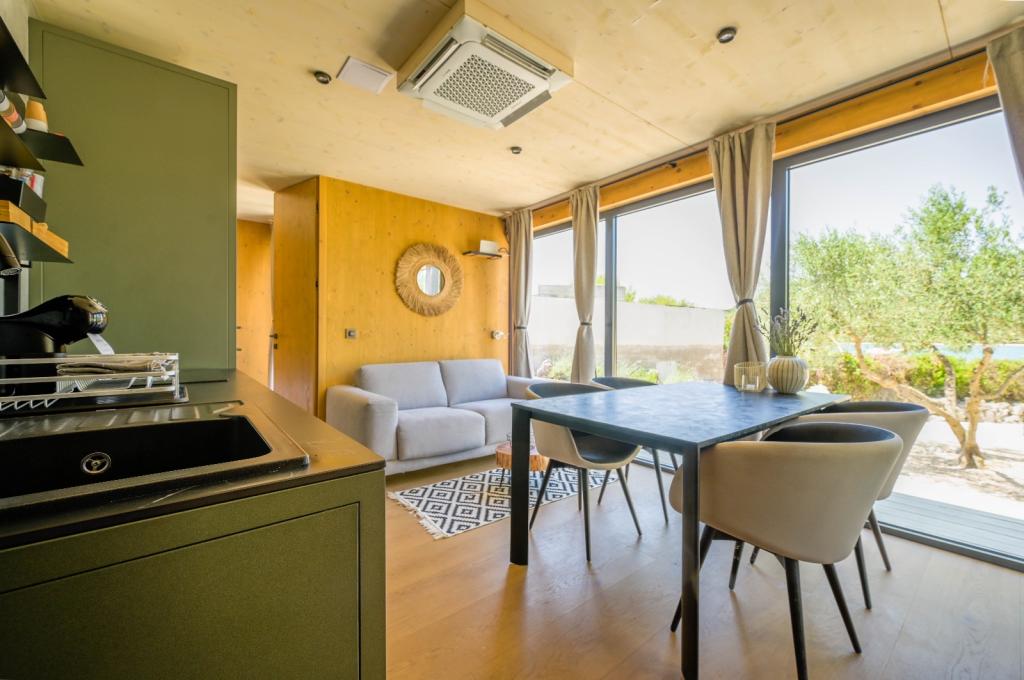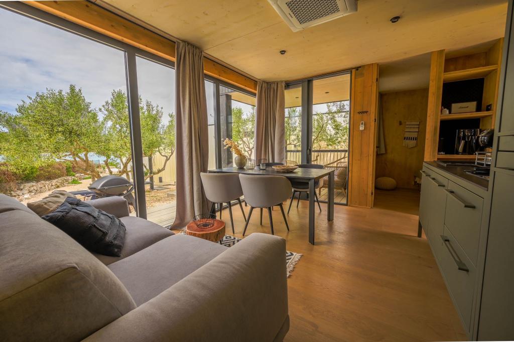 Rulota se află la doar câțiva pași de mare. Interiorul modern al apartamentului îmbină elementele tipice din Dalmația. Înconjurat de pietricele albe și măslini verzi, iar în fața ta este doar un albastru nesfârșit. Marea, soarele și vântul creează un joc de nedescris care încântă toate simțurile. Indiferent dacă dormiți într-unul dintre cele două dormitoare, vă puteți bucura de albastrul mării și de strălucirea soarelui dimineața. Iar din bucătăria complet utilată, cu tot ce ai nevoie (inclusiv mașină de spălat vase și congelator) și masa spațioasă, se deschid o priveliște de nedescris asupra terasei și a tuturor farmecelor pe care le oferă soarele și marea. Indiferent dacă pregătiți o masă în bucătărie sau faceți grătar pe terasă, aveți garanția liniștii și intimității depline. Scopul fiecărei vacanțe este să lași în urmă viața de zi cu zi și rutina, iar exact asta oferă unitatea noastră. Deși înconjurat de 8 clădiri similare, te vei bucura de intimitate și liniște deplină, deoarece toată lumea te susține. Singura limită din fața ta este cerul și marea.