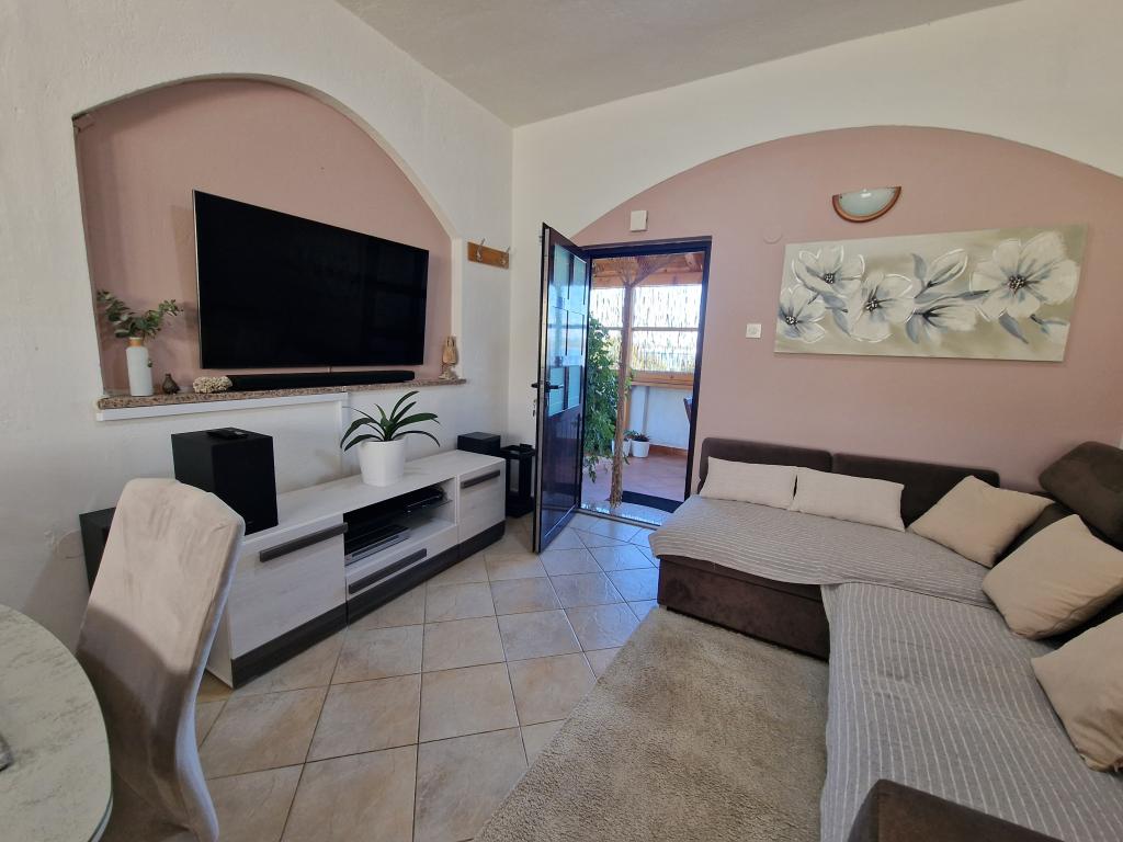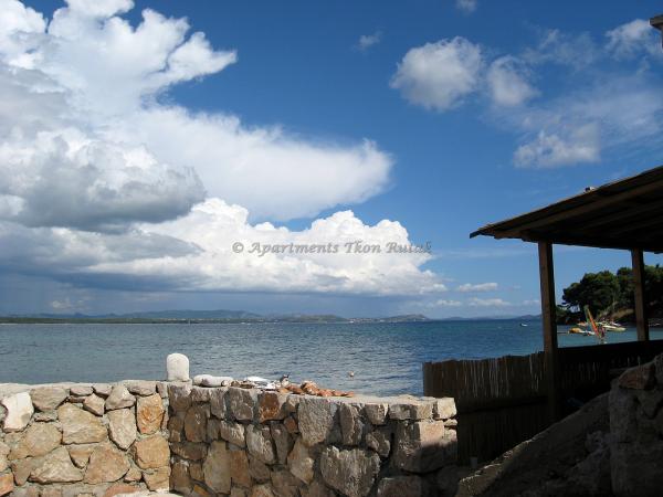 Apartamentele moderne de la 20 de metri de plaja de nisip și mare, pe insula Pasman! Cosy, spațioasă și nici un zgomot. Parcare în umbră, internet wireless și aer inclus. Apartament Tkon Rutak I (A4) are capacitatea de a găzdui cost persoane 5-a.