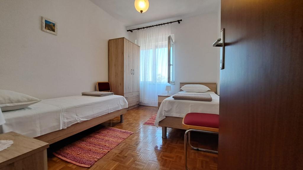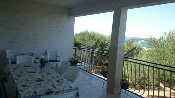 Casa este situata la doar 5 minute de mers pe jos de plaje si centru. Este înconjurat de măslini și ascuns de vederea trecătorilor. Parcarea este asigurata in fata casei. Este posibil să utilizați grătarul de exterior. Apartamentul mai mare 1/4 1 este la primul etaj al casei. De pe terasa frumoasă și spațioasă, există o vedere minunată asupra mării și orașului Biograd. Apartamentul este curat, confortabil și complet echipat pentru un sejur.