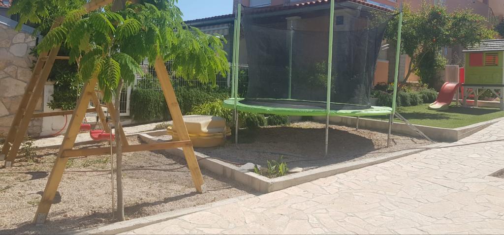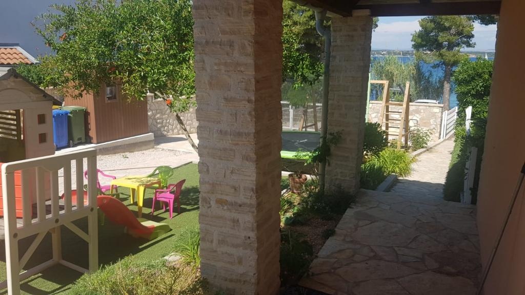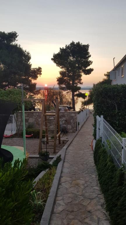 Bine ati venit in casa noastra! Apartamentele Ori sunt situate în Tkon, pe insula dalmată Pasman. În apartamentele complet echipate modern, vizitatorii noștri beneficiază de pace și liniște (cu excepția greierilor, desigur). Viziunea noastră este de a oferi oaspeților ceea ce am dori să obținem noi înșine. Toate camerele au aer condiționat, iar bucătăriile sunt echipate cu toate aparatele necesare pentru un sejur confortabil. De asemenea, oaspeții au la dispoziție un grătar în aer liber cu o masă sub baldachin, iar pentru copii o trambulină mare, o casă de joacă cu numeroase jucării pe gazon artificial și un leagăn și loc de nisip în curte. Facilitatea este situată pe un teren spațios de aproape 1000 m3 și fiecare apartament are o intrare separată de spațiul deschis acoperit care permite intimitate și distanță de siguranță pentru toți cei care doresc. În fața casei este o mică plajă, iar în imediata vecinătate se află alte plaje cu nisip, dintre care mai multe sunt pe ambele părți ale casei. Distanța de la ușa curții până la mare este de 5 metri. Pentru detalii: www. apartments-tkon-ori. com