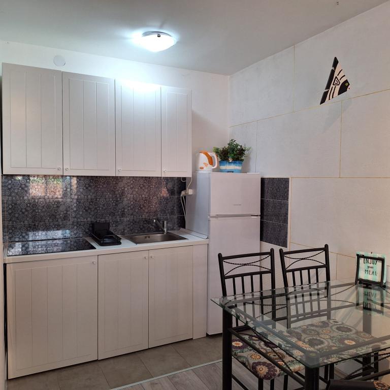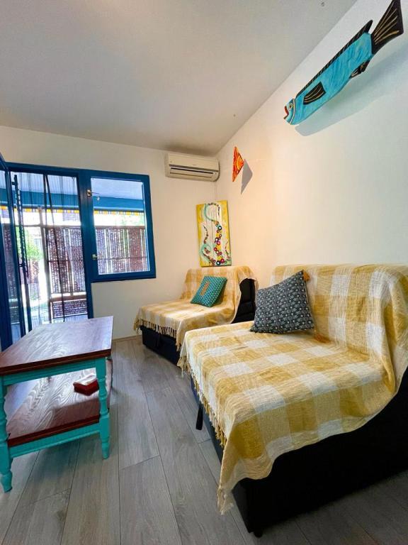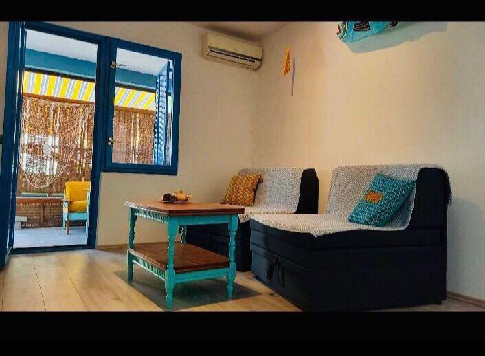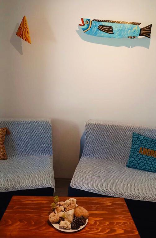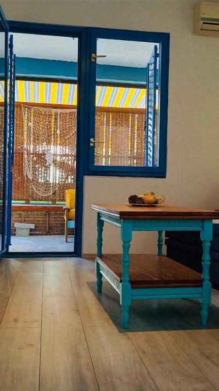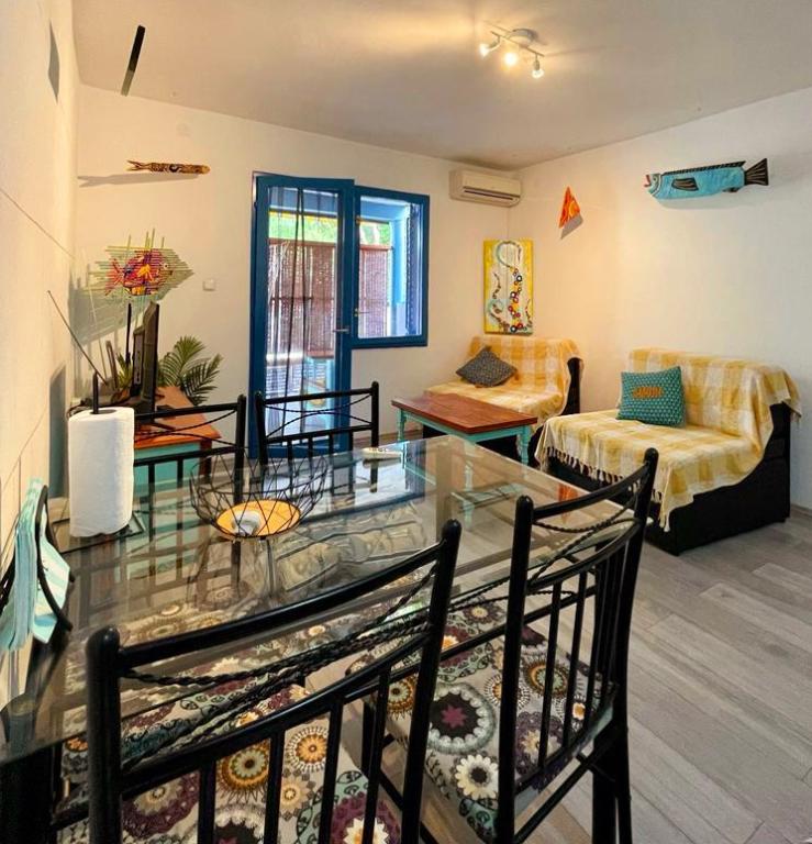 Pe langa faptul ca te afli intr-un colt ascuns si linistit al unui mic sat de pescari frumos, cand treci pragul vei fi intampinat de un decor neobisnuit si un sentiment de joaca care iti va face sejurul cu adevarat de neuitat. Navigați în vacanță cu pești jucăuși colorați care navighează din cameră în cameră, iar fiecare piesă de mobilier are propria poveste. De la fereastra dormitorului poți vedea și mirosi copacii de lauri. Din living, unde sunt paturi suplimentare confortabile, poți ieși pe terasa unde vei avea o intimitate deplină. În timp ce aerul condiționat te răcorește, pornește într-o aventură culinară în bucătăria complet utilată. Puteți să socializați și să luați masa pe terasa în aer liber la umbra groasă. Desigur, animalul tău de companie de tablă are un loc garantat, chiar lângă apartamentul nostru nou mobilat.