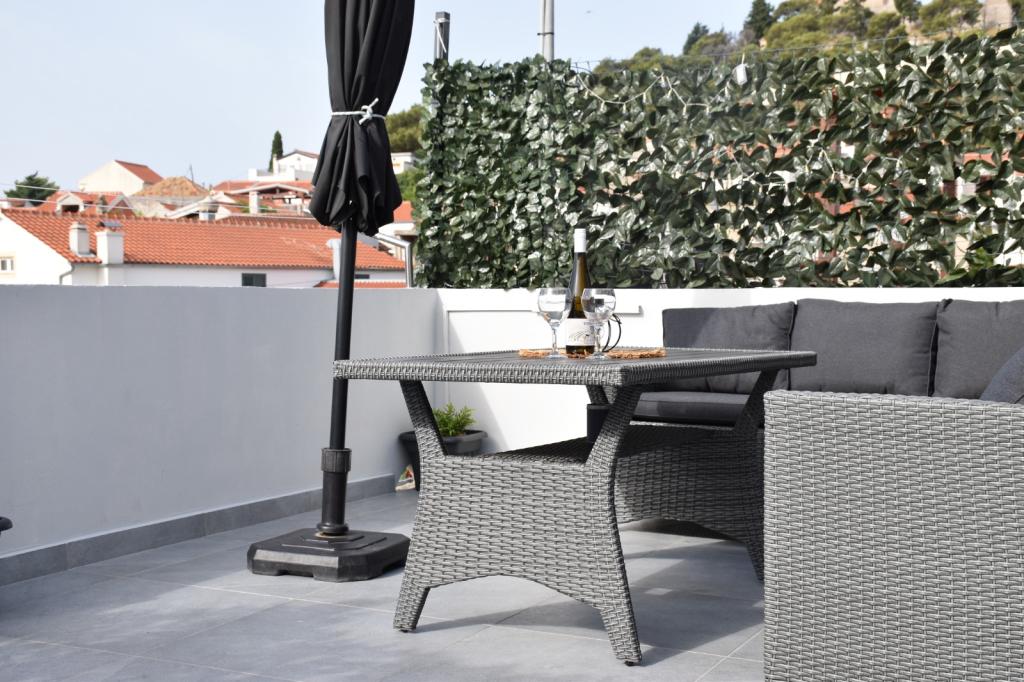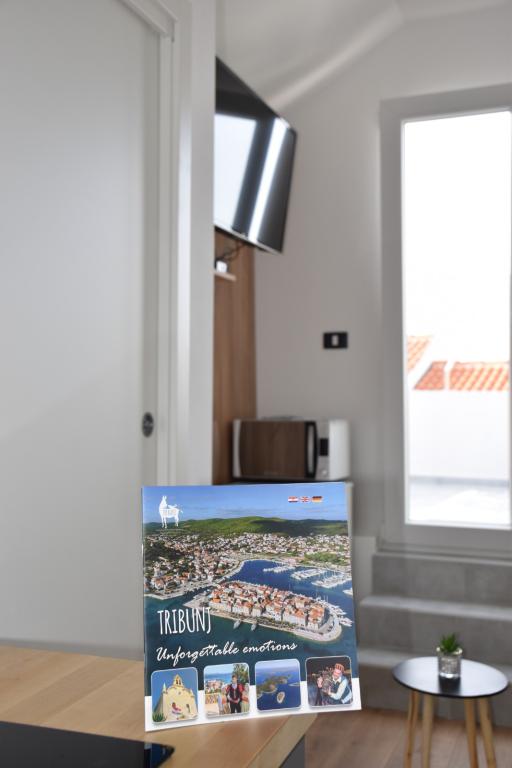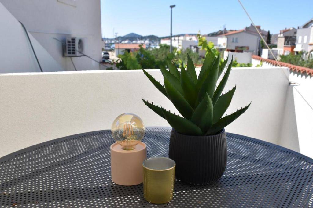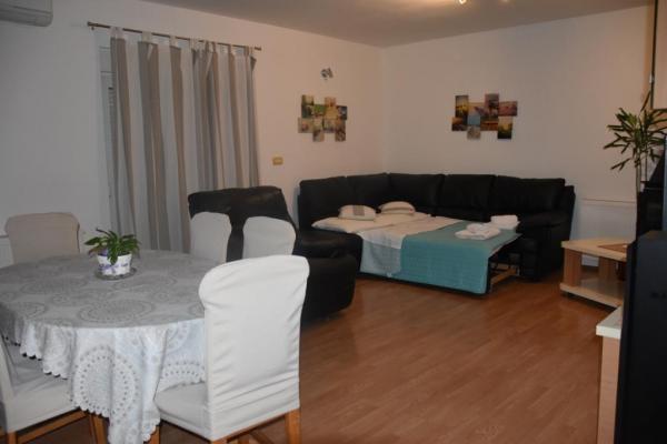 Apartament oferă cazare într-o zonă liniștită din Tribunj, înconjurat de verdeață și plantații de măslini. Strada este cu sens unic și are puțin trafic. Apartamentul este cu aer condiționat, are două dormitoare și un pat ploconi în camera de zi, bucatarie complet utilata (masina de spalat vase, cuptor cu microunde, cuptor, ceainic, filtru de cafea, blender ..) 2 bai (duș și cadă) spălare pentru produse, uscare, protecție pentru țânțari în toate camerele, TV în dormitor și camera de zi, Wi-Fi gratuit, TV prin satelit. Apartamentul este cu aer condiționat. Există masă de călcat și fier de călcat. Apartamentul include doua terase spatioase pentru odihna, gratar si 2 locuri de parcare.