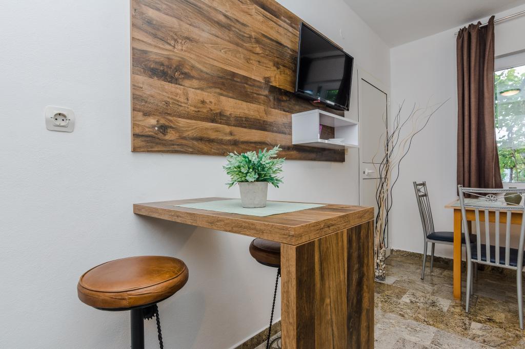 Apartamentele sunt situate în micul sat pescăresc Tribunj. La o scurtă și ușoară plimbare de la casă până la piață, puteți cumpăra pește proaspăt, fructe și legume de sezon în fiecare zi. O grădină mare cu piscină și facilități suplimentare vă vor face vacanța plăcută. Excursii cu barca către Parcul Național Kornati sunt organizate din Tribunj.