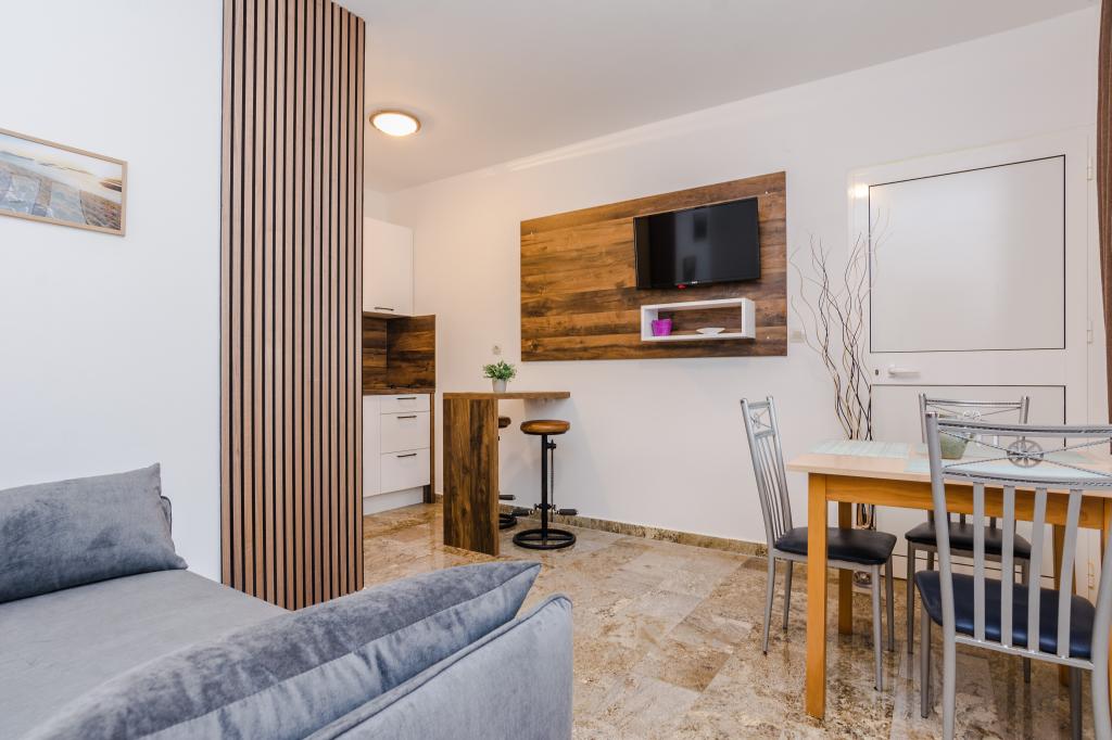 Citește mai mult Unități de cazarePlata se face exclusiv în numerar, imediat la sosire. Un avans de 20% din suma totală se plătește per rezervare și reprezintă, de asemenea, o garanție a rezervării. Pentru rezervările de scurtă durată, se plătește suma integrală. Plata în avans se face prin tranzacție bancară, datele fiind transmise prin acord. Taxa de ședere este inclusă în preț, dintre taxele suplimentare se percepe doar curățenia pentru sejurul total per rezervare, în valoare de 40 EUR. Check-in-ul se face de la ora 14:00, iar check-out-ul se face până la ora 10:00. Vă rugăm să specificați ora sosirii în rezervare, astfel încât cineva să vă poată întâmpina sau să vă ofere indicații. Reguli ale casei: animalele de companie nu sunt permise, petrecerile sunt interzise, programul piscinei este 08:00-20:00, ora 23:00-08:00, liniște, fumatul nu este permis în apartament.