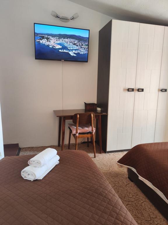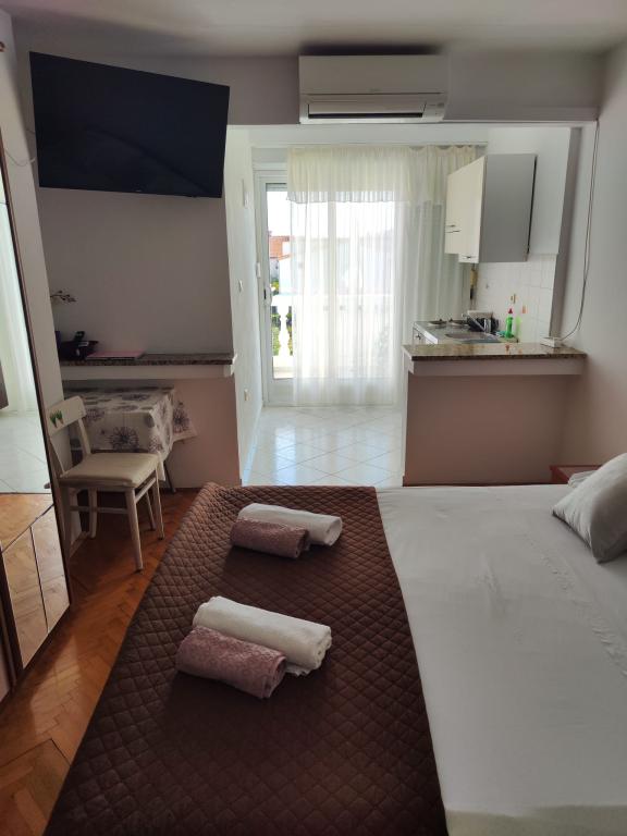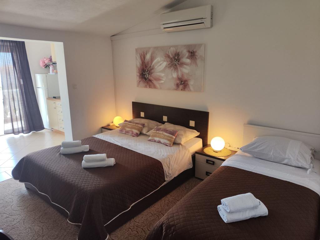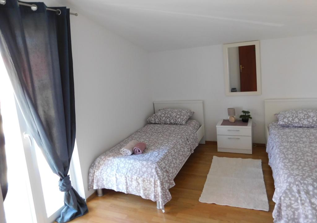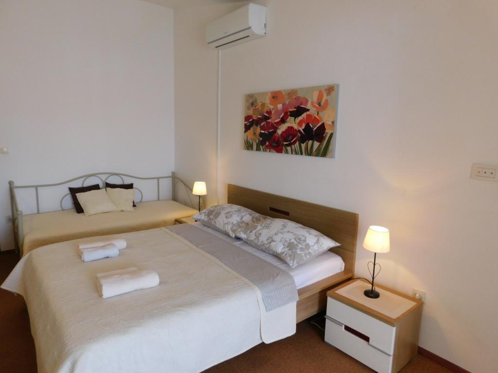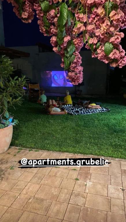 Apartamentele/OPG Grubelić includ două case separate situate una lângă cealaltă. Sunt situate in apropierea tuturor facilitatilor importante (magazin, plaja, centrul orasului) si sunt ideale pentru o vacanta in familie. Casele sunt împărțite prin intrarea în curte cu o parcare mare, gratuită, pentru 6-9 vehicule, precum și o grădină amenajată cu grătar și o terasă închisă care poate fi folosită de oaspeții din ambele unități de cazare. Obiectul 1 se inchiriaza integral unui grup si este format din doua dormitoare cu aer conditionat, dintre care unul are chicineta, baie proprie si iesire pe terasa. Un Smart TV este instalat în a doua cameră. Apartamentul are o bucătărie mare, complet utilată și un living cu aer condiționat, două canapele extensibile și un televizor. Obiectul 2 este format din mai multe garsoniere si apartamente cu doua dormitoare. Toate apartamentele au balcon care este ferit de soare (excepția este apartamentul A2, care nu are acces la balcon). Facilitatile sunt situate la 2 minute de mers pe jos de primul magazin, si la 5-10 minute pana la plaja/centru.