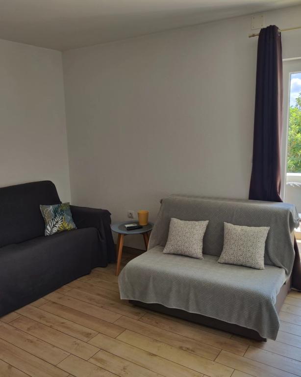 Proprietarii sunt primitori, amabili, accesibili. Ne-au oferit limonadă când am ajuns.Apartamentul este curat, ordonat, potrivit pentru 2 persoane. Lenjerie de pat curată, prosoape curate și baie curată. Apartamentul este acoperit cu viță de vie pentru umbră, și are o terasă separată (uşă specială din lemn), astfel intimitatea este excelentă. Plodine, Ultra și Konzum sunt la doar 5-10 minute de mers pe jos. Pe drumul spre Plodin, există Ultra, care se află la 2 minute de mers pe jos. Centrul orașului este, de asemenea, la doar 5 minute de mers pe jos, precum și plajele, care sunt frumos decorate. Era liniște în apartament, nimeni nu făcea zgomot și deranjamente și este un loc cu adevărat grozav de odihnă. Una peste alta, un apartament incredibil de bun cu proprietari și mai buni. 10/10