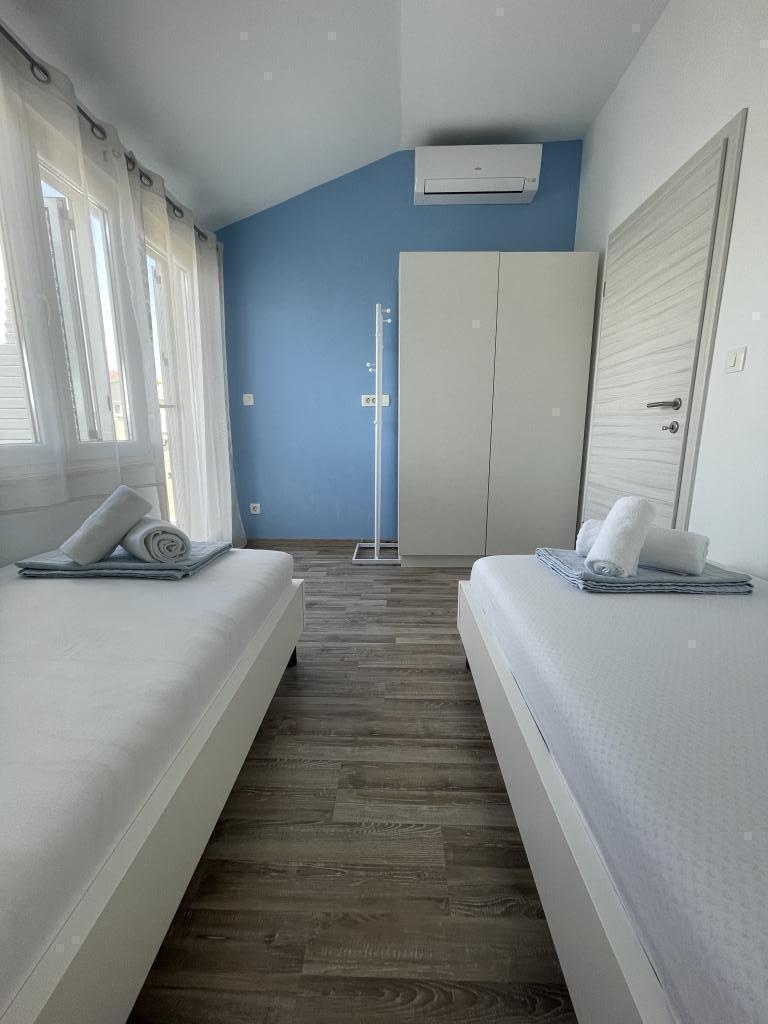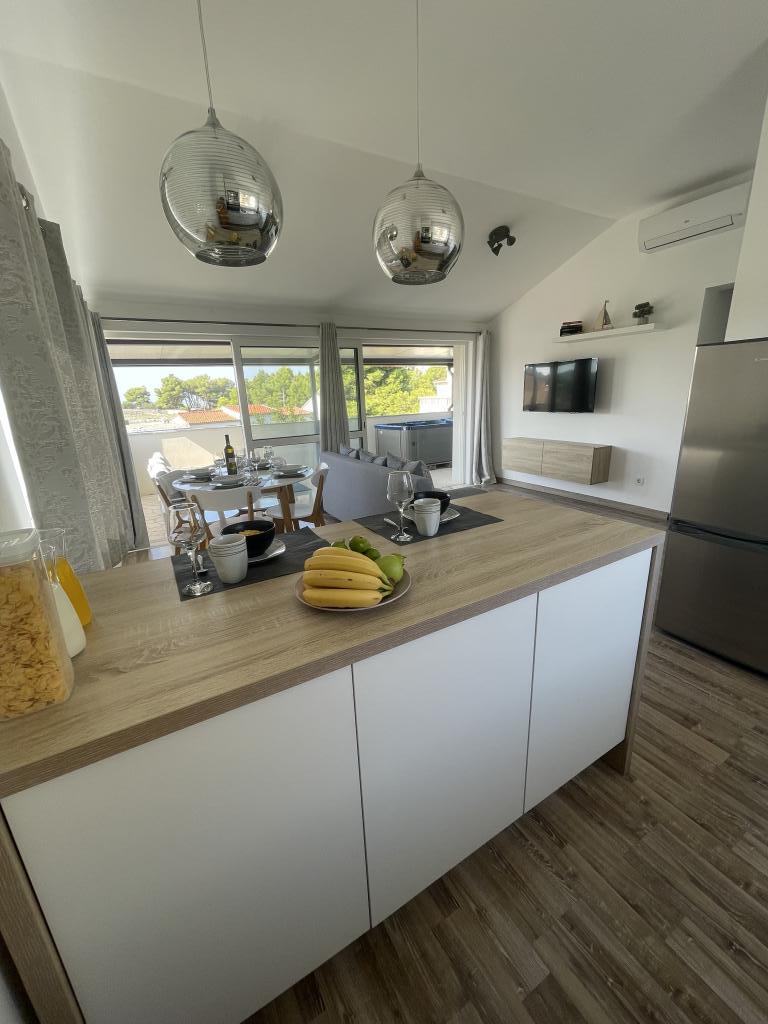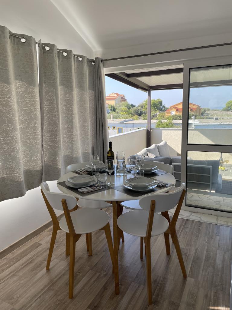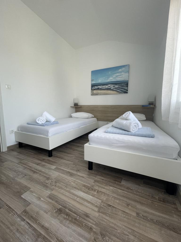 Apartamente complet utilate și modern, într-o zonă liniștită, situate la doar 300m de plajă, cu numeroase facilități. Apartamentele sunt situate la etajul al doilea al unei case de familie, în curtea împrejmuită vă puteți bucura de o zonă acoperită pentru socializare, cu o bucătărie de vară și grătar. Parcarea privată se află în fața curții. La 50m de casă se află o stație de autobuz, iar la 200m de casă se află primul magazin. Centrul orașului este la 800m distanță, putând fi accesat pe șosea sau pe promenada care se întinde de-a lungul mării. Iubim animalele, dar nu le acceptăm.
