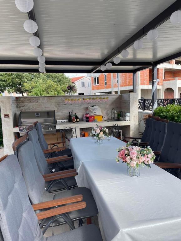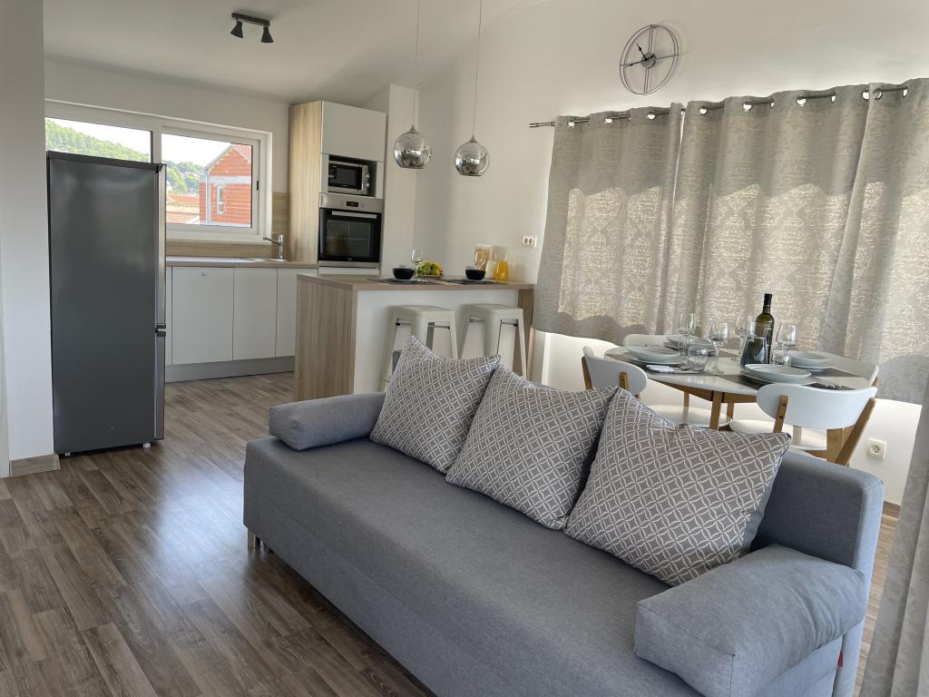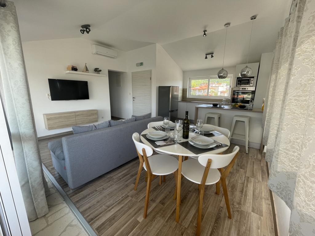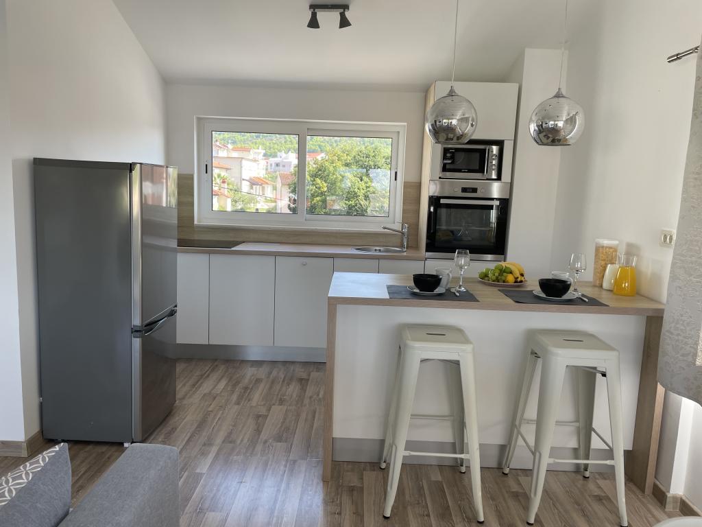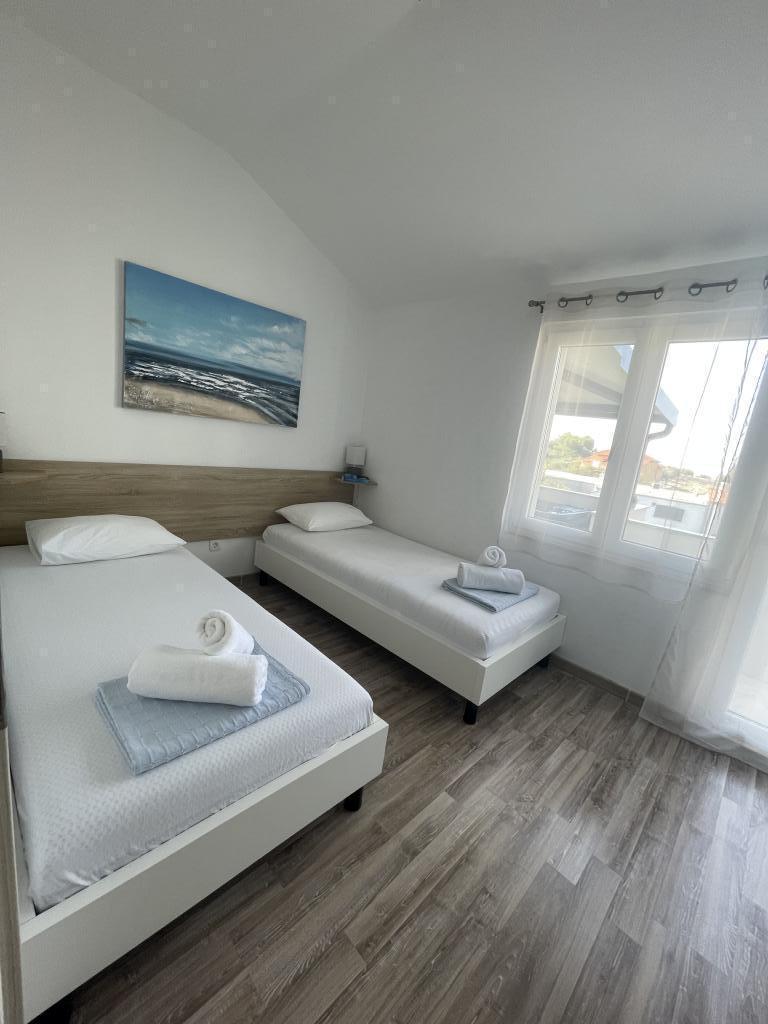 Apartamente complet utilate și modern, într-o zonă liniștită, situate la doar 300m de plajă, cu numeroase facilități. Apartamentele sunt situate la etajul al doilea al unei case de familie, în curtea împrejmuită vă puteți bucura de o zonă acoperită pentru socializare, cu o bucătărie de vară și grătar. Parcarea privată se află în fața curții. La 50m de casă se află o stație de autobuz, iar la 200m de casă se află primul magazin. Centrul orașului este la 800m distanță, putând fi accesat pe șosea sau pe promenada care se întinde de-a lungul mării. Iubim animalele, dar nu le acceptăm.