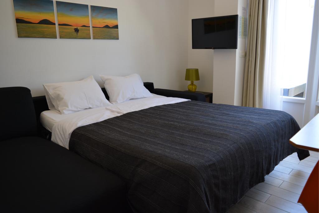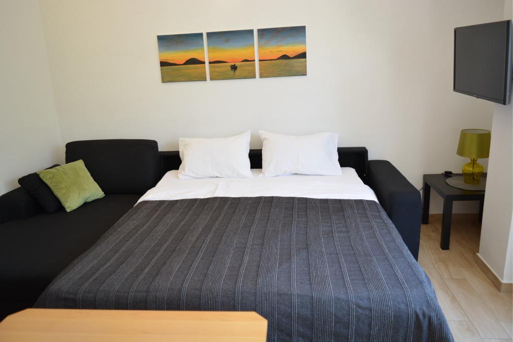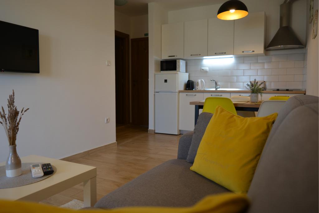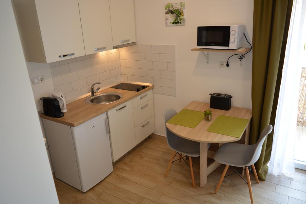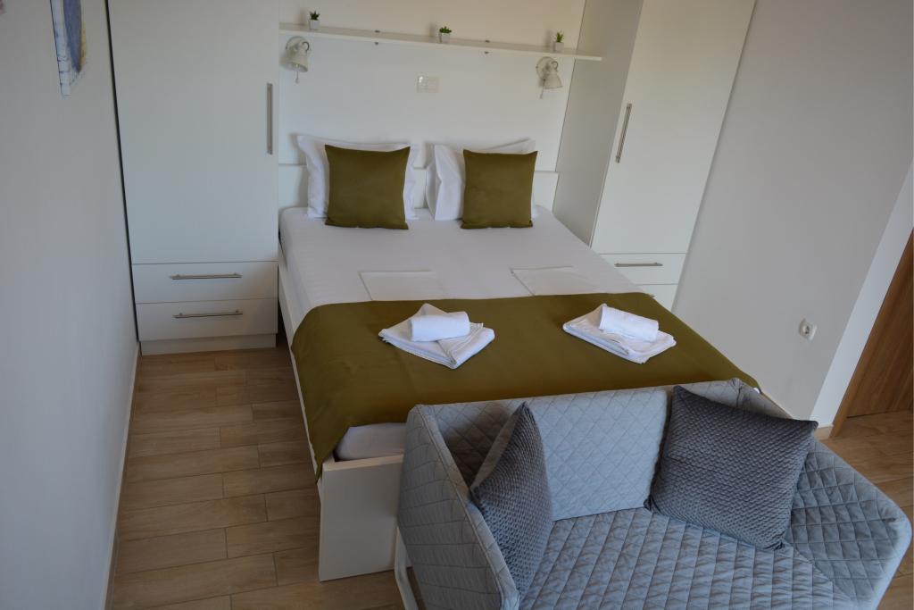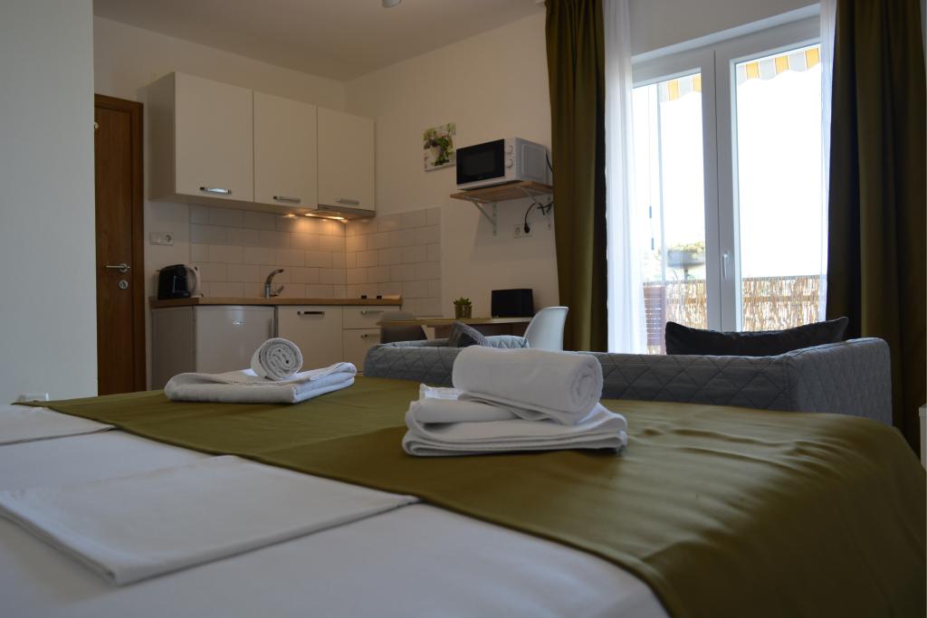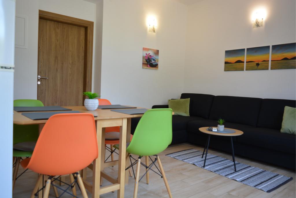 4 apartamente complet recent renovate de închiriat în Tribunj, la 5 km de Vodice și la 12 km de Šibenik. Apartamentele sunt situate într-o locație atractivă la doar 150 m de plaja principală a orașului. In imediata apropiere a apartamentului se afla restaurante, cafenele, magazine si o farmacie. 3 apartamente (2+2) constau dintr-un dormitor cu un pat dublu mare, o bucatarie, un living cu o canapea extensibila (canapea de calitate cu saltea), o baie si un balcon cu vedere la mare. Garsoniera este destinata pentru doua persoane. Are o bucătărie, un pat dublu, o baie și un balcon cu vedere la mare. Toate apartamentele sunt dotate cu aer condiționat, uscător de păr, smart TV și Wi-Fi gratuit. Parcare securizata in fata apartamentului.