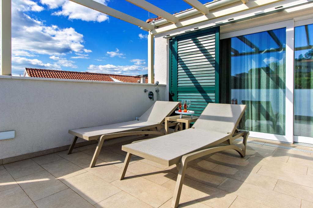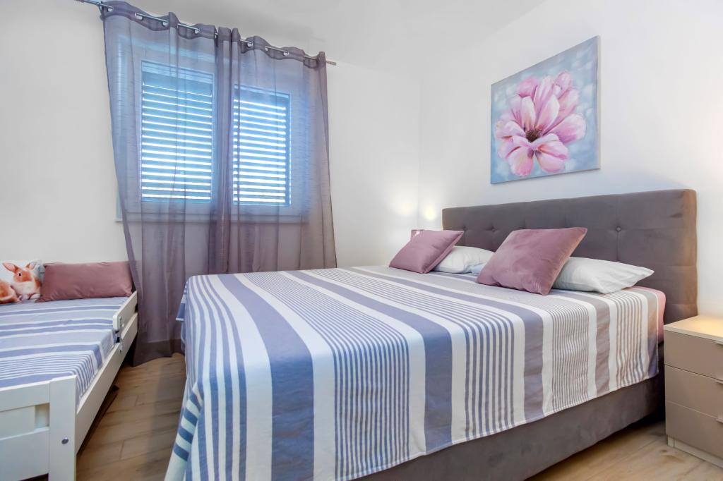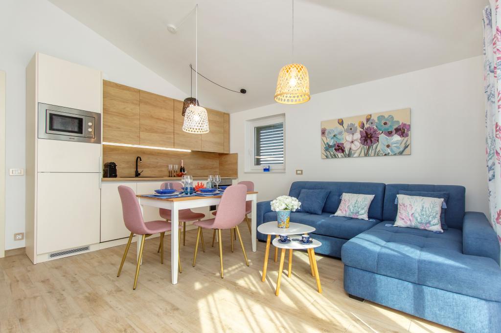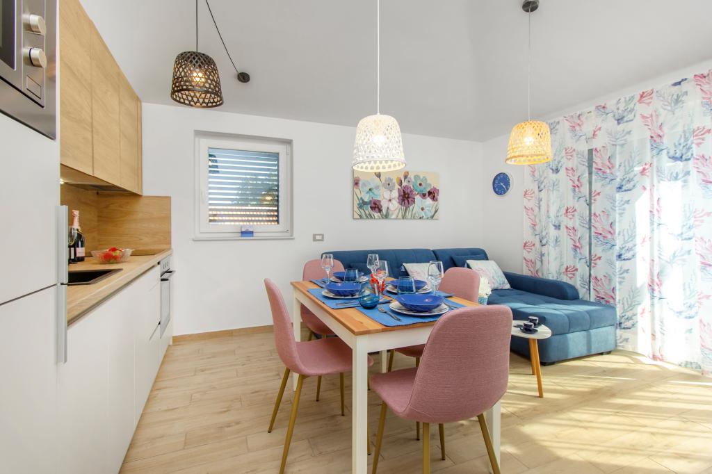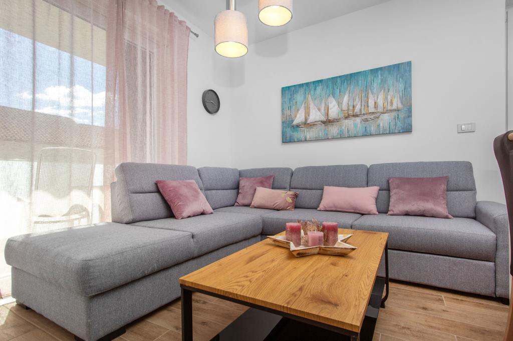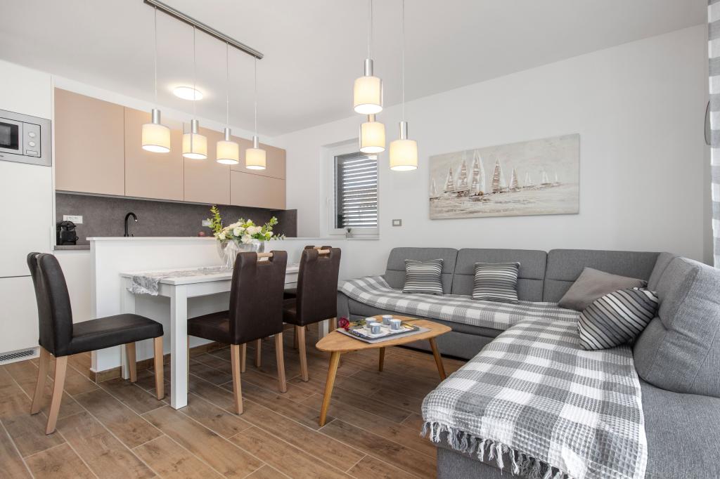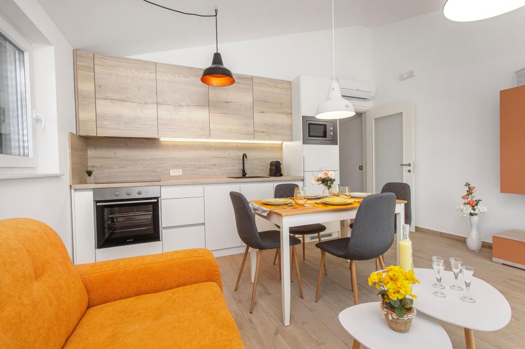 Facilitatea Three Olives este o clădire nouă și își deschide porțile oaspeților pentru prima dată din vara anului 2024. În curtea clădirii se află trei măslini bătrâni, lemn atât de tipic pentru coasta și insulele croate, din ale căror fructe se obține ulei de cea mai bună calitate, numit adesea „aur lichid”. Numele Trei Măsline sugerează un mediu de pace, liniște și abundență. Apartamentele din unitate sunt unice, moderne și complet echipate funcțional pentru a vă face să vă simțiți confortabil, la fel ca în propria casă! Facilitatea este pozitionata excelent; se afla la 150m de mare si la 200m de centrul orasului. Nu există drumuri majore sau facilități de afaceri în imediata apropiere, astfel încât oaspeții sunt asigurați de liniște în timpul zilei și al nopții. Pe scurt, totul este pregătit pentru vacanța ta completă.