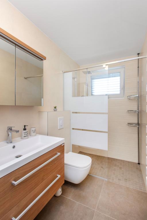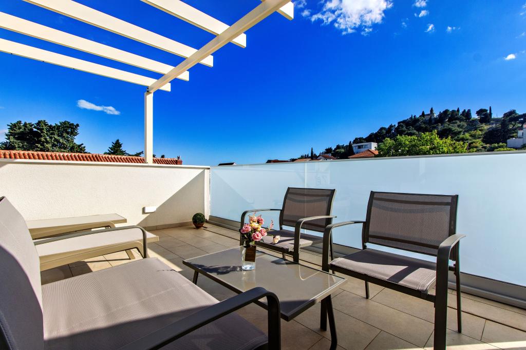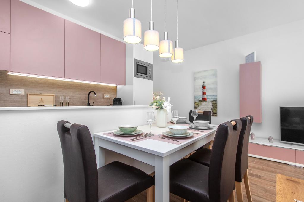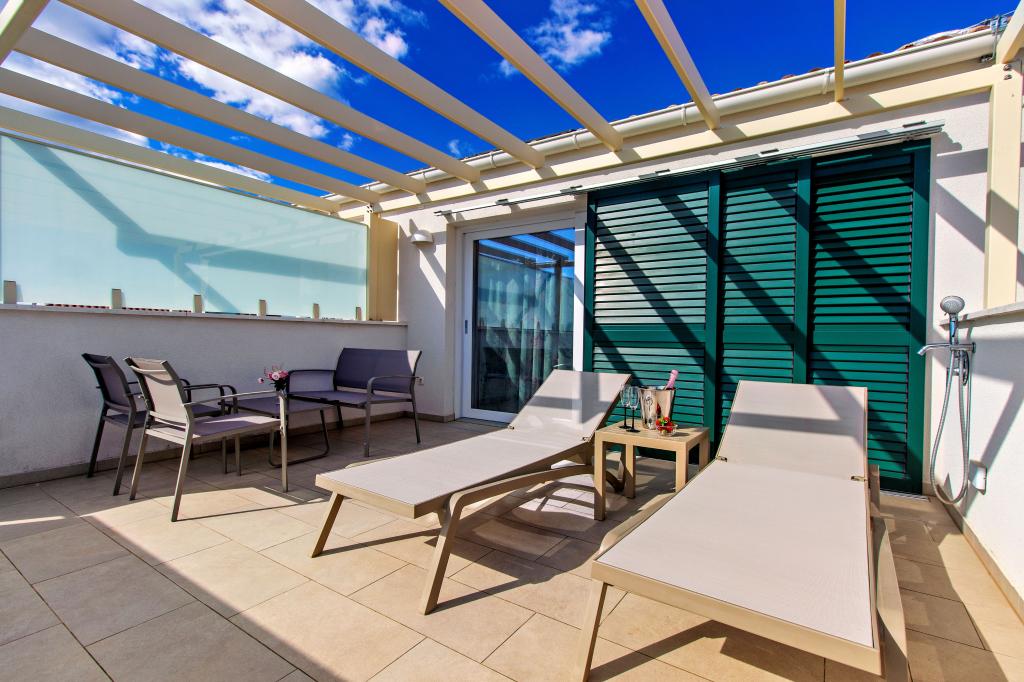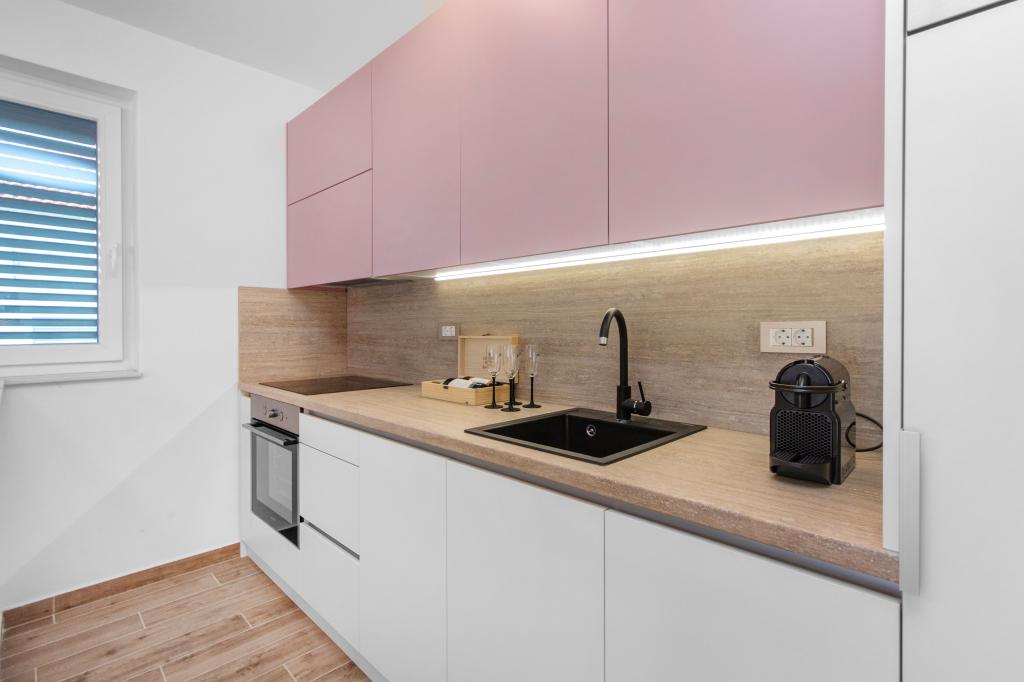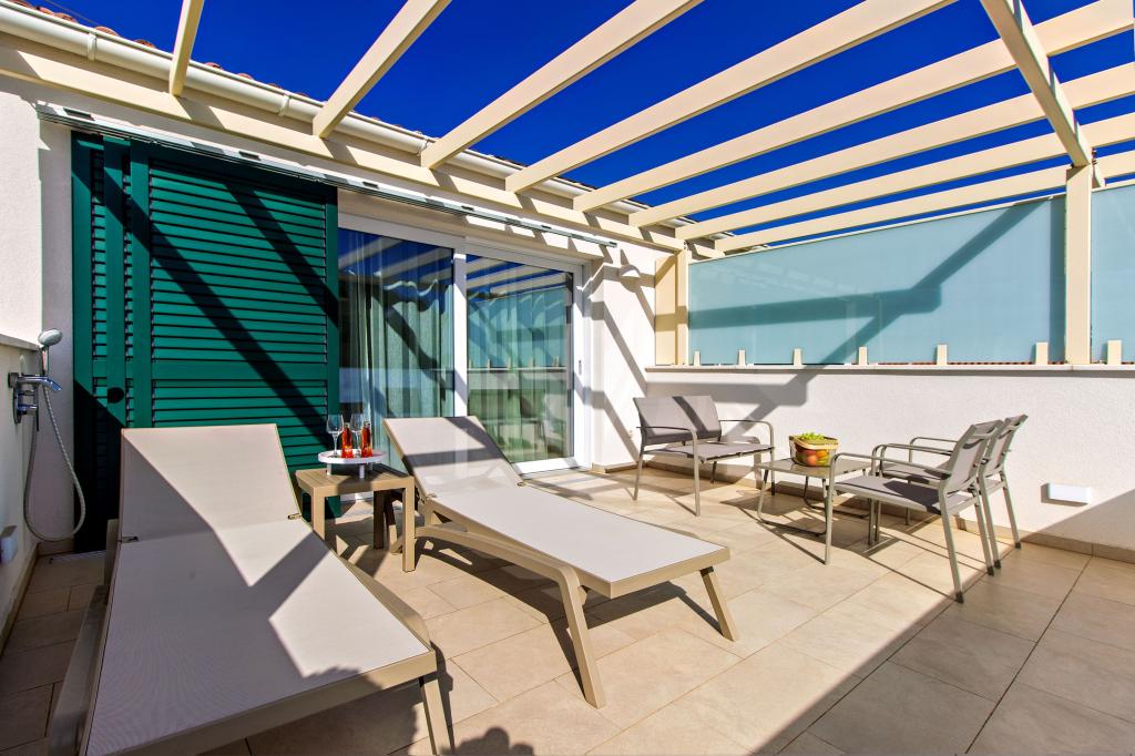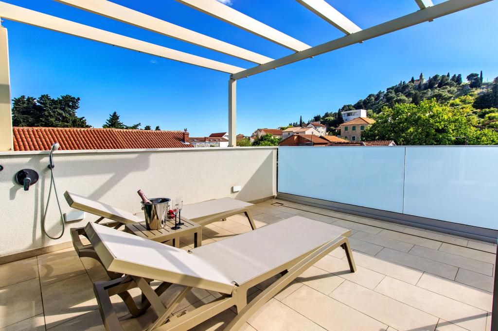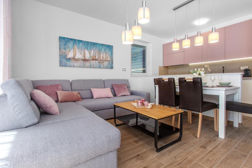 Facilitatea Three Olives este o clădire nouă și își deschide porțile oaspeților pentru prima dată din vara anului 2024. În curtea clădirii se află trei măslini bătrâni, lemn atât de tipic pentru coasta și insulele croate, din ale căror fructe se obține ulei de cea mai bună calitate, numit adesea „aur lichid”. Numele Trei Măsline sugerează un mediu de pace, liniște și abundență. Apartamentele din unitate sunt unice, moderne și complet echipate funcțional pentru a vă face să vă simțiți confortabil, la fel ca în propria casă! Facilitatea este pozitionata excelent; se afla la 150m de mare si la 200m de centrul orasului. Nu există drumuri majore sau facilități de afaceri în imediata apropiere, astfel încât oaspeții sunt asigurați de liniște în timpul zilei și al nopții. Pe scurt, totul este pregătit pentru vacanța ta completă.