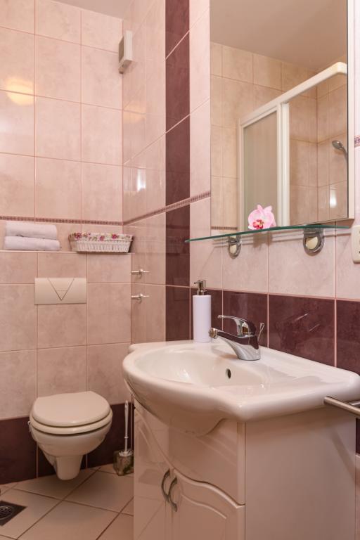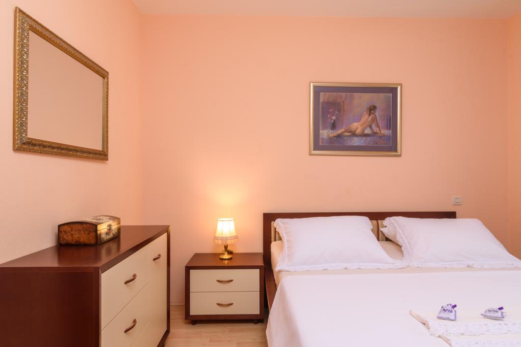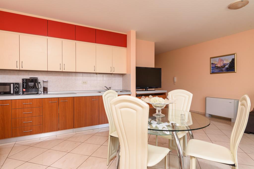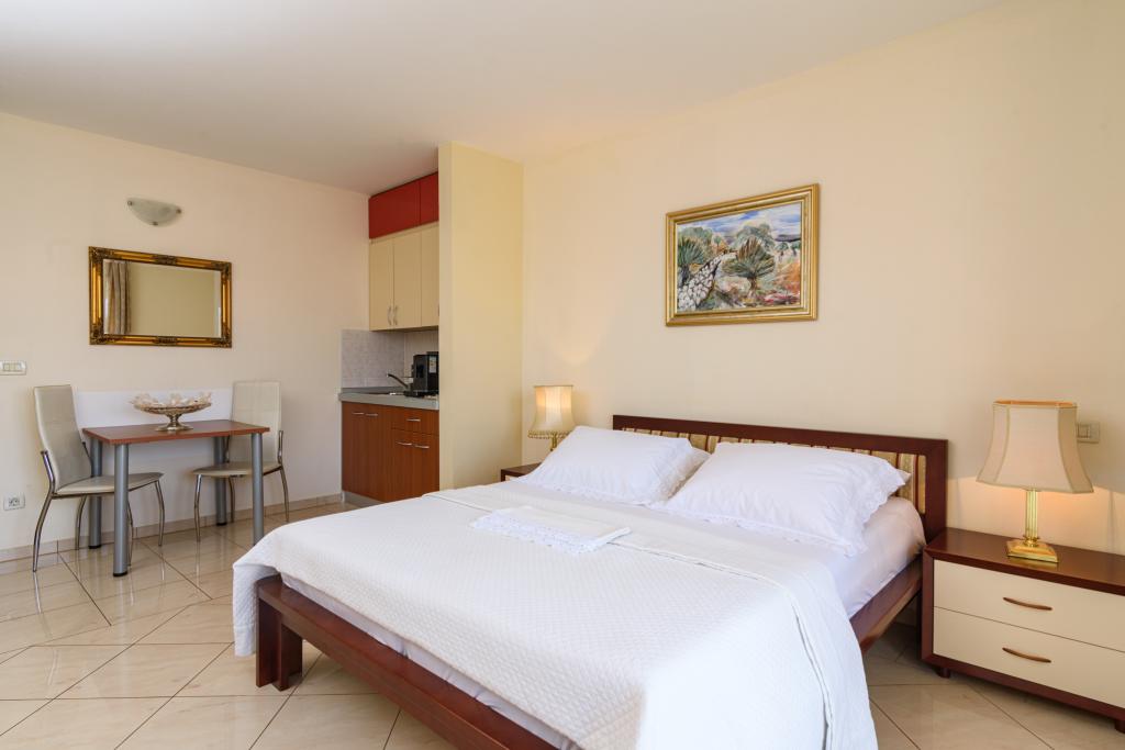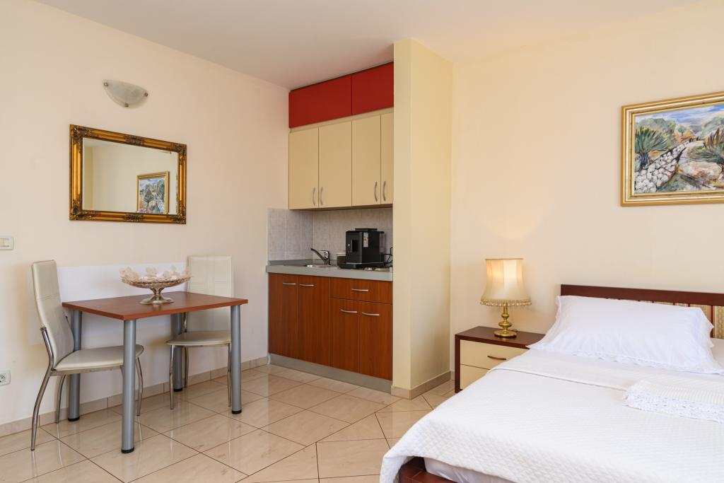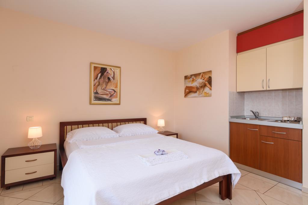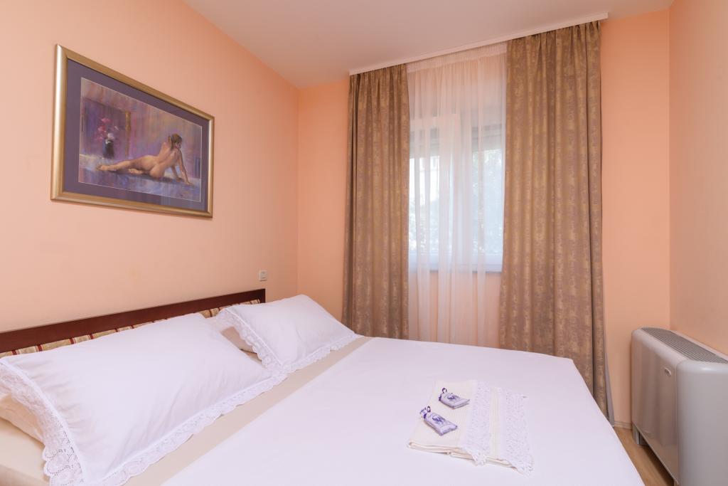 Taxa de rezidenta este inclusa in pret.Apartament A2 tip 2 (51m2) - cameră de zi mare cu bucatarie si un pat pentru două, un dormitor dublu, baie și balcon (12m2). Apartament / studio tip Apartament A2 1 (30m2) - cameră de zi cu bucătărie, pat dublu, canapea razvalčenje pat, baie și balcon (6,5m2). Tip locuinta apartament / studio A2 (26m2) - living cu bucatarie, pat dublu, baie și balcon (6,5m2) de viață. Toți oaspeții noștri pot folosi un grătar cu un cuptor de lemn situată în grădină și bucurați-vă de masa de prânz și cina la ore mai târziu, în intimitate totala. Pentru toți oaspeții este o fata prakig privat al casei.