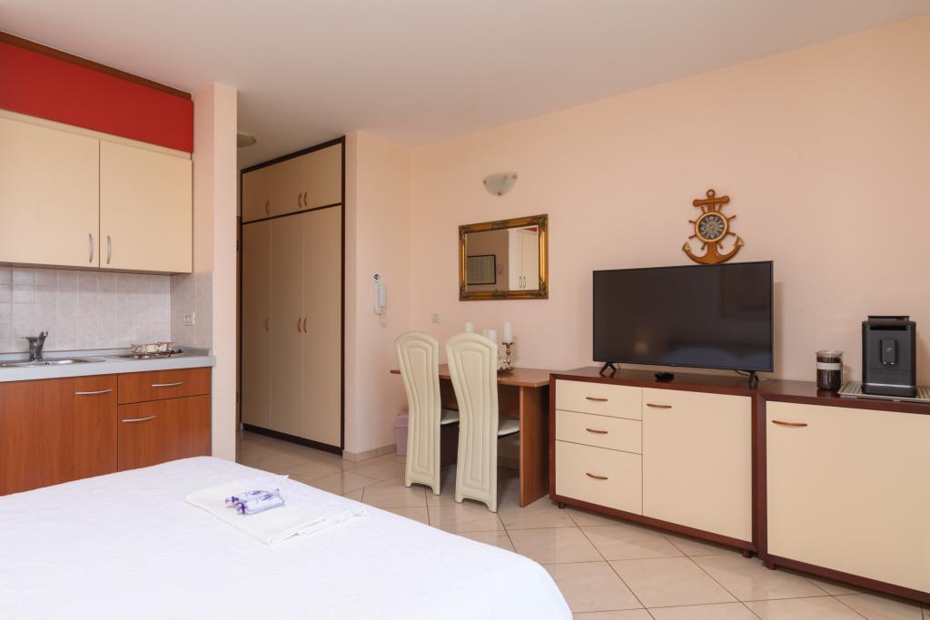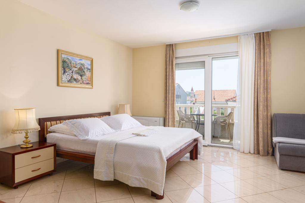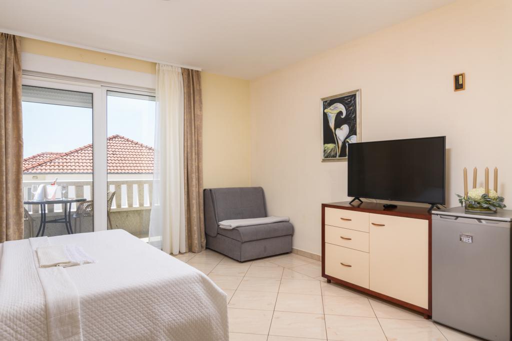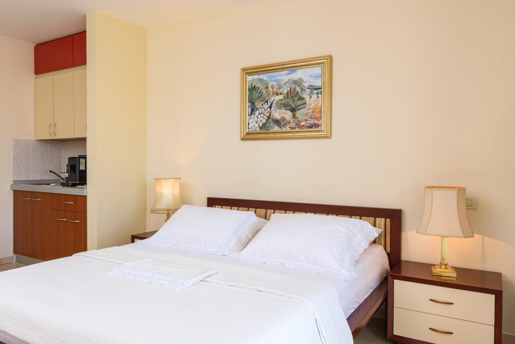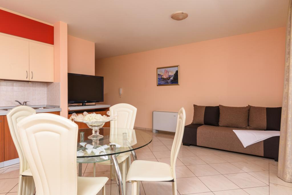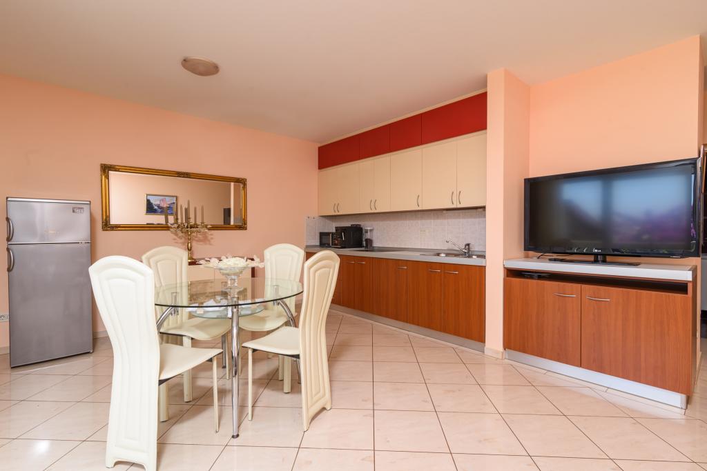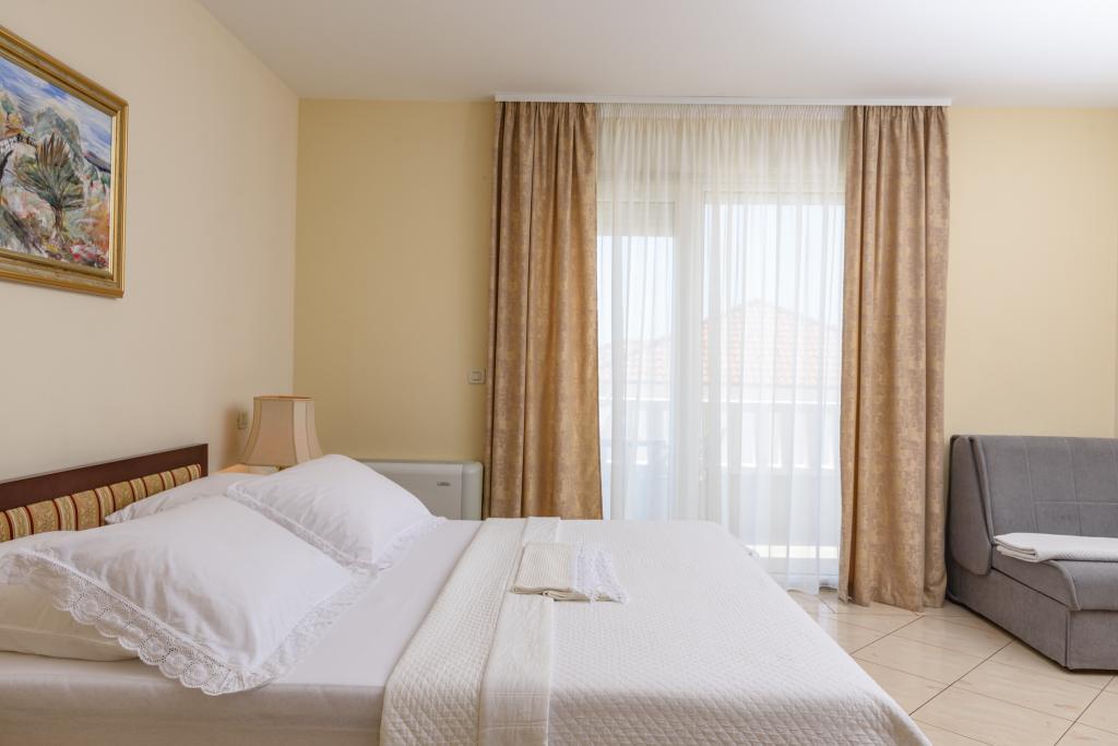 Taxa de rezidenta este inclusa in pret.Apartament A2 tip 2 (51m2) - cameră de zi mare cu bucatarie si un pat pentru două, un dormitor dublu, baie și balcon (12m2). Apartament / studio tip Apartament A2 1 (30m2) - cameră de zi cu bucătărie, pat dublu, canapea razvalčenje pat, baie și balcon (6,5m2). Tip locuinta apartament / studio A2 (26m2) - living cu bucatarie, pat dublu, baie și balcon (6,5m2) de viață. Toți oaspeții noștri pot folosi un grătar cu un cuptor de lemn situată în grădină și bucurați-vă de masa de prânz și cina la ore mai târziu, în intimitate totala. Pentru toți oaspeții este o fata prakig privat al casei.